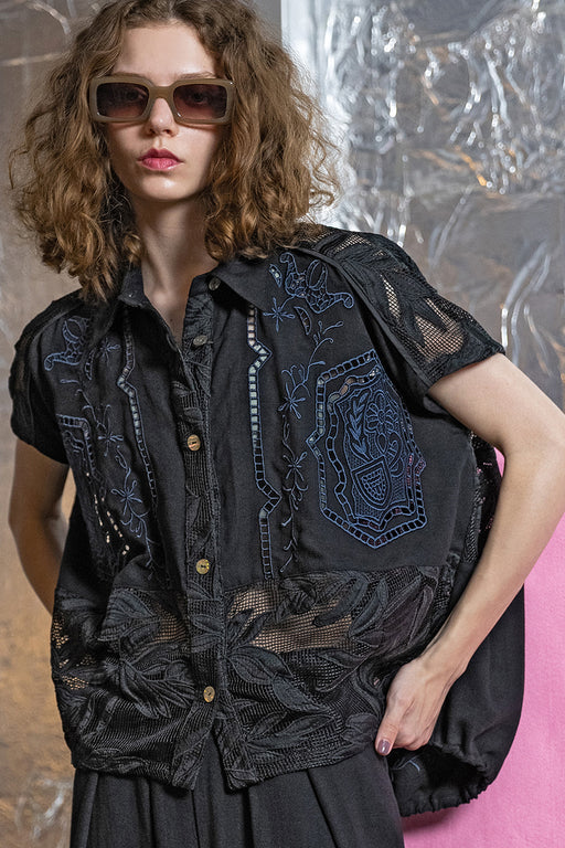 TULLE LAYERED COLOR BLOCK CARDIGAN