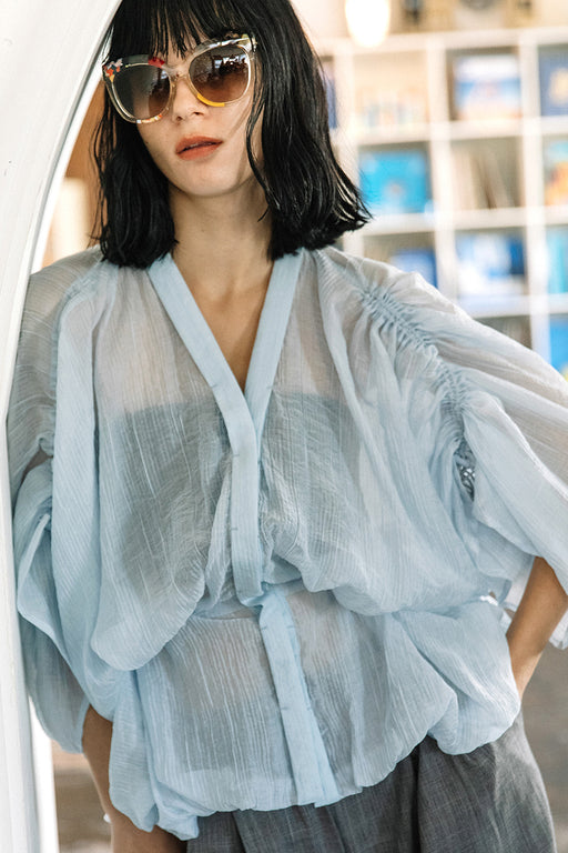 SHEER DRAWSTRING BLOUSE