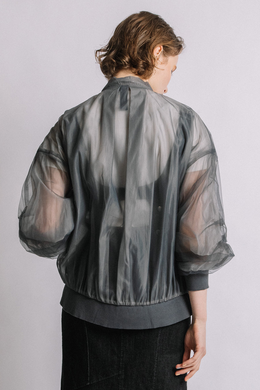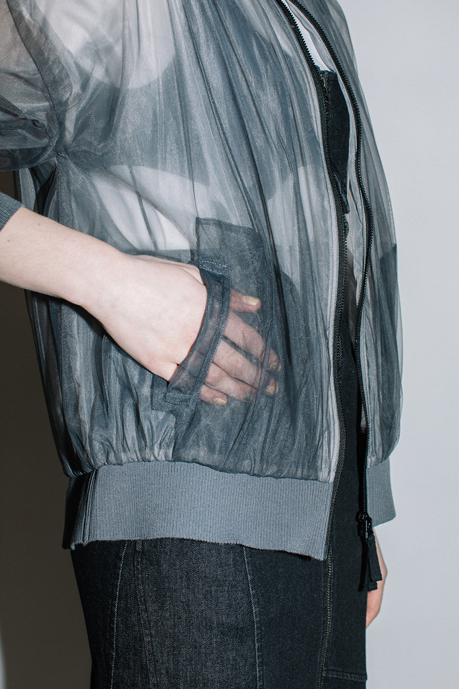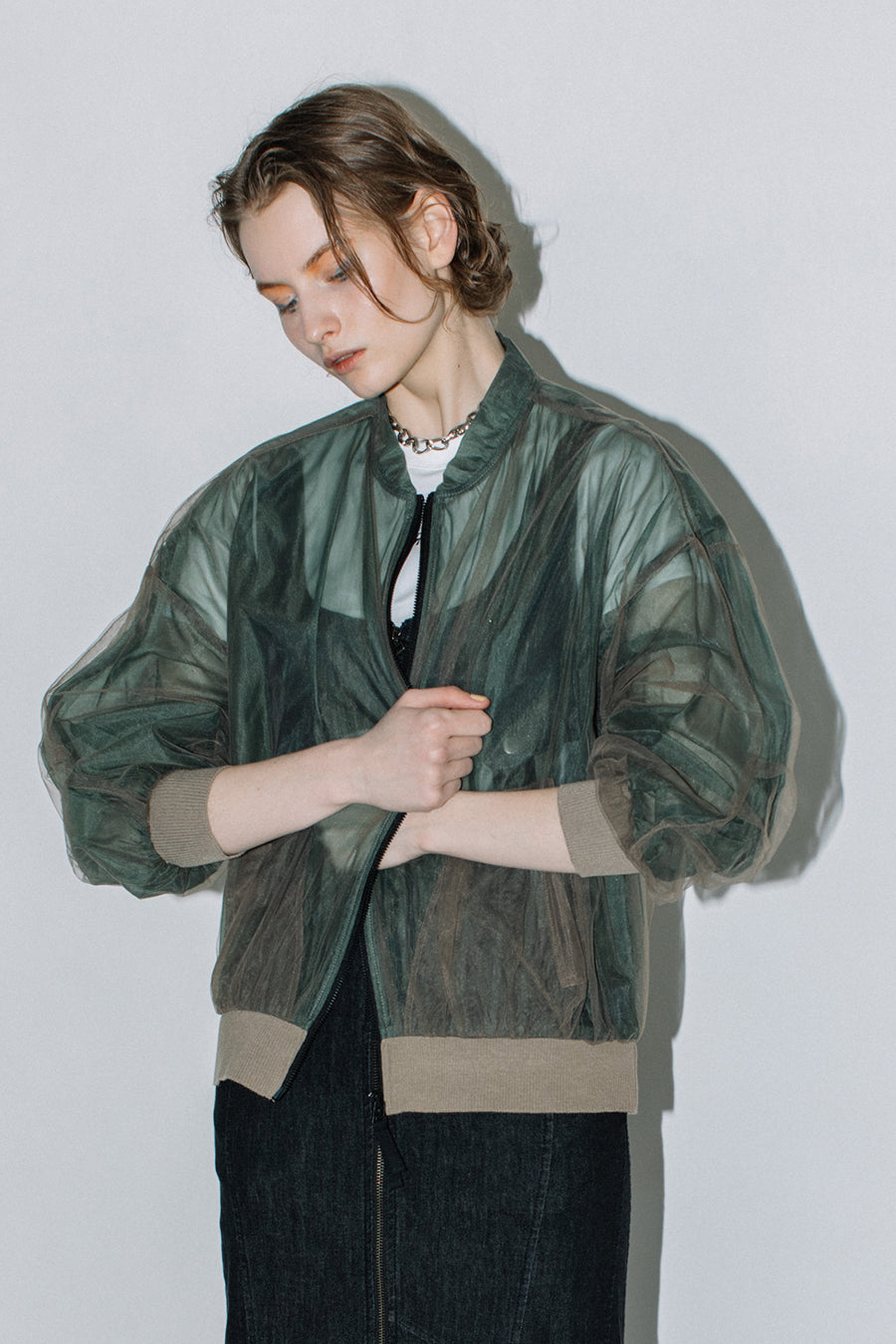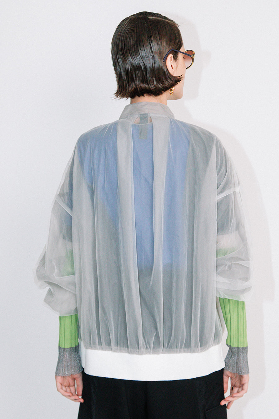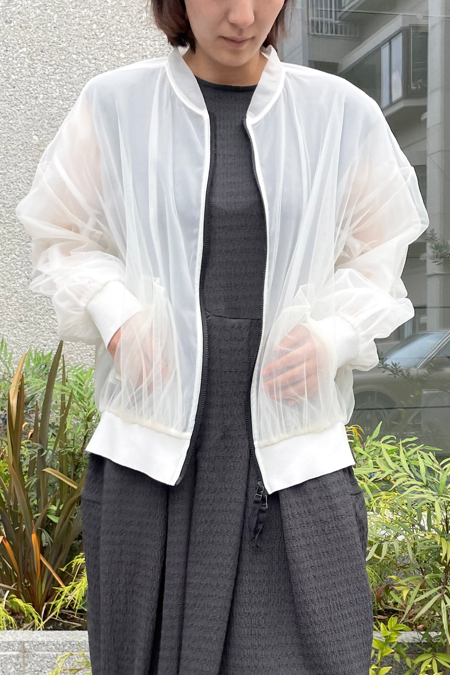 シアーチュールとソフトオーガンジーをレイヤードしたブルゾン。