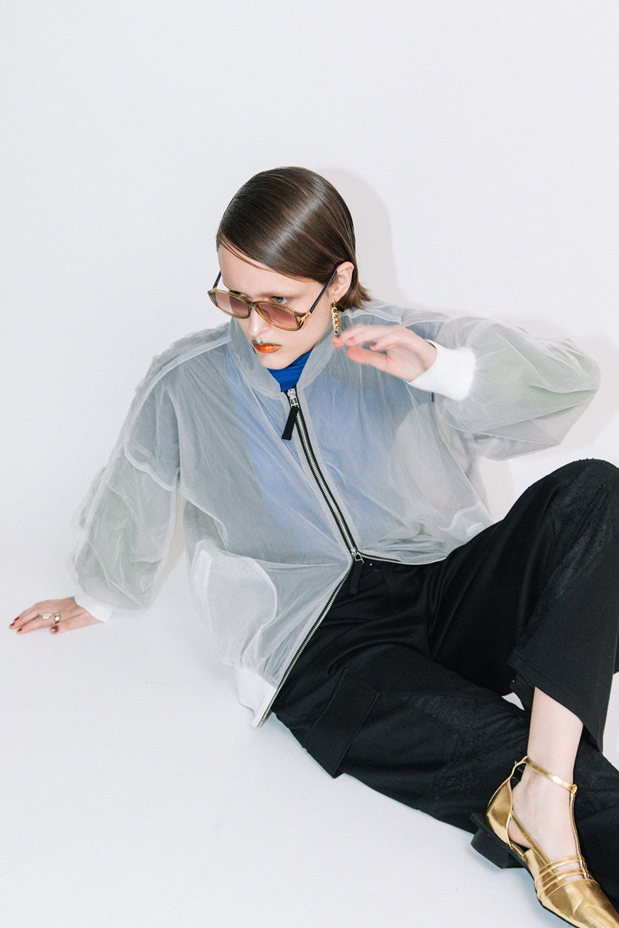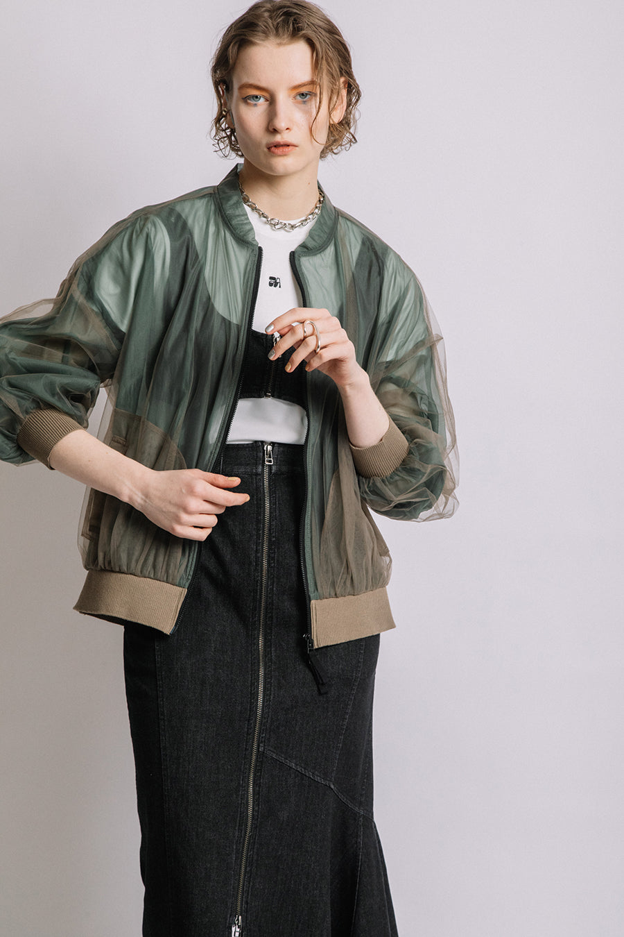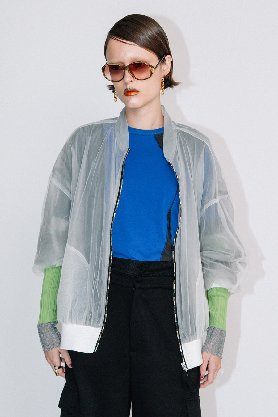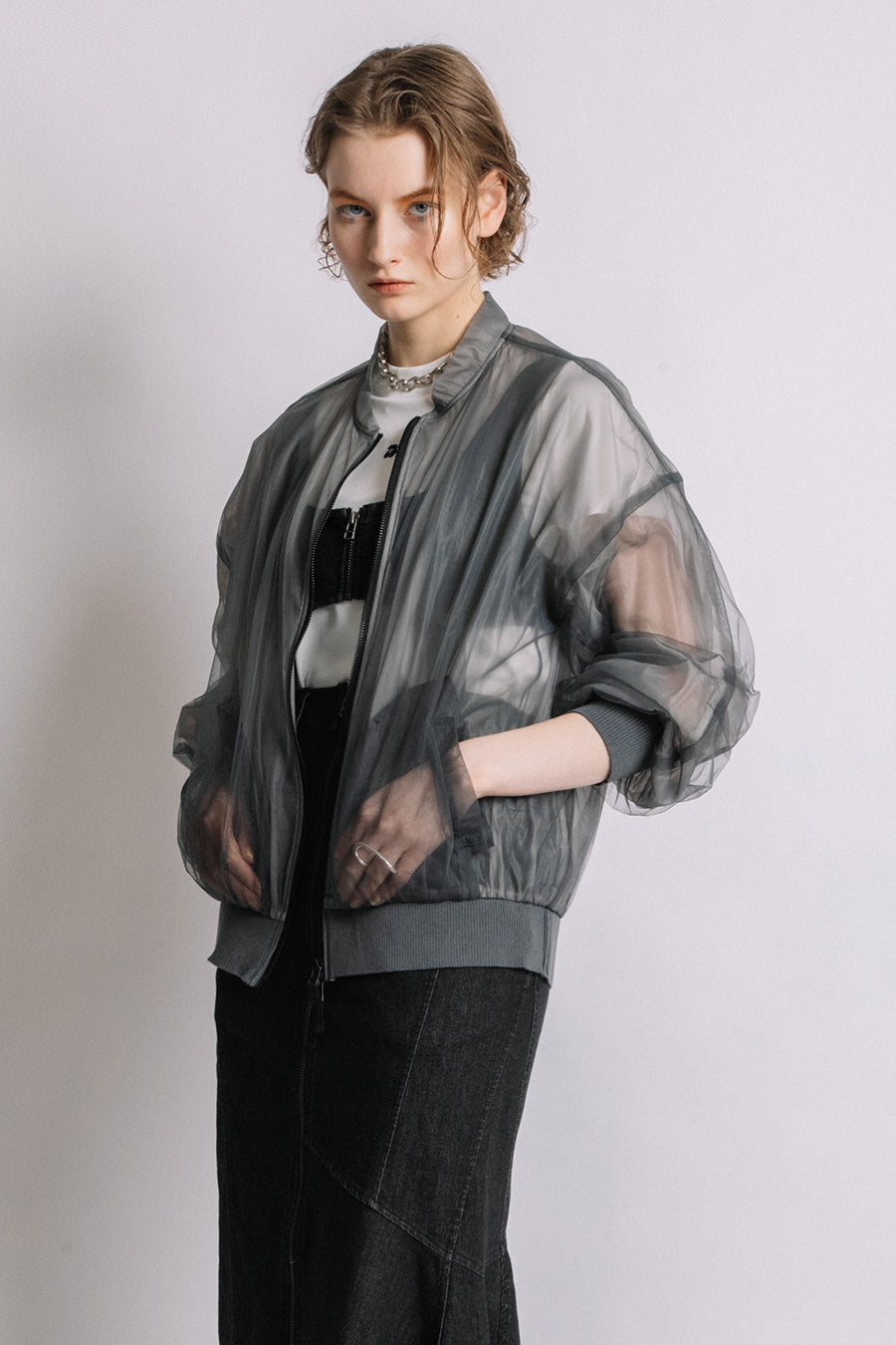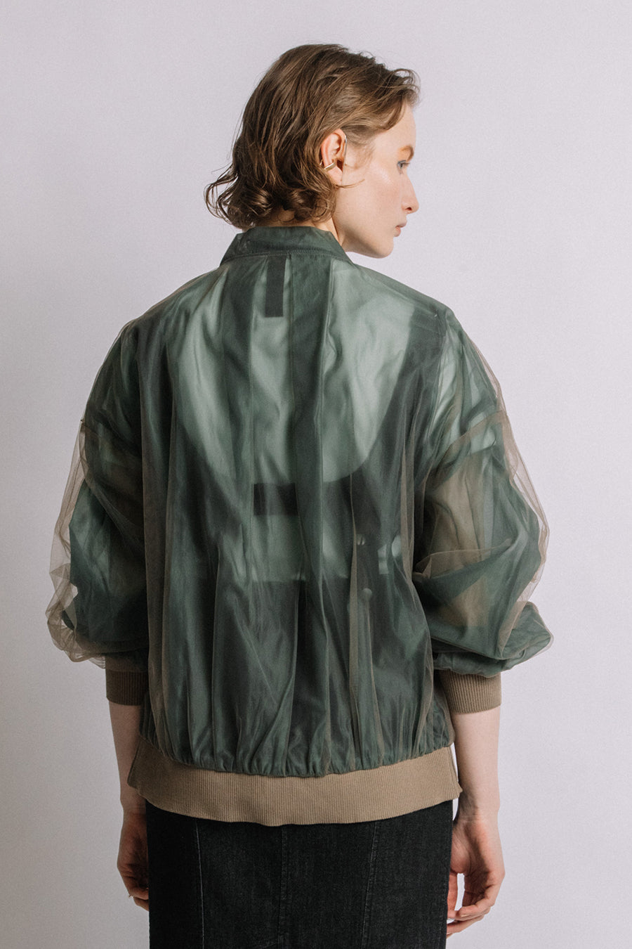シアーチュールとソフトオーガンジーをレイヤードしたブルゾン。