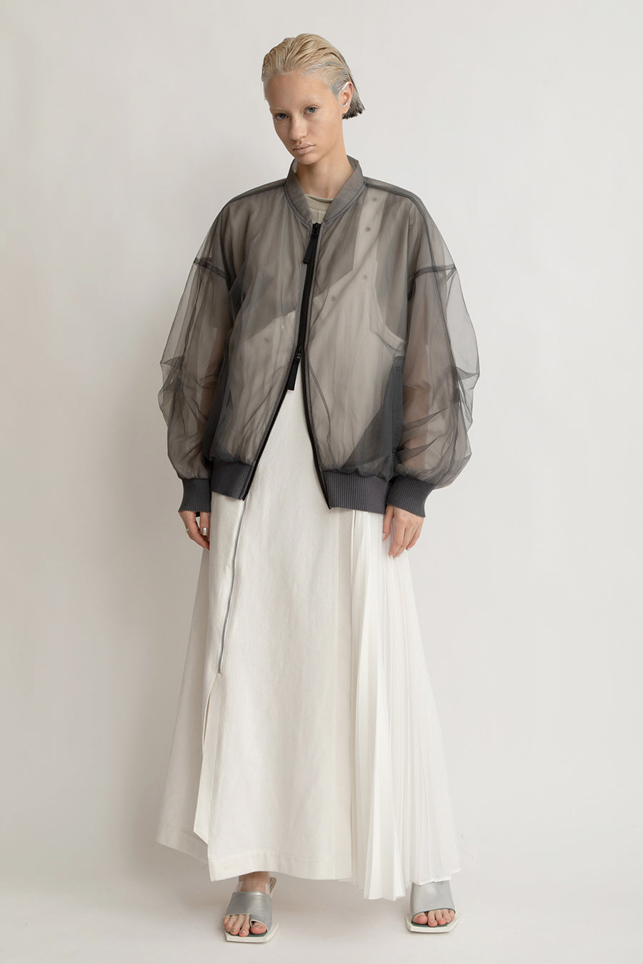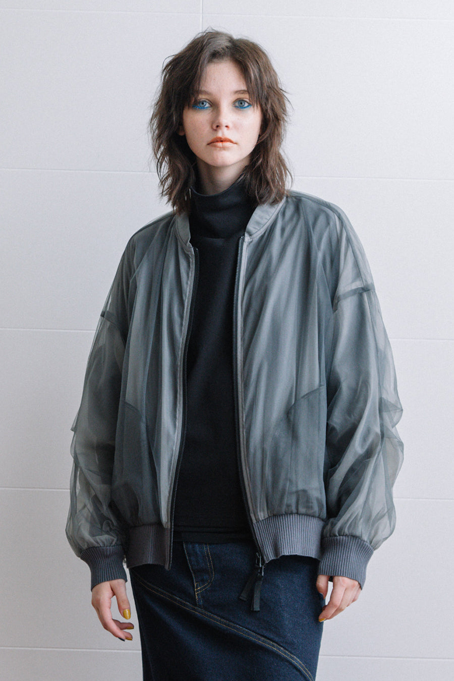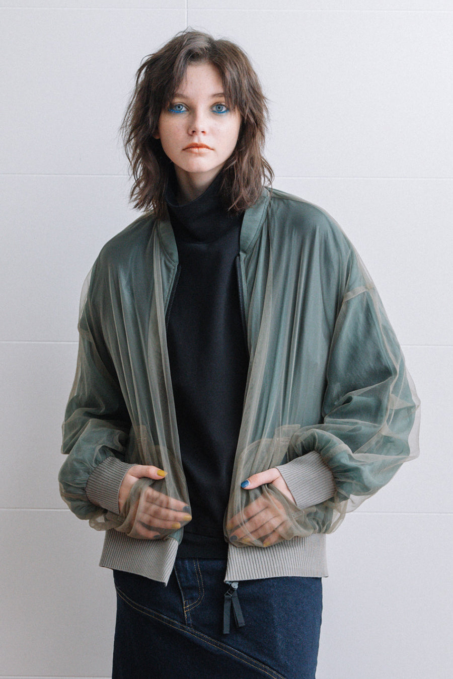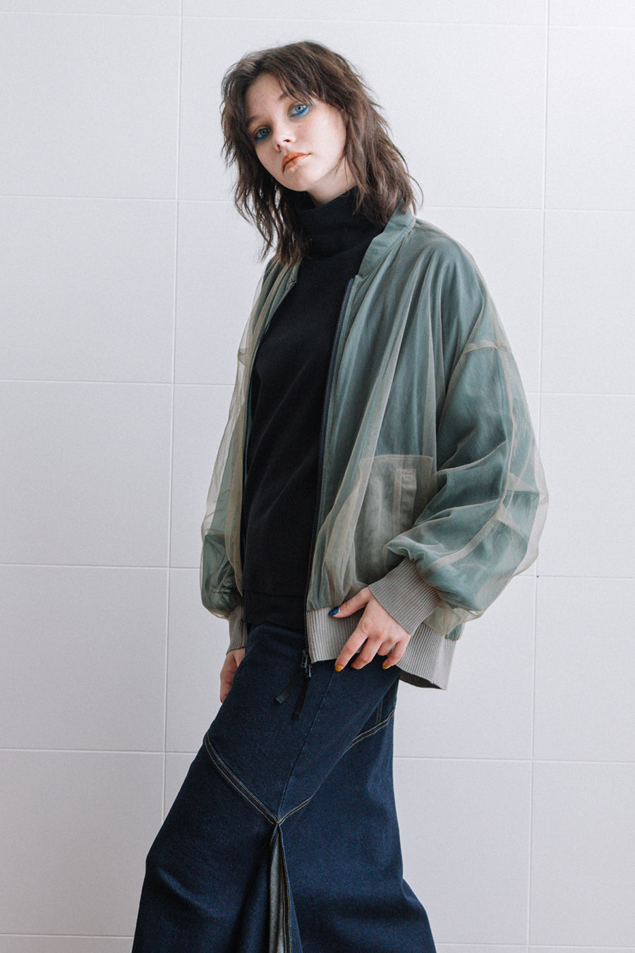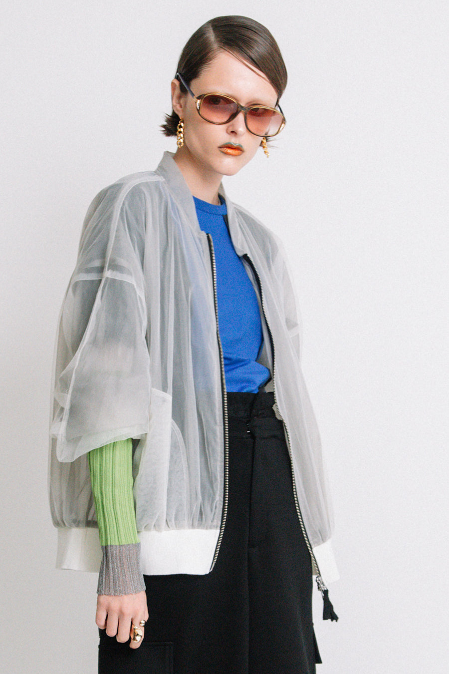 シアーチュールとソフトオーガンジーをレイヤードしたブルゾン。