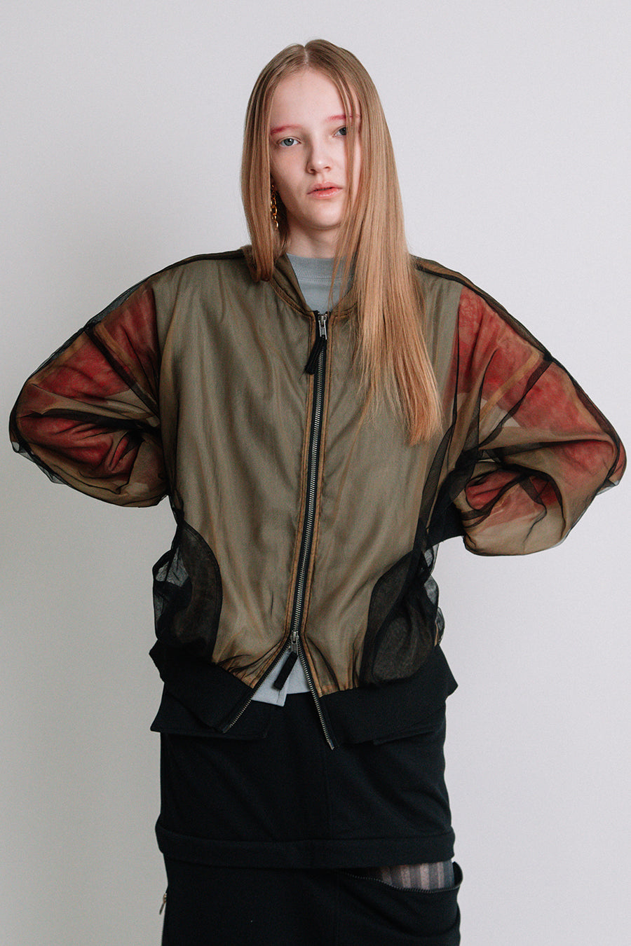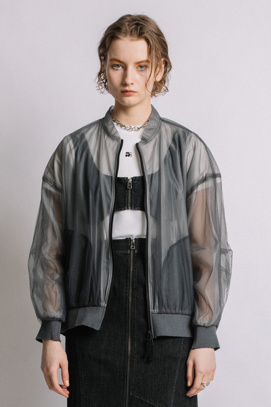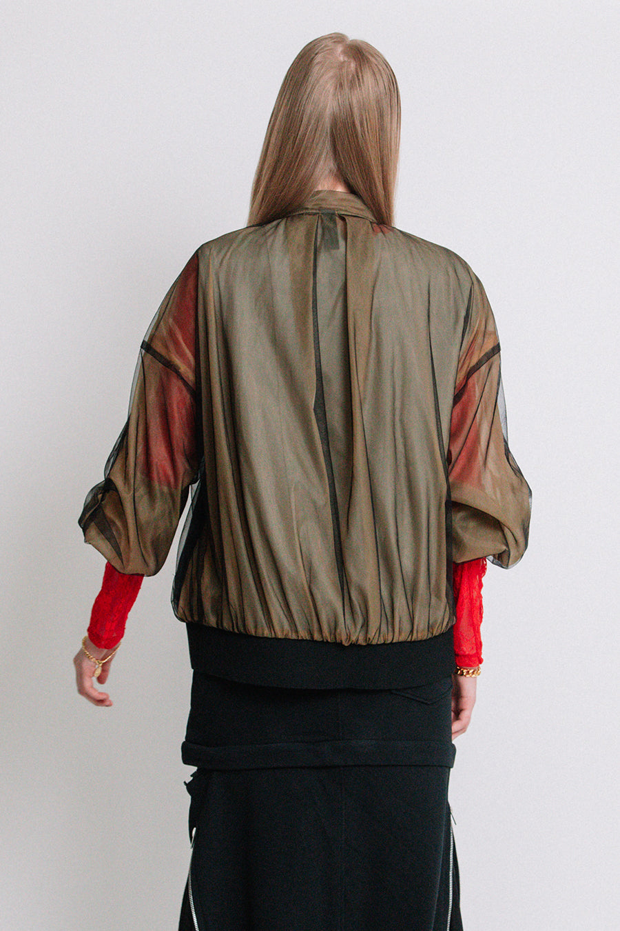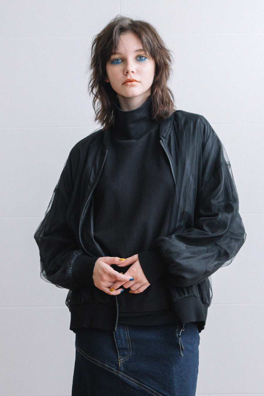 シアーチュールとソフトオーガンジーをレイヤードしたブルゾン。
