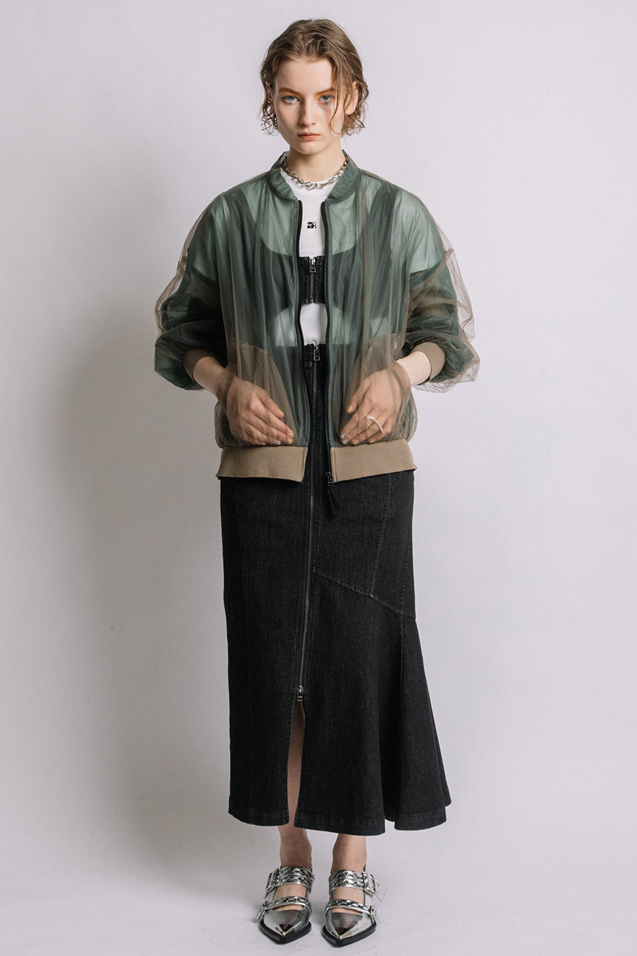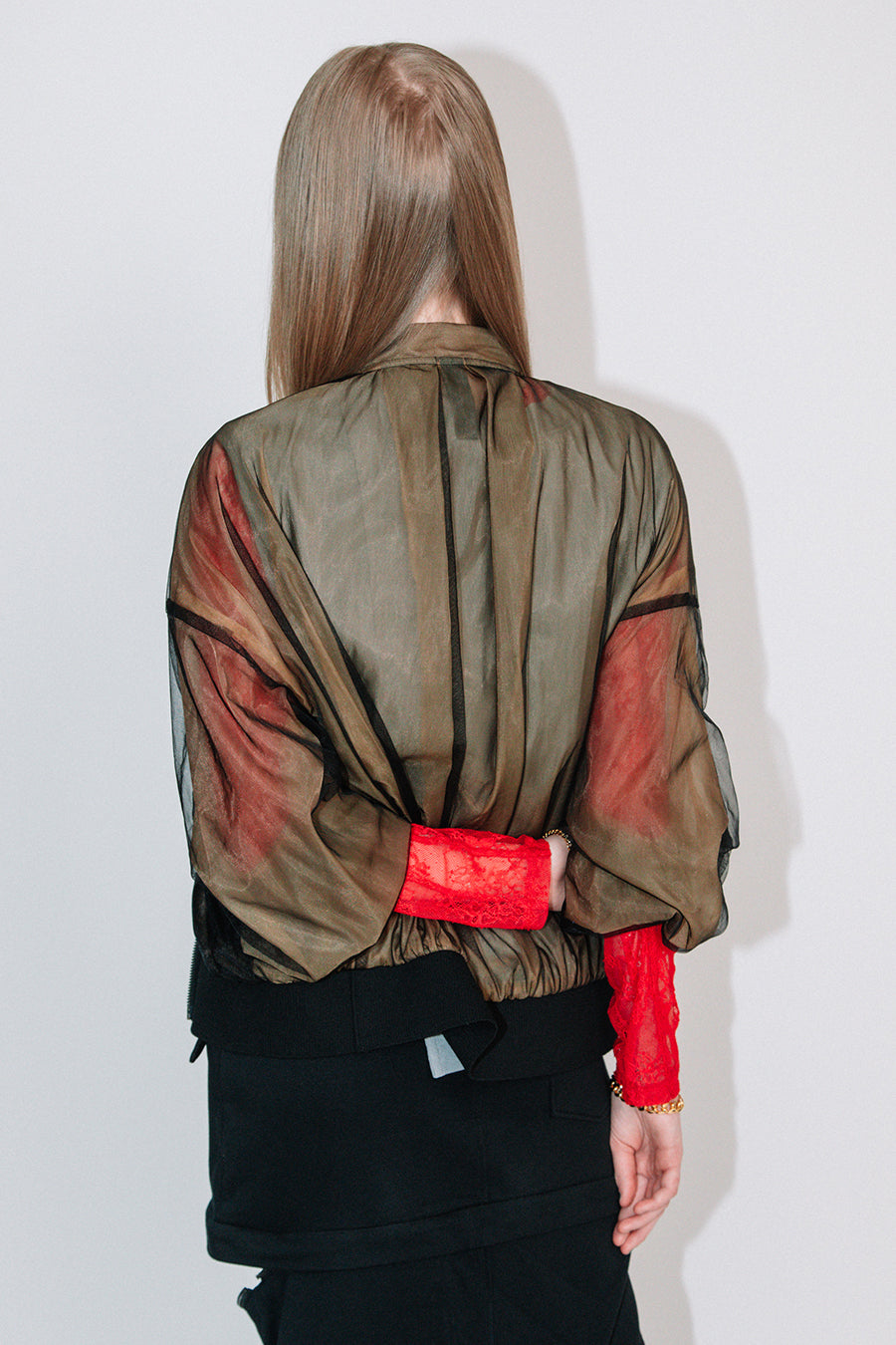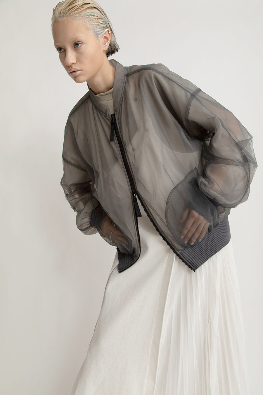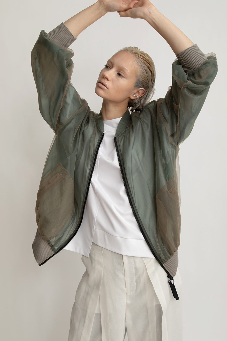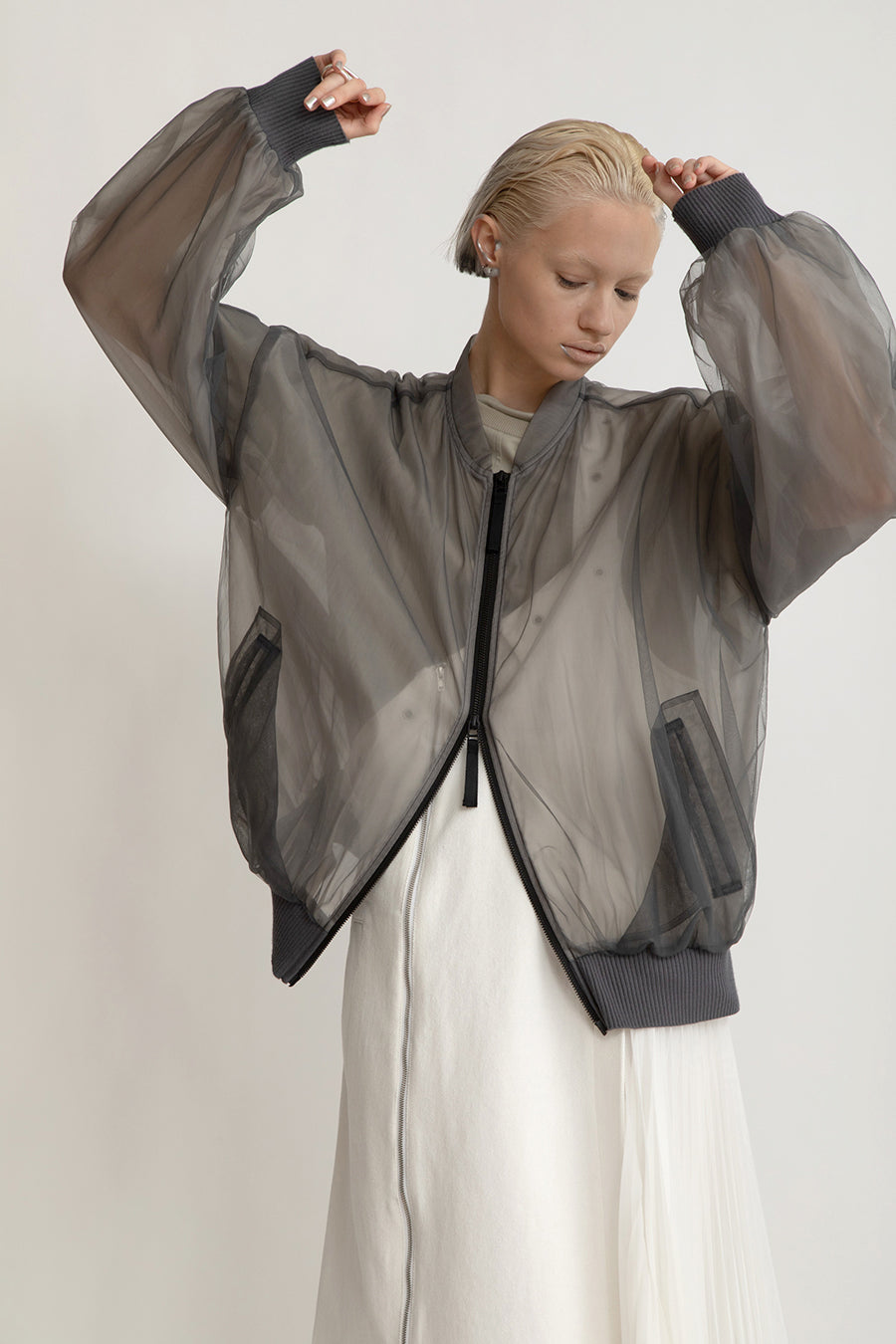 シアーチュールとソフトオーガンジーをレイヤードしたブルゾン。