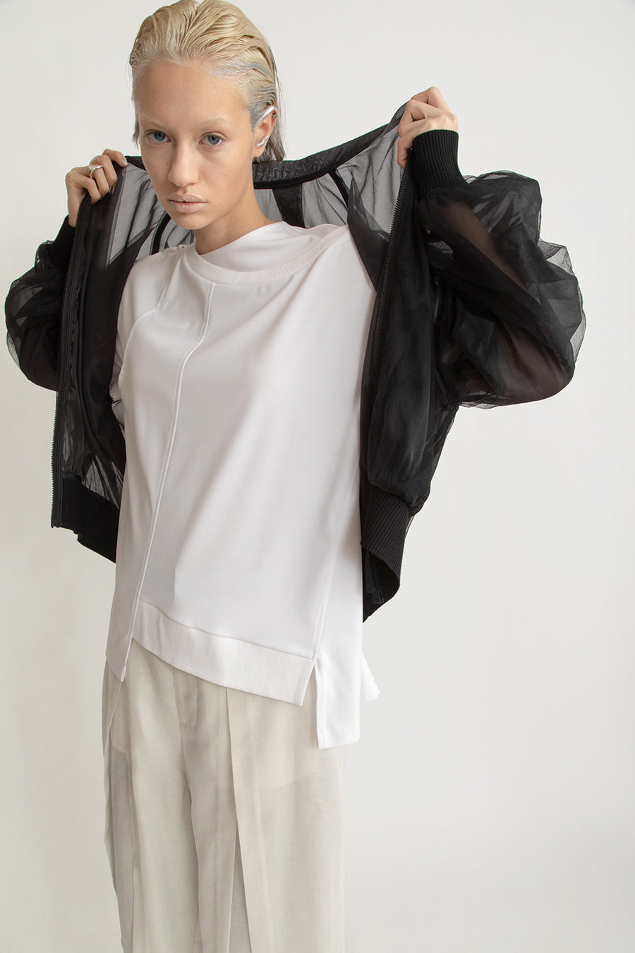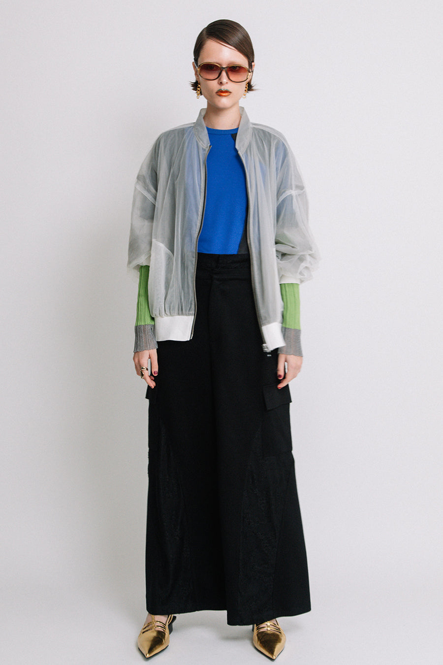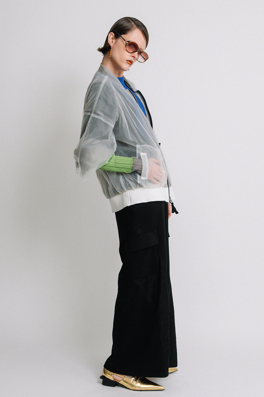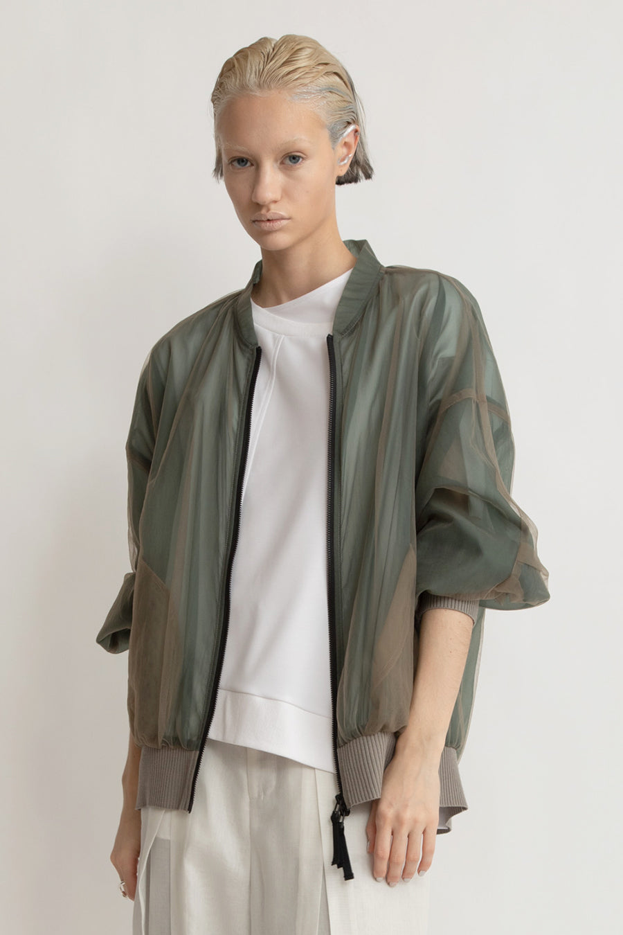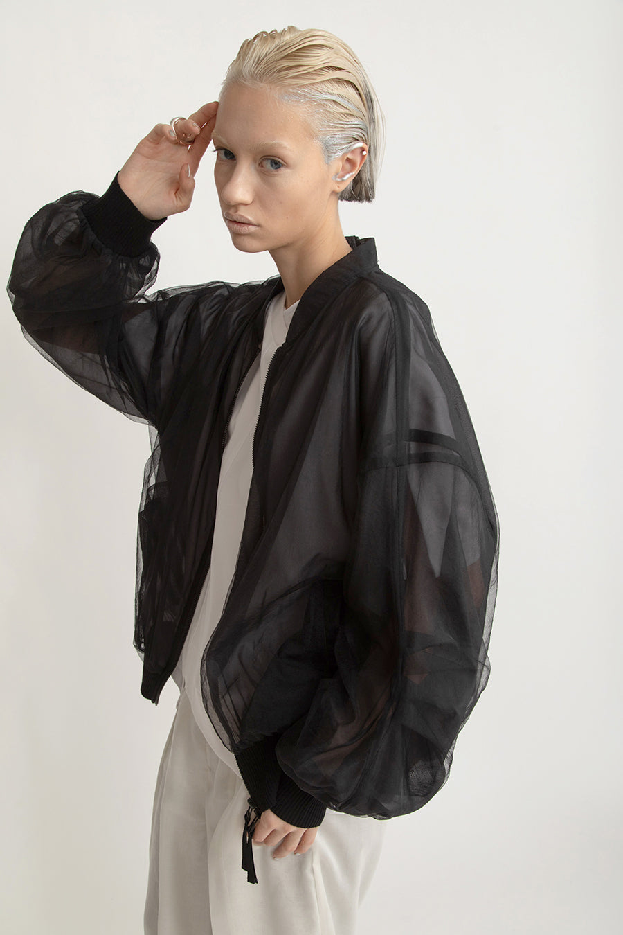 シアーチュールとソフトオーガンジーをレイヤードしたブルゾン。
