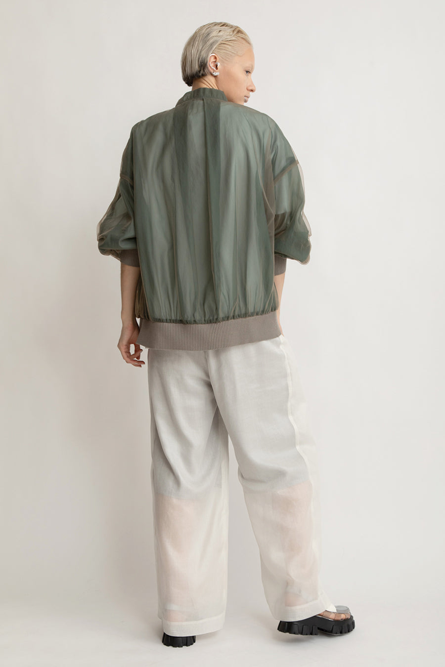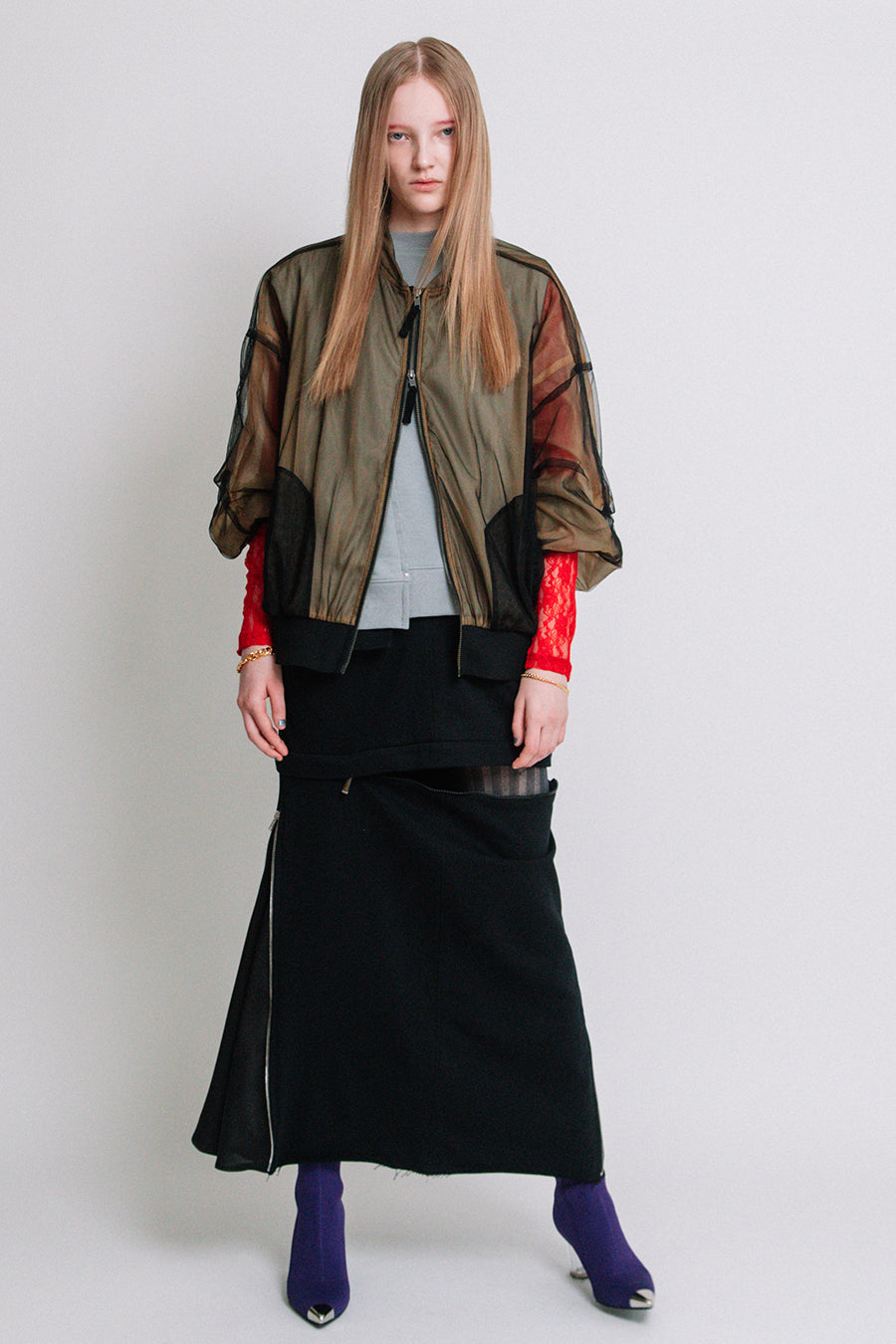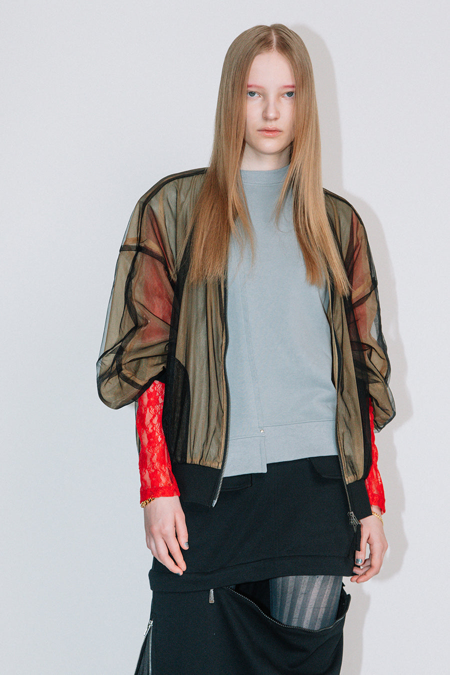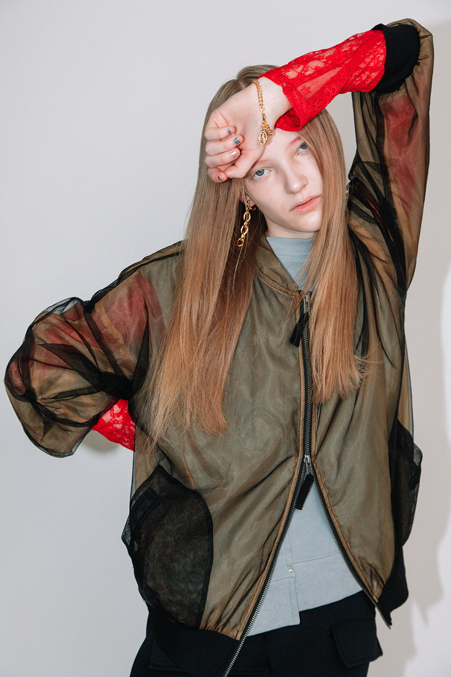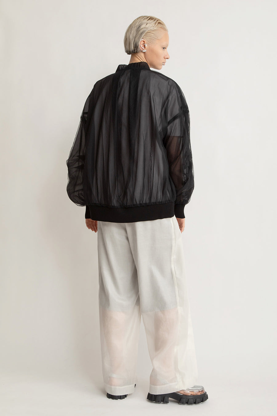 シアーチュールとソフトオーガンジーをレイヤードしたブルゾン。