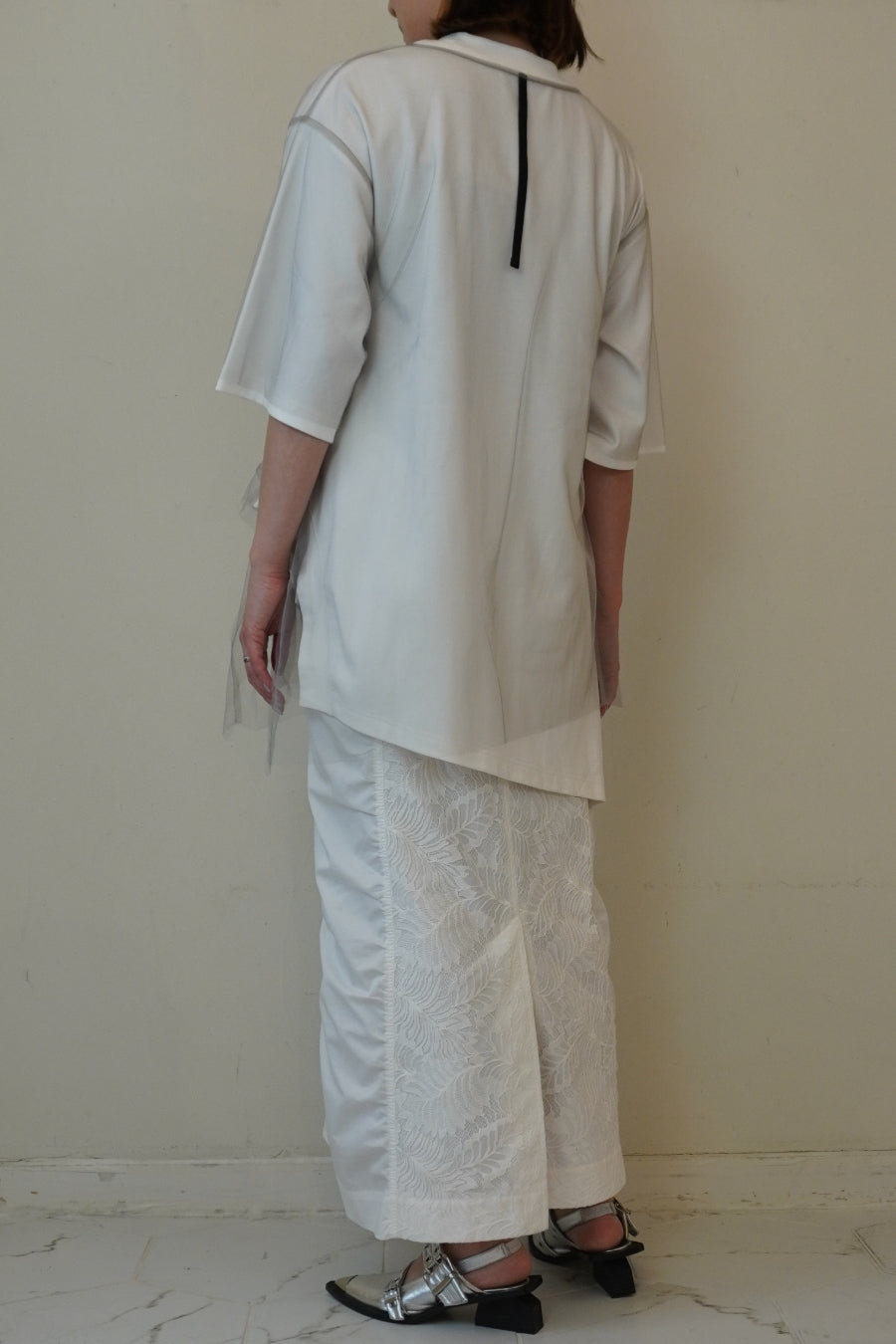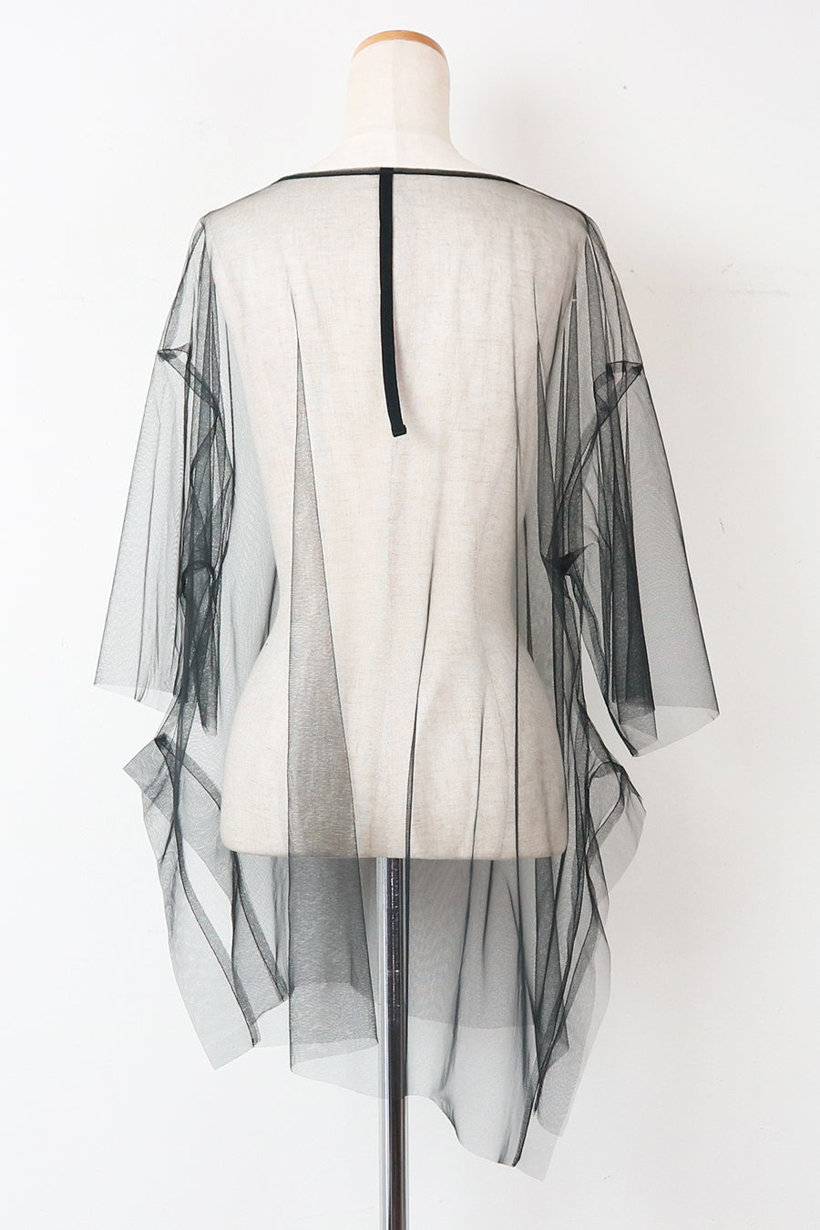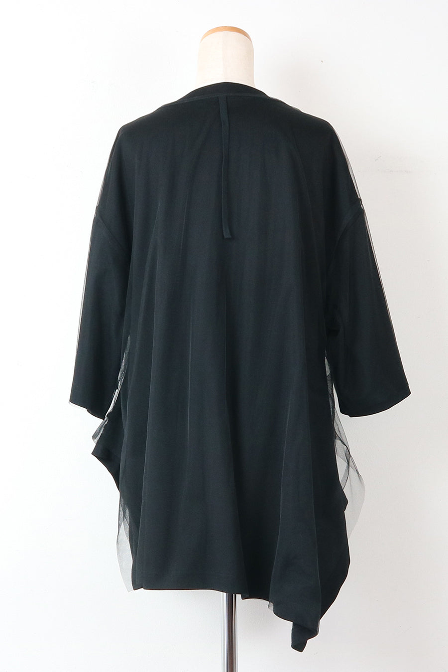 表チュールTシャツは、後ろ身頃に施された紐がポイントで、他インナーと合わせてシアー感を楽むのも◎それぞれ単品着用可能な2WAYアイテム。
