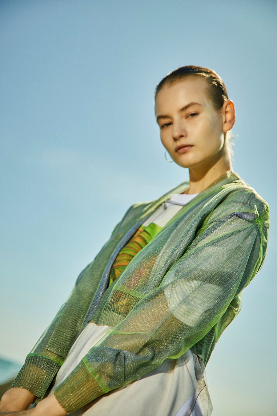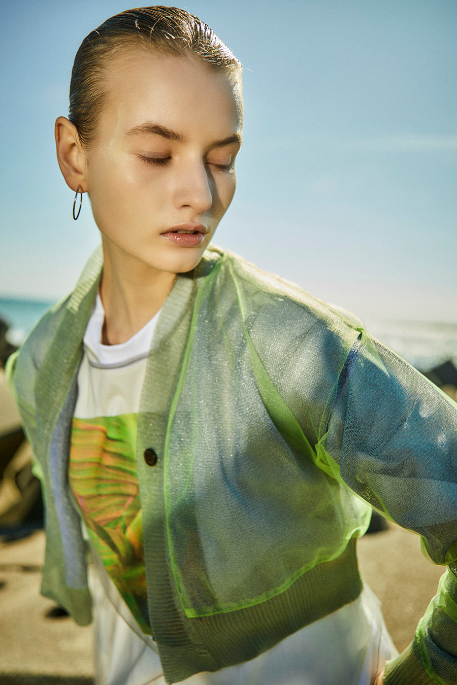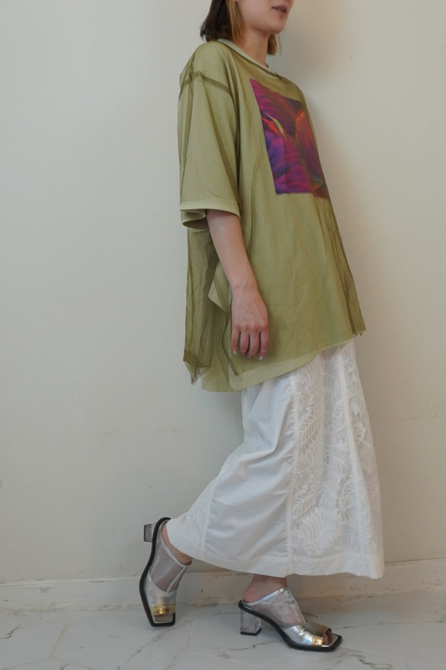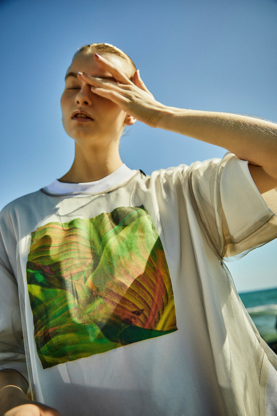 今シーズンはリーフフォトをグラフィック加工し、チュールをレイヤードしたデザインに。