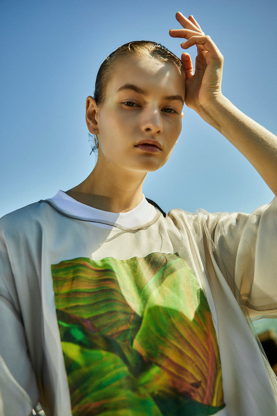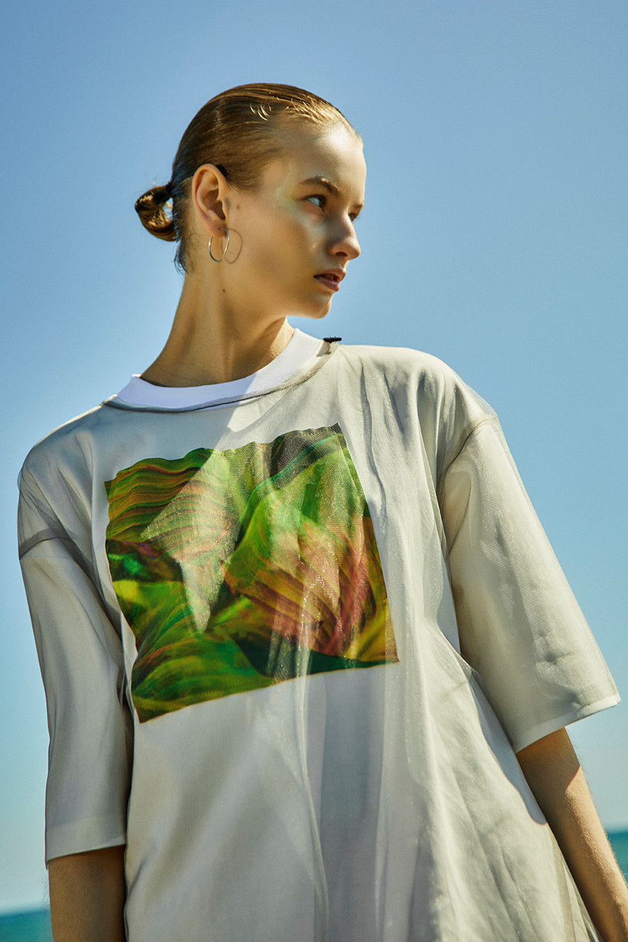 2WAY LEAF PHOTO PRINT LAYERED T-SHIRT