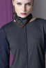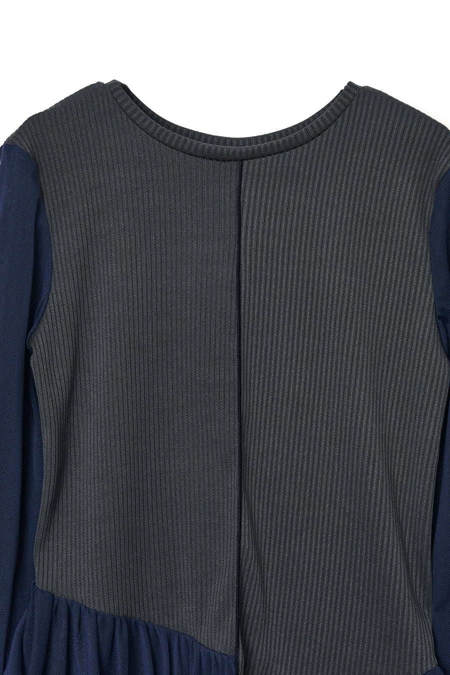 袖口からインナーを出して素材を覗かせる仕様に。袖口切り替えと、前後身頃中心には、