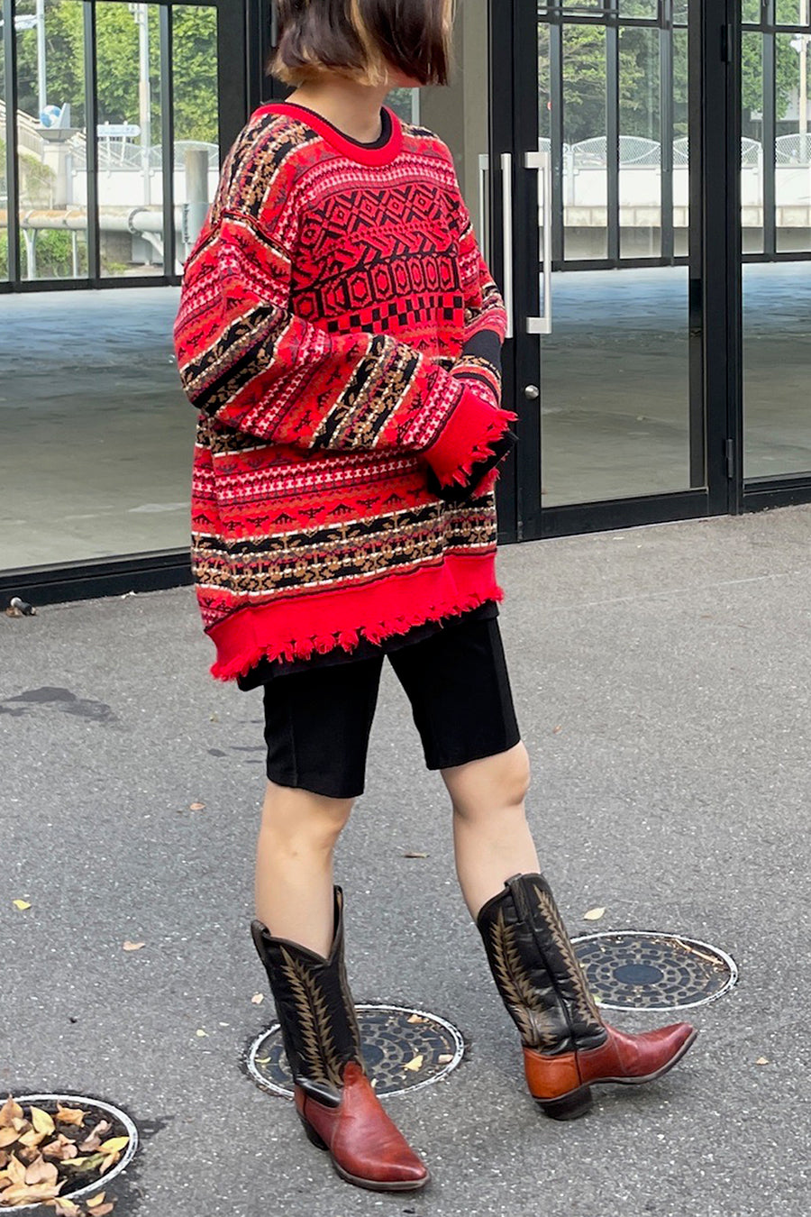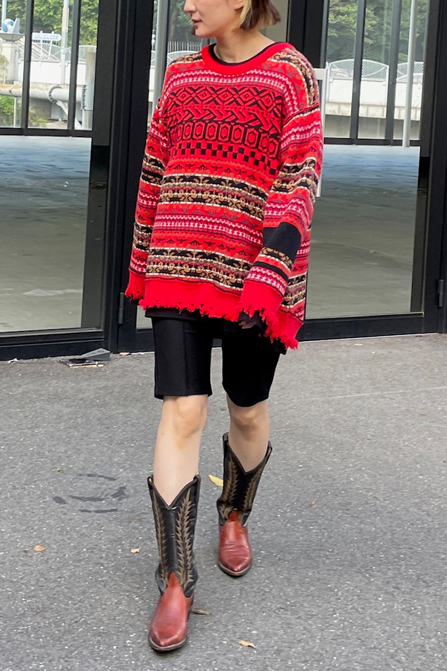 袖口と裾のリブ端のダメージ編みも細部の拘りディテール。