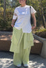 パンツのサイドにはパイピングと、バイアス使いの切り替えパーツでアクセントに。