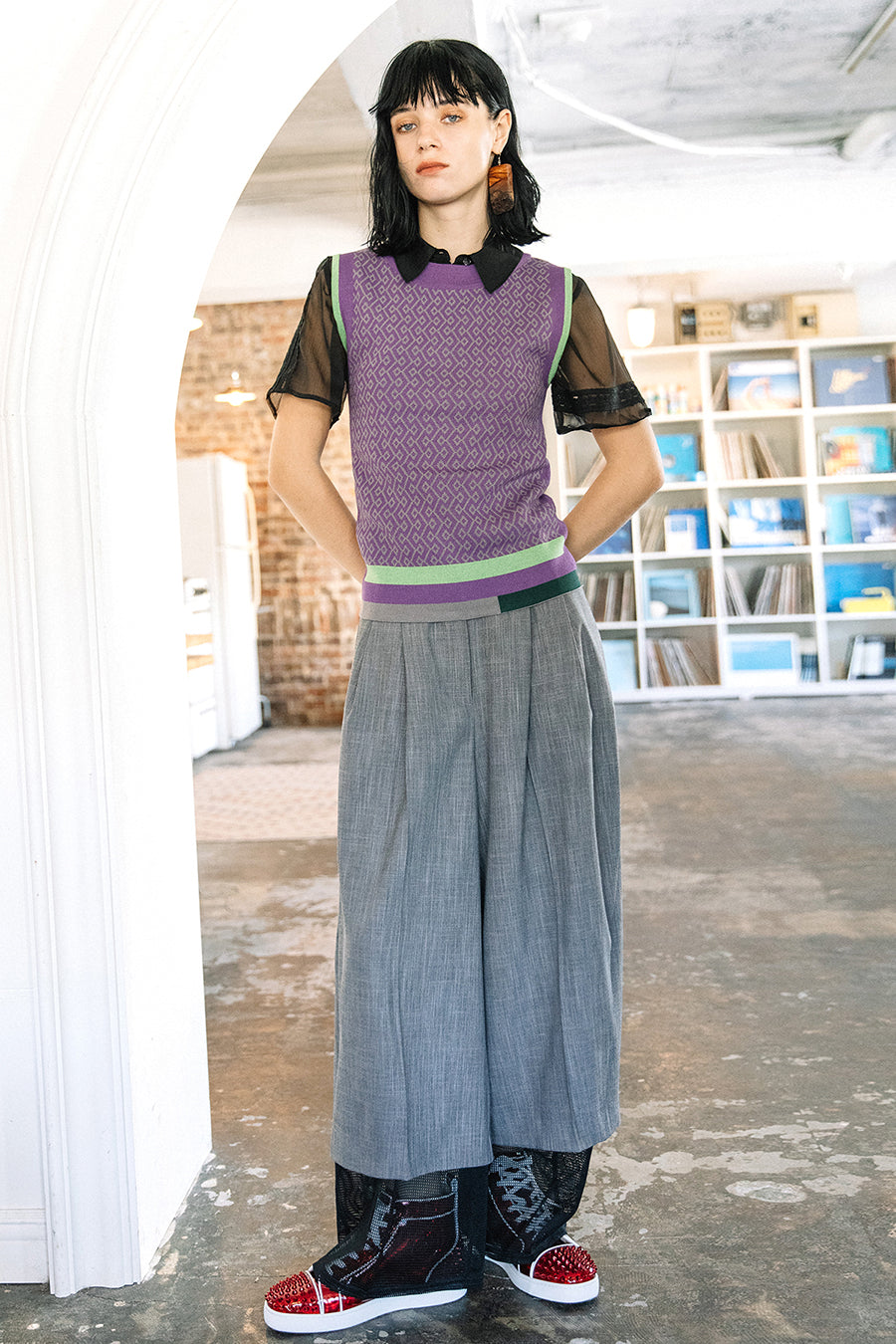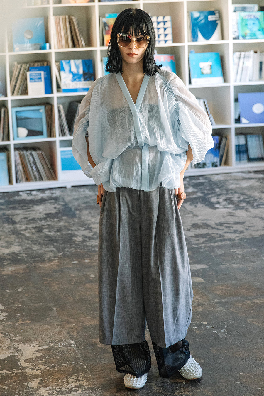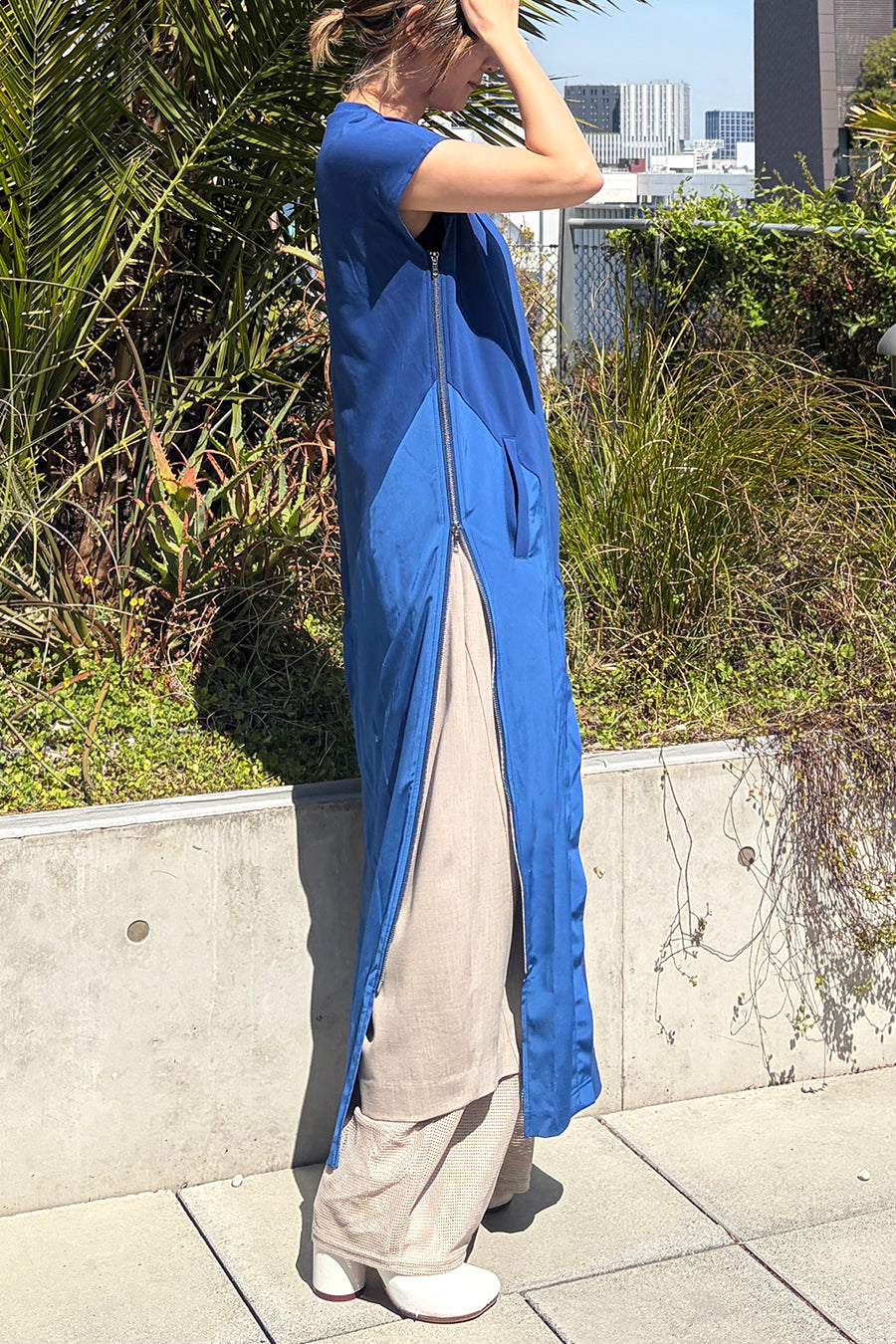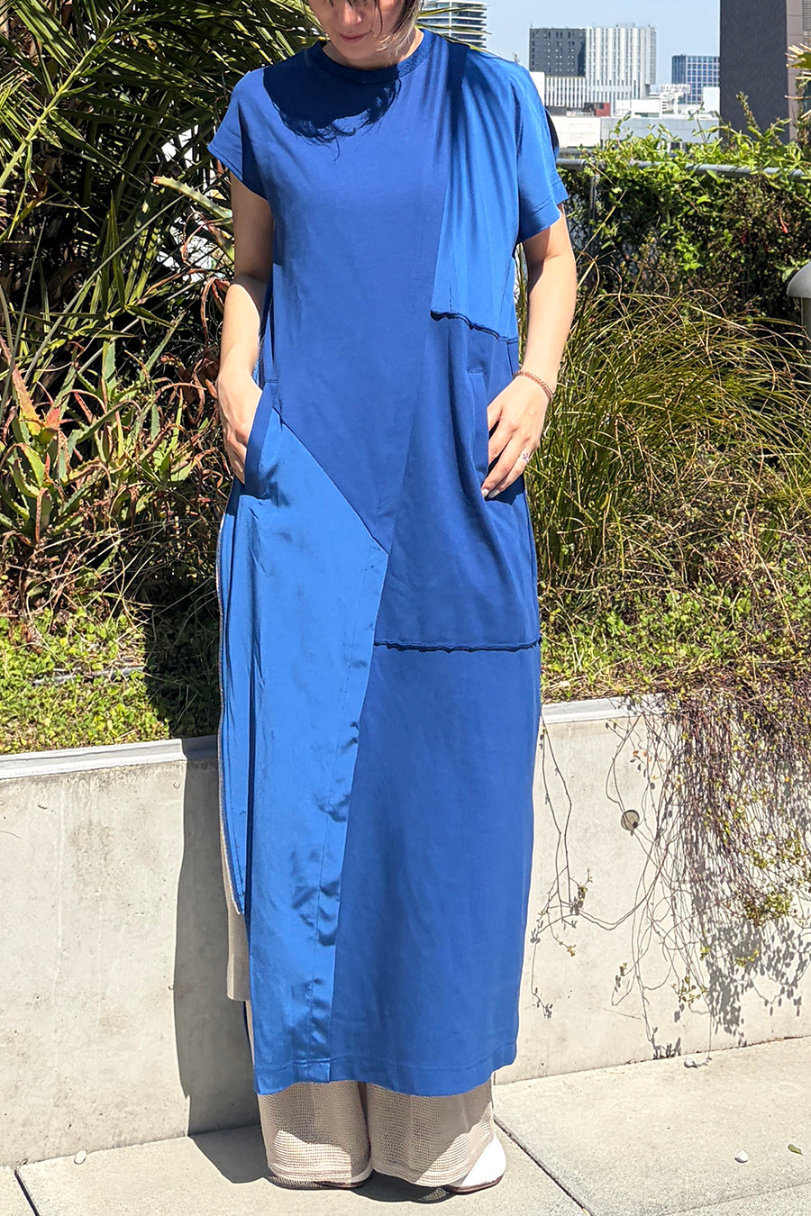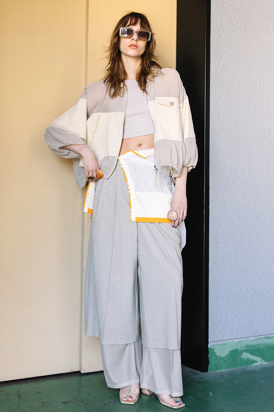 異素材のメッシュがレイヤードされた涼し気なデザイン。