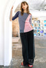 ヨーク切り替えから、タックギャザーの上にアウトポケットが付いたデザインがポイント。