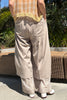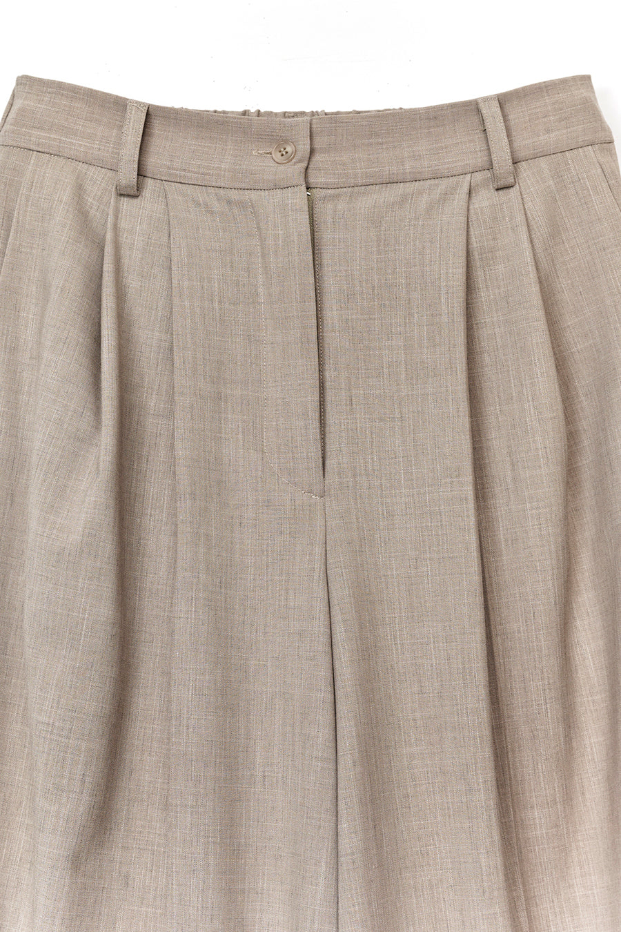 タック入り、センタープレスの綺麗めパンツの裾から、