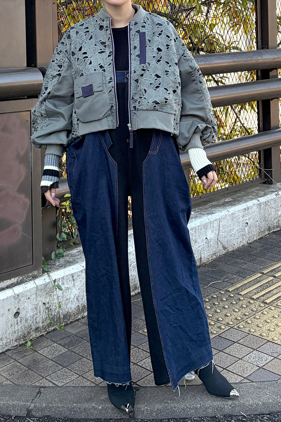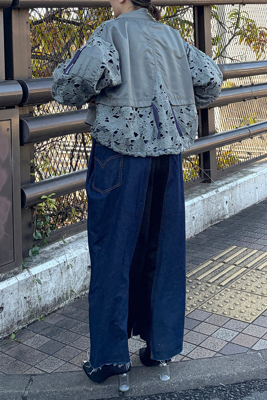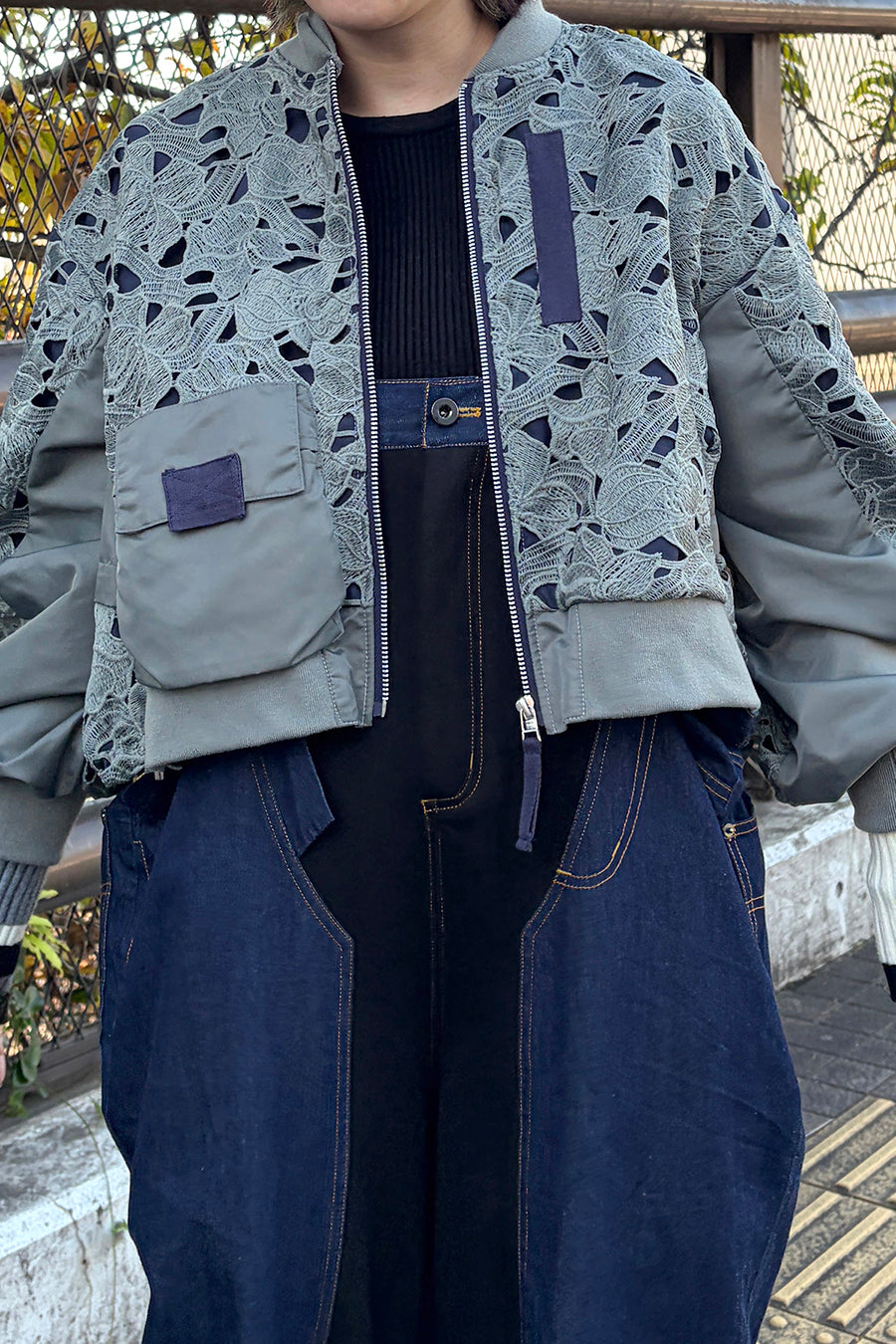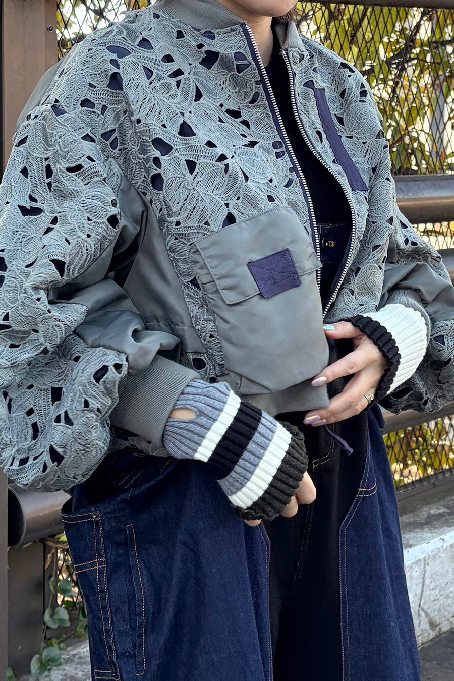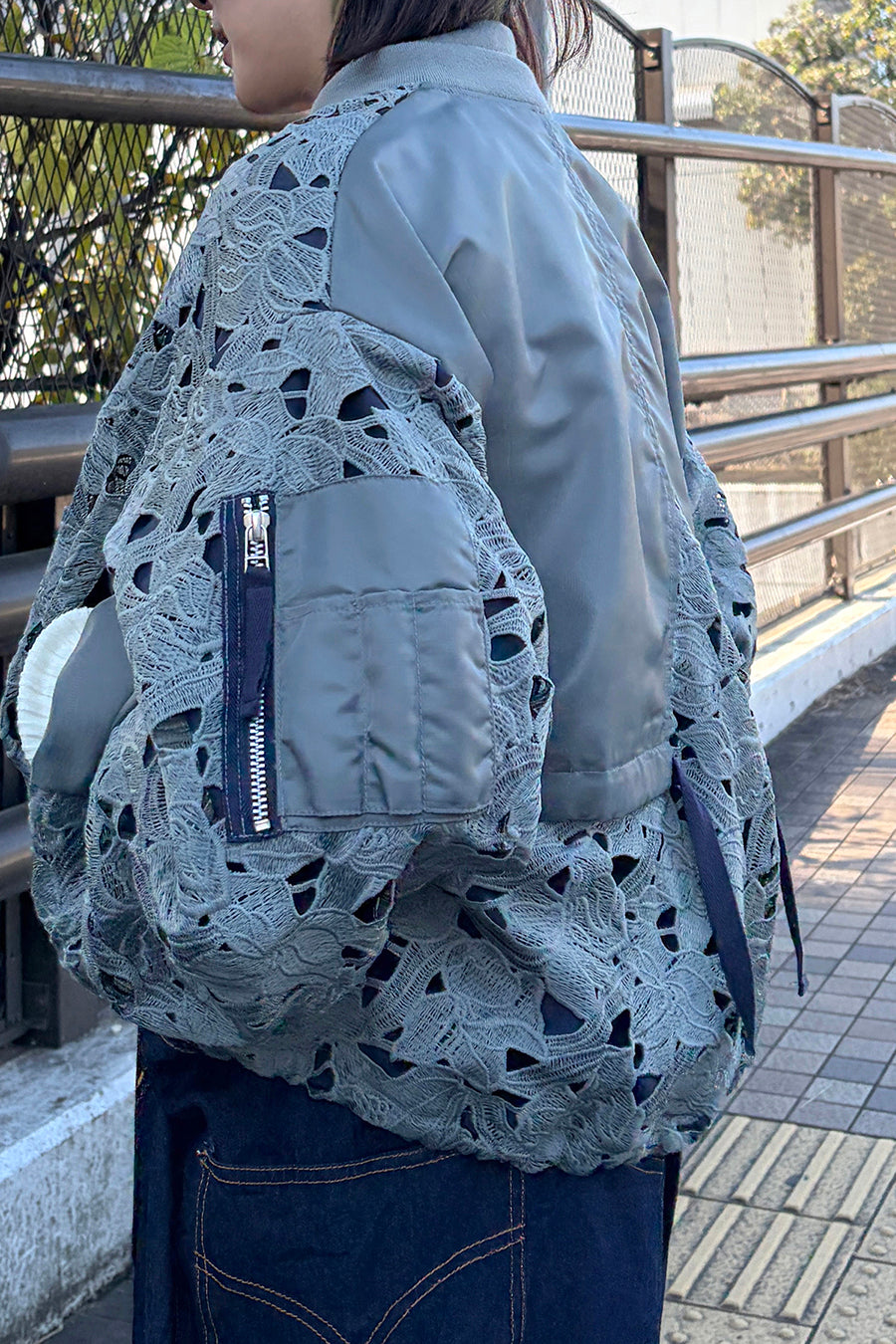 フラワーのカットワークレースを使用したMA-1ポケット付きブルゾン。