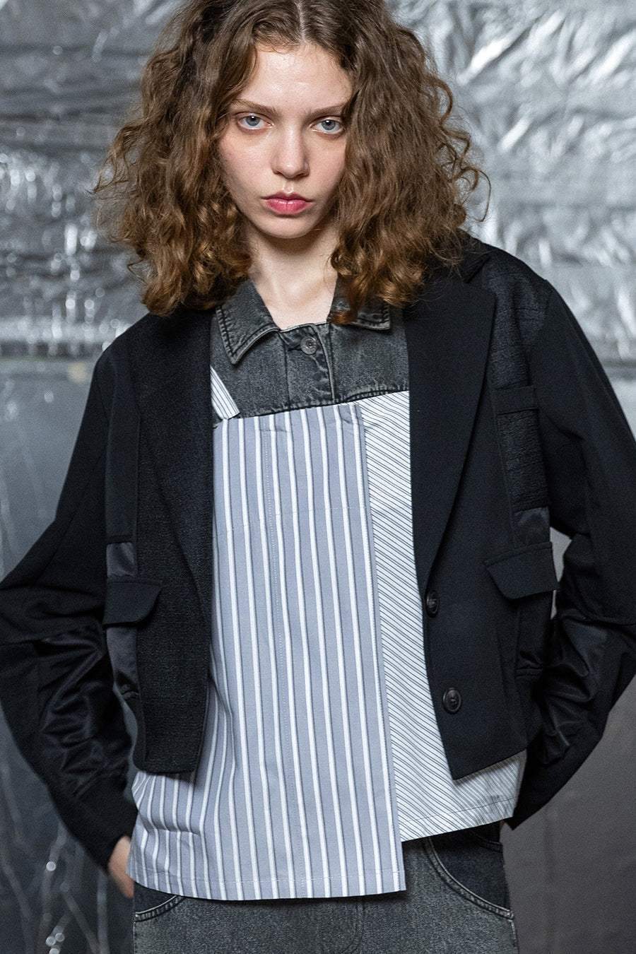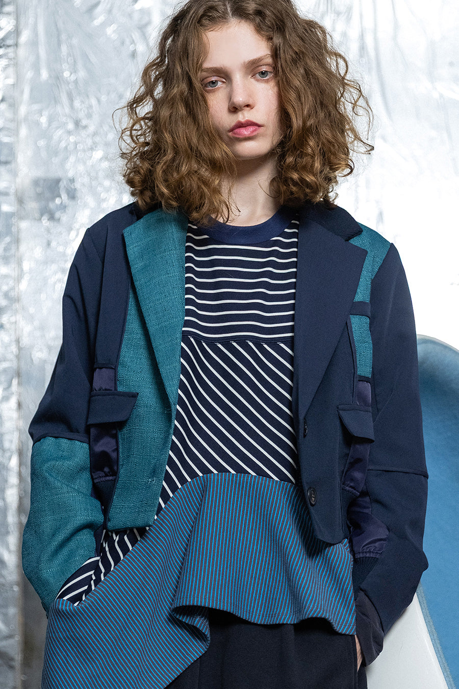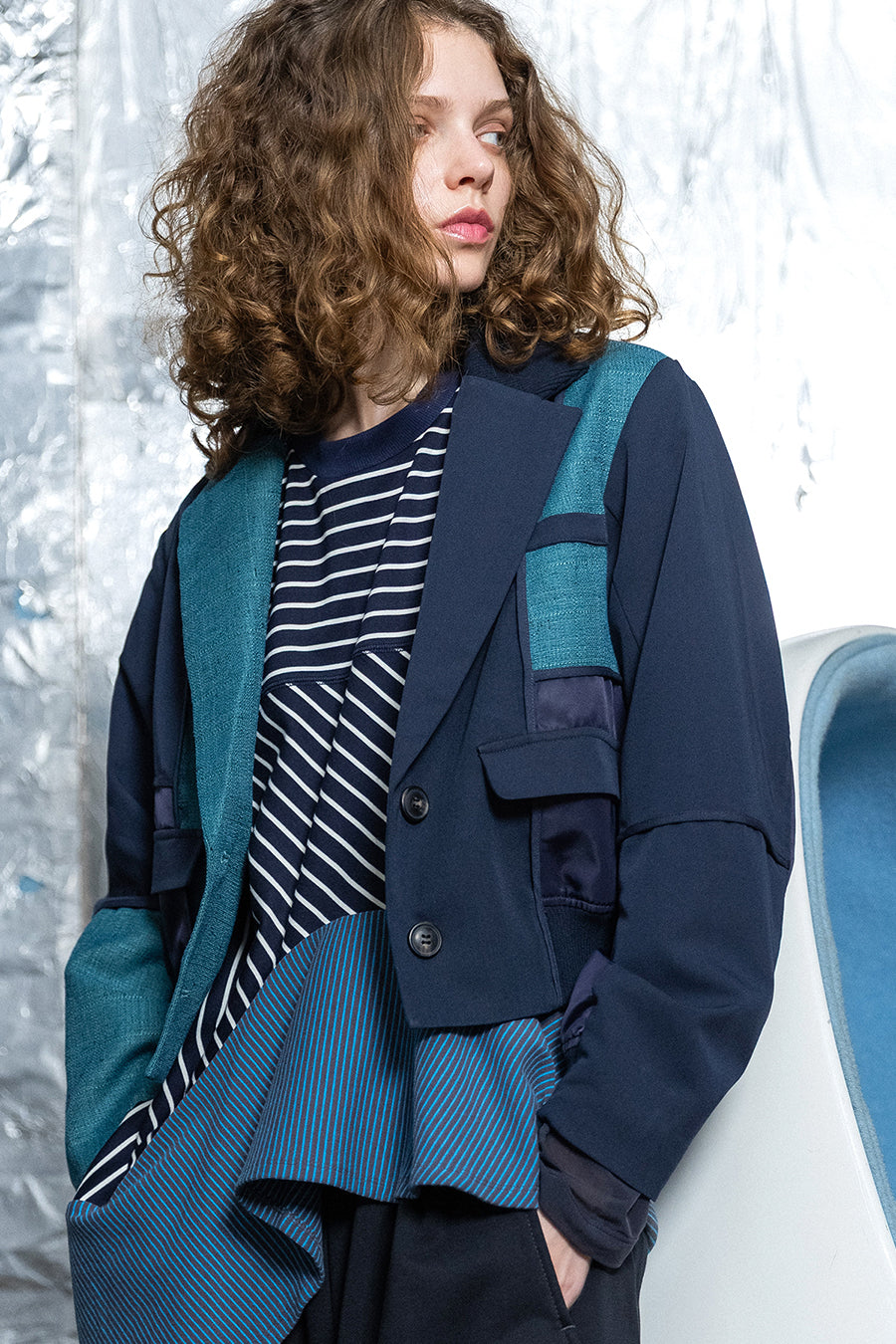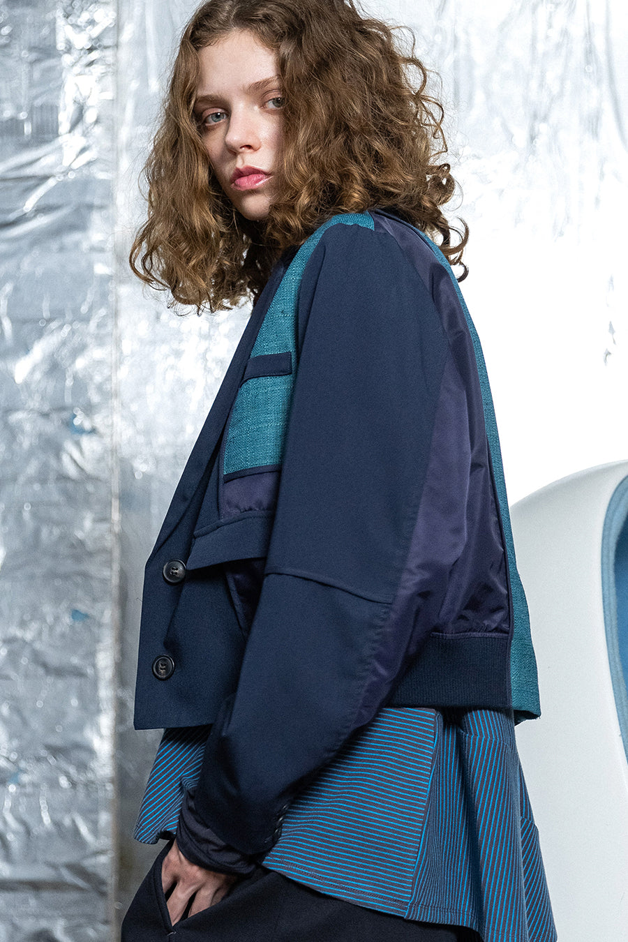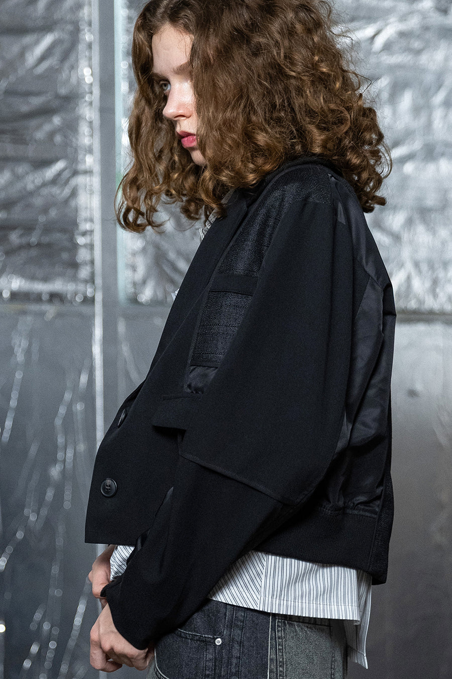 異素材を贅沢に掛け合わせた、ブルゾンライクなコンパクトジャケット。
