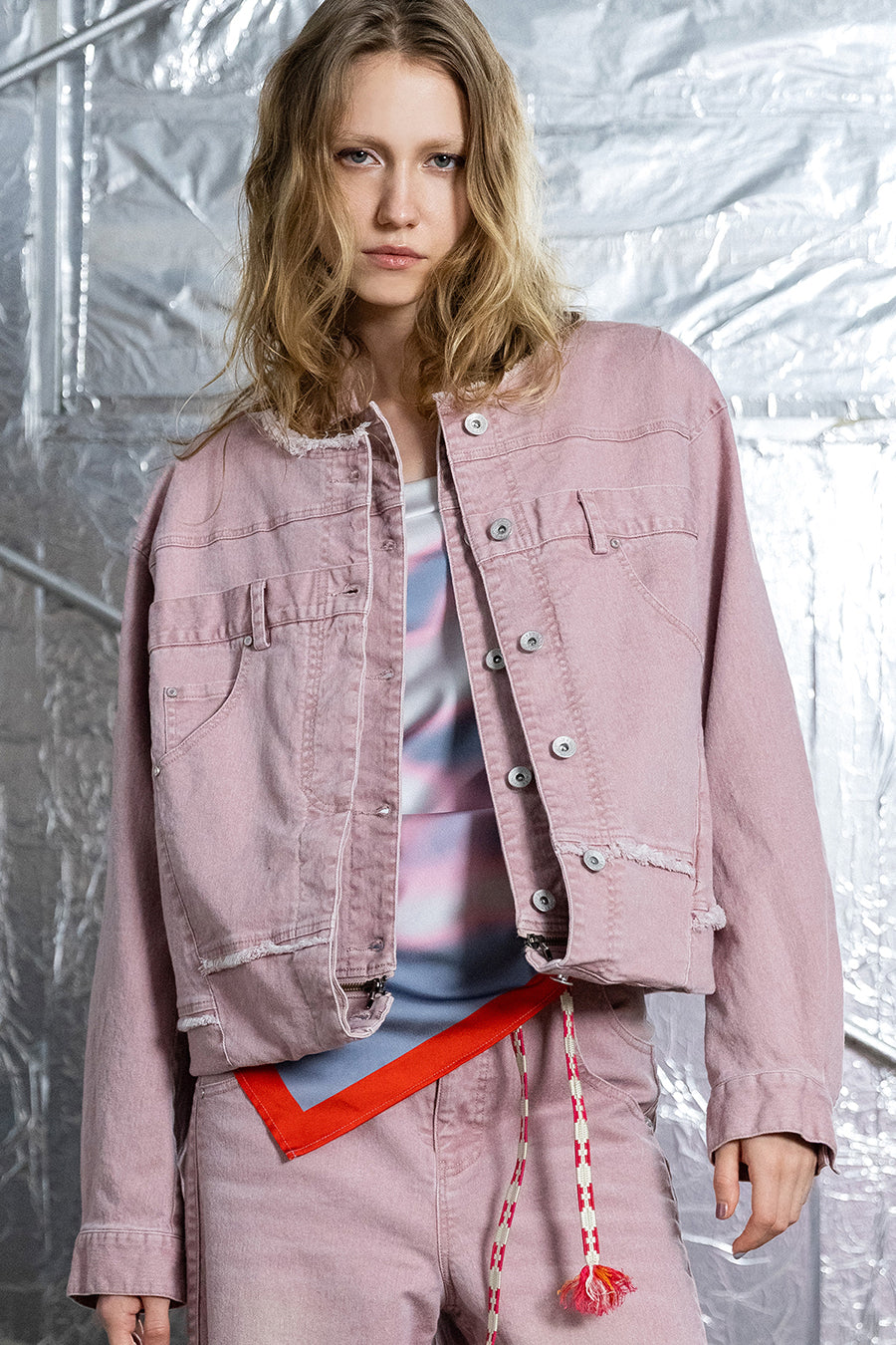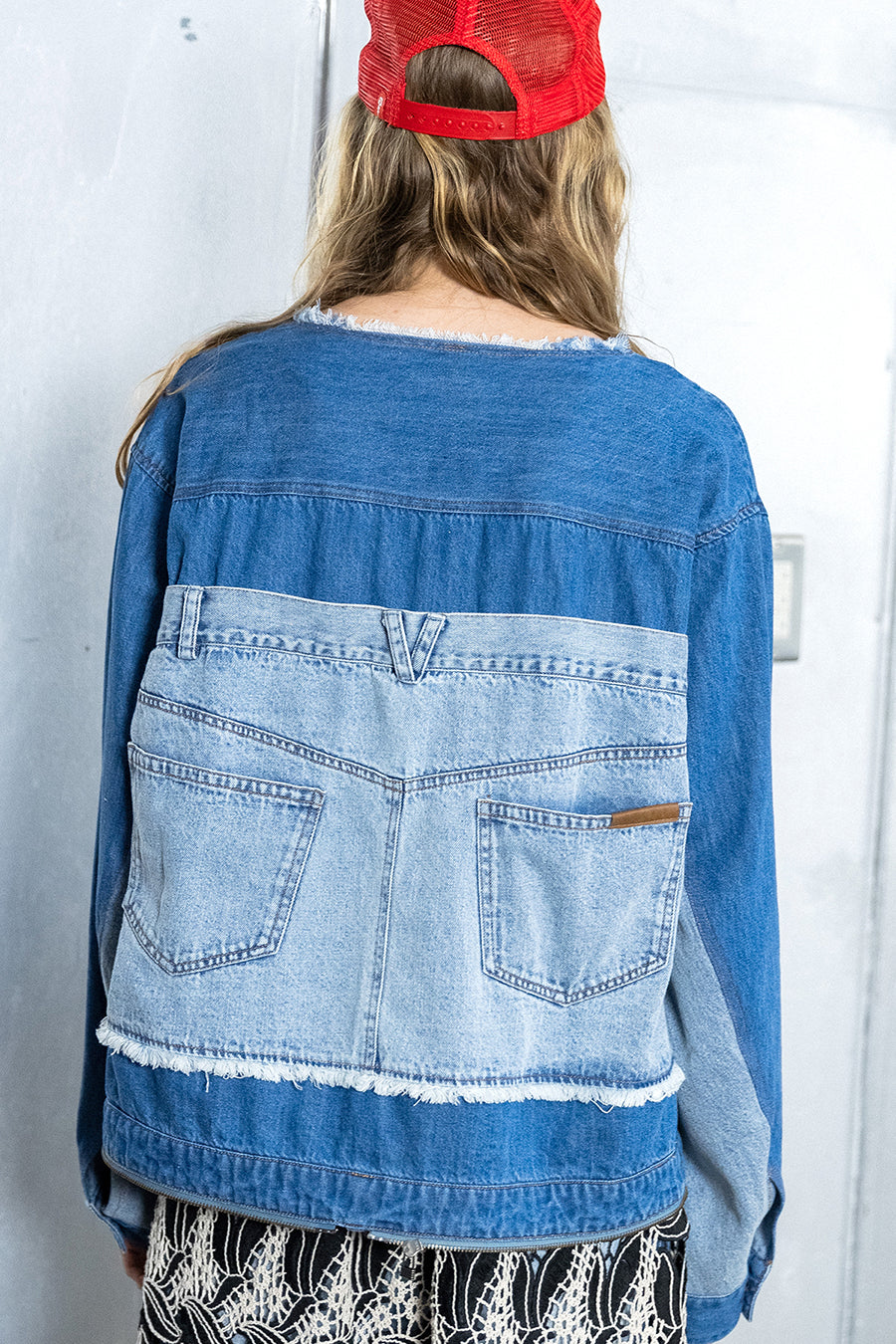 同じ生地のデニムコクーンパンツと合わせて着用するのも◎