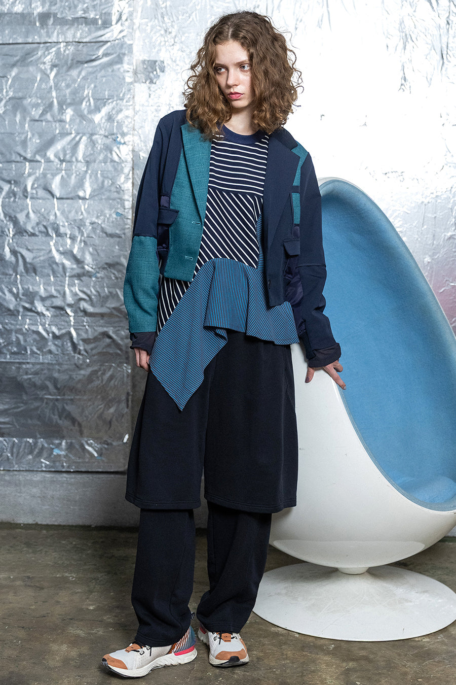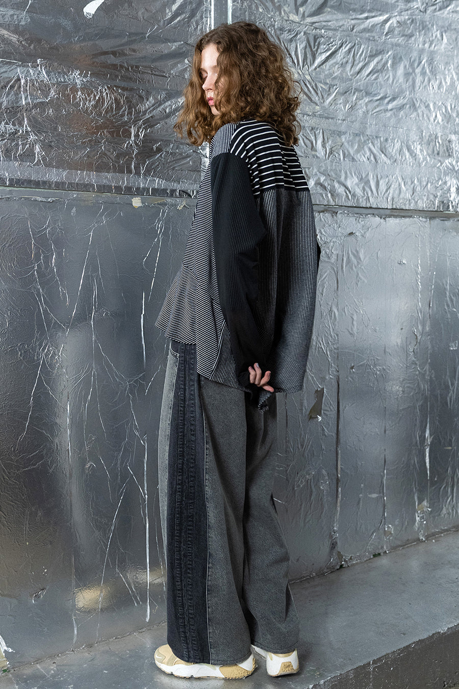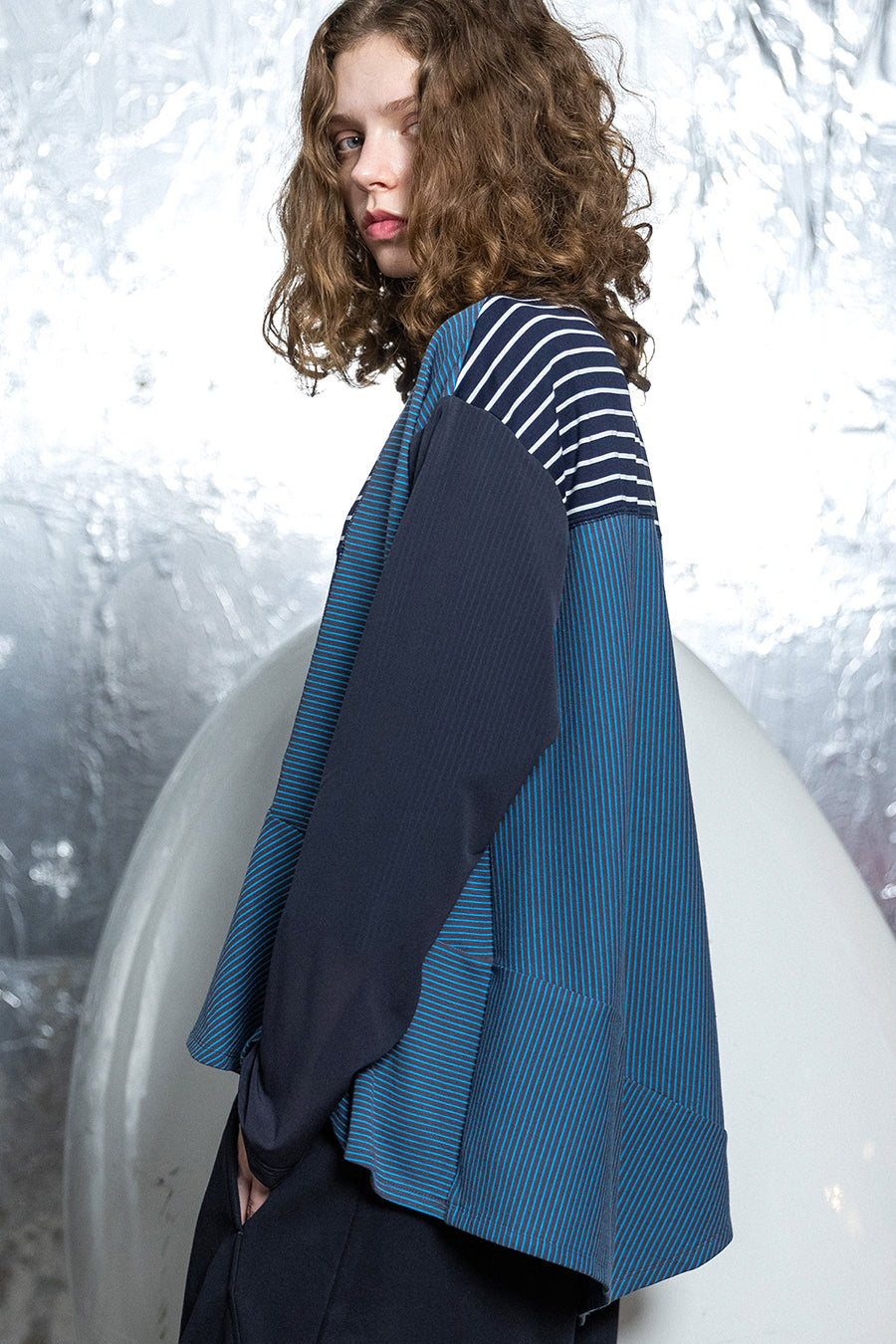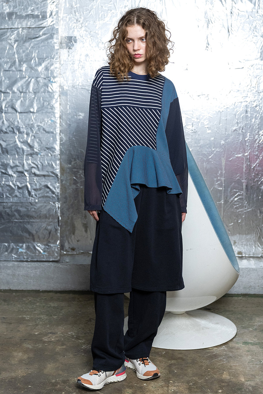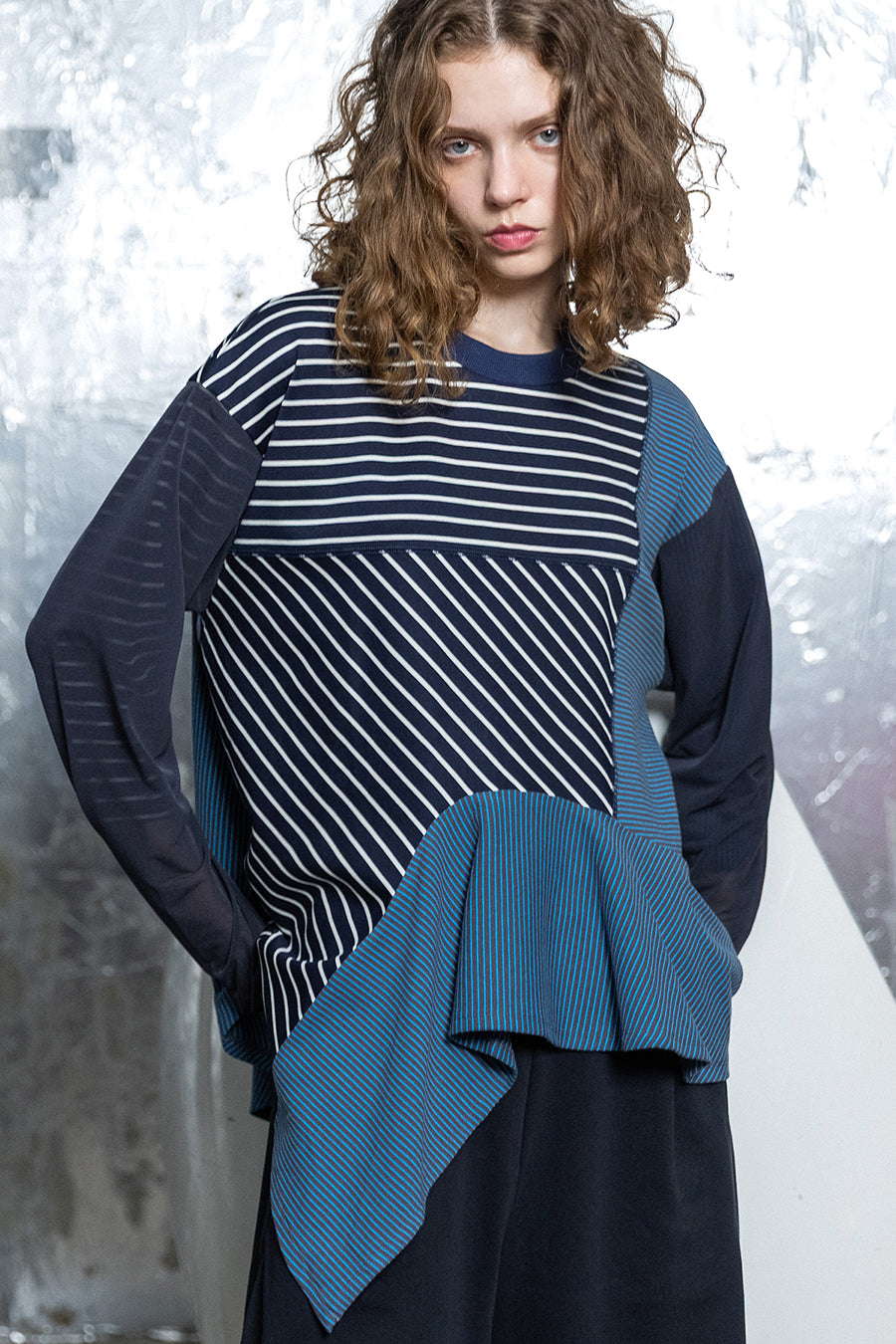 袖はボーダーを7分丈、トリコット生地を長袖にし、