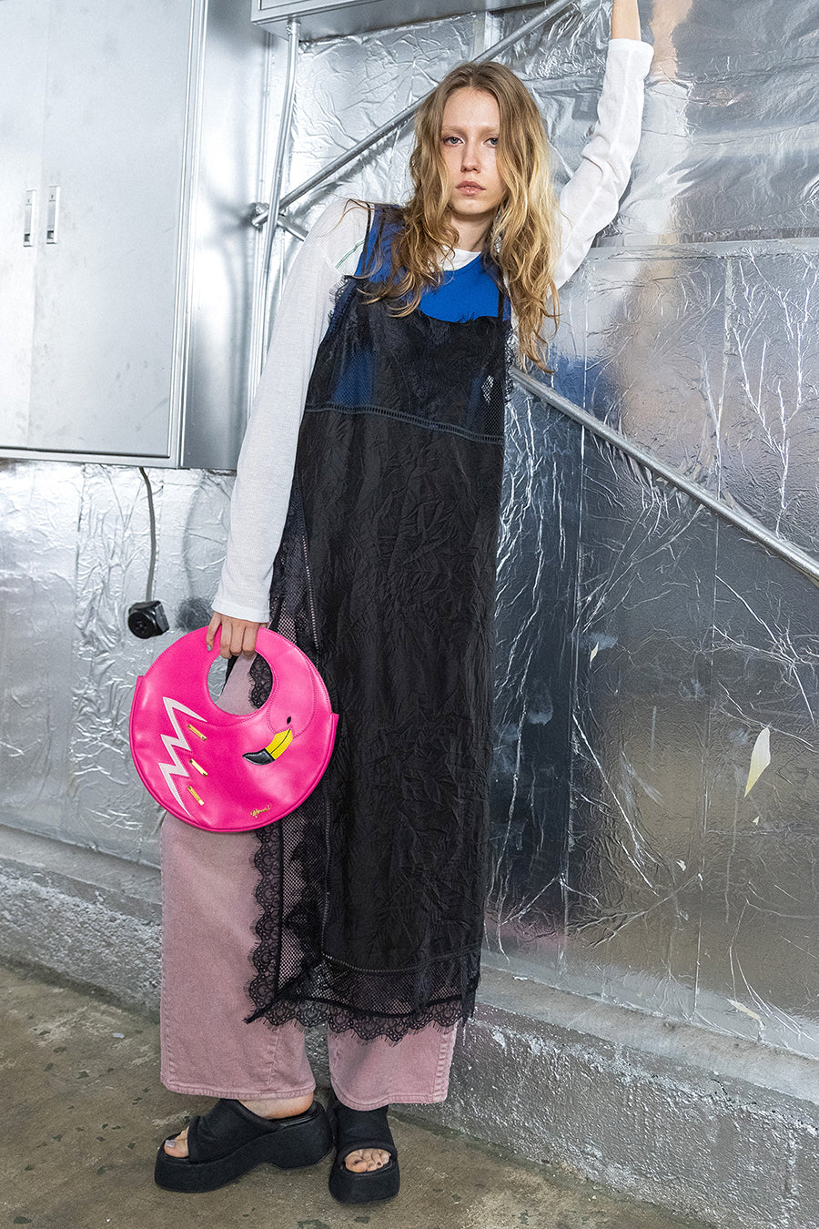 華奢さとシアー感が女性らしさを演出。右脇は深めの斜めスリット入りで、
