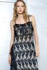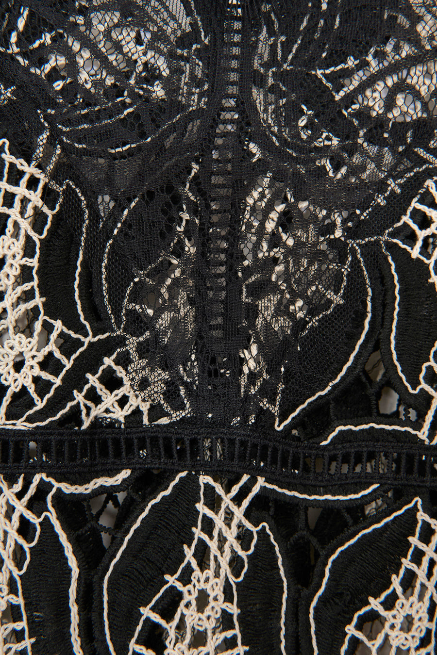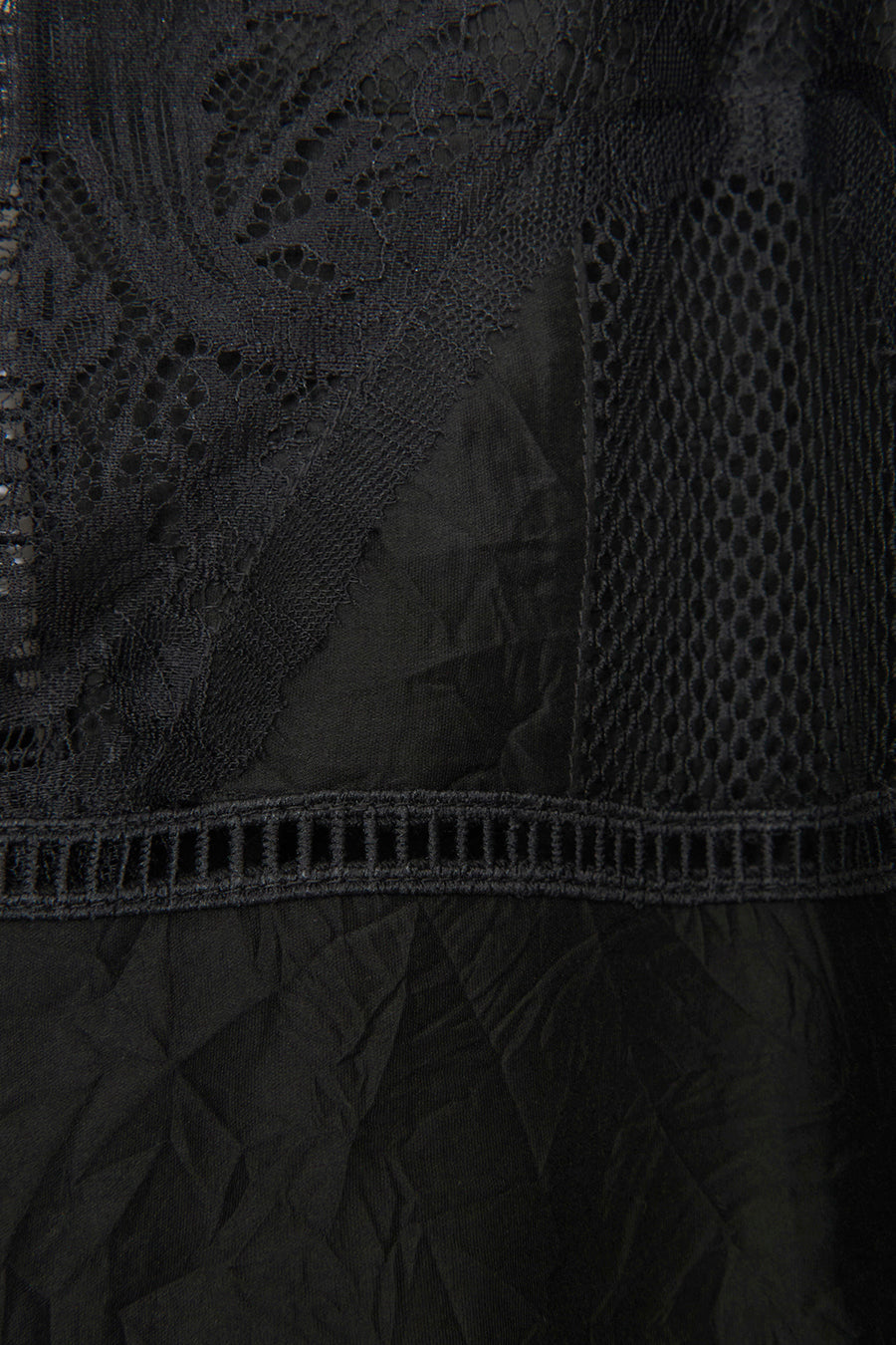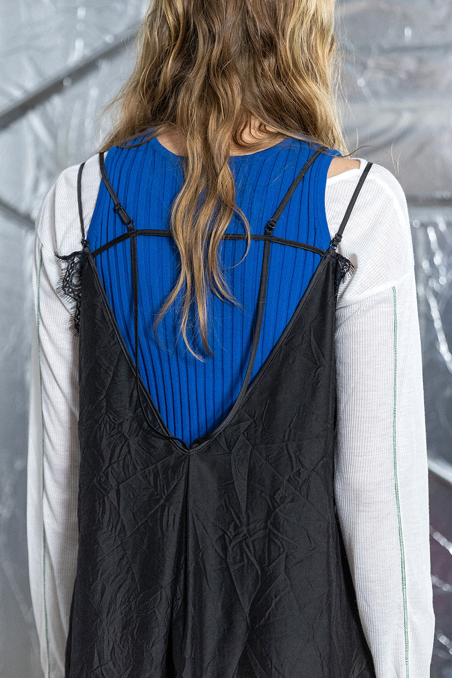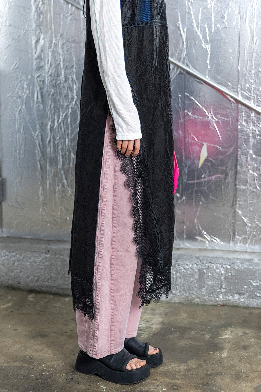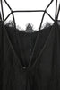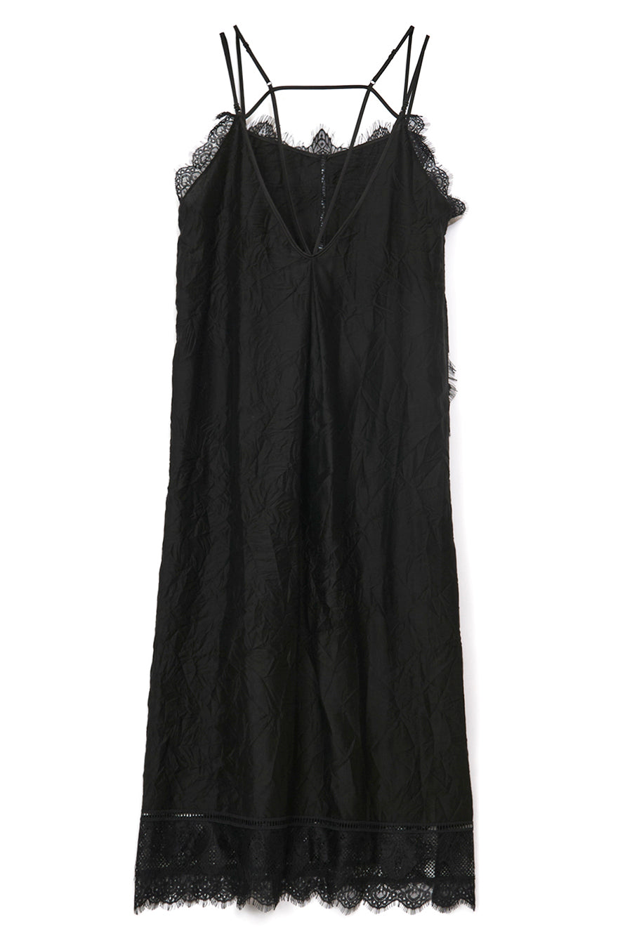 胸元に沿ってV型のモチーフリバーレースとメッシュを剥ぎ、