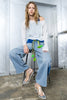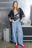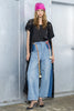 ジャケットと同じ素材のコクーンデニムパンツ。