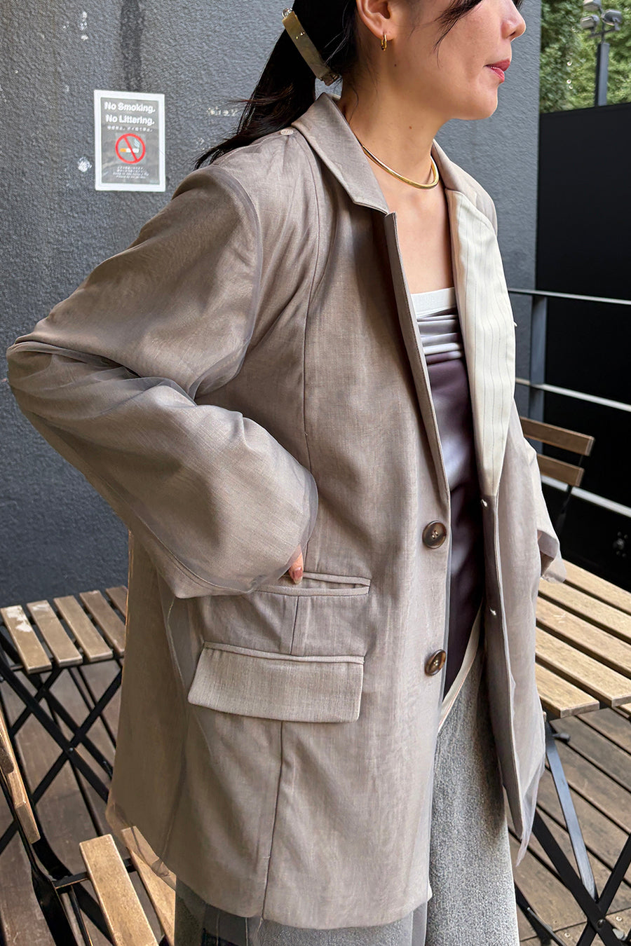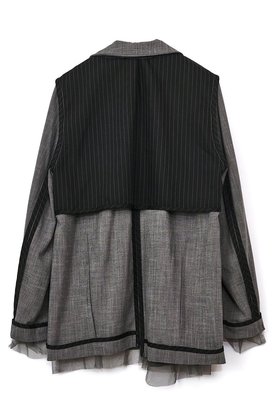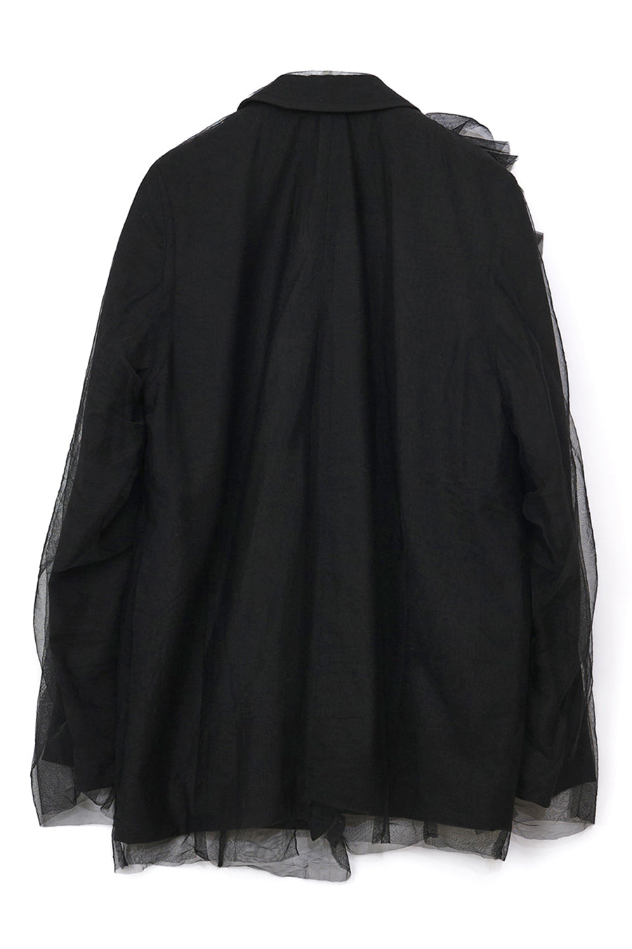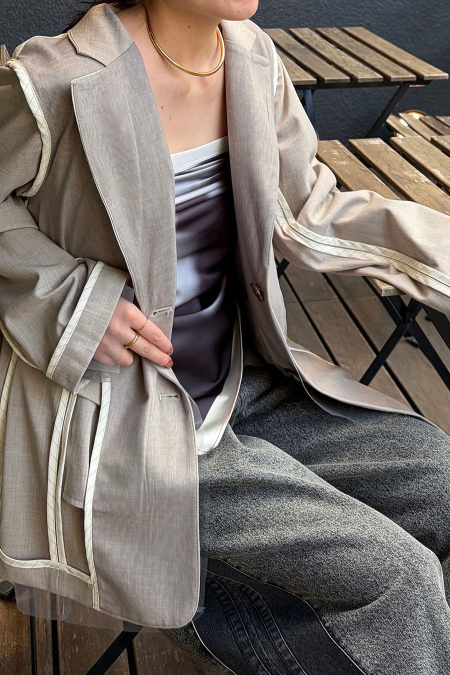 リバーシブルテーラージャケット。肩から垂らす、プリーツフリルがトレンド感をプラス。