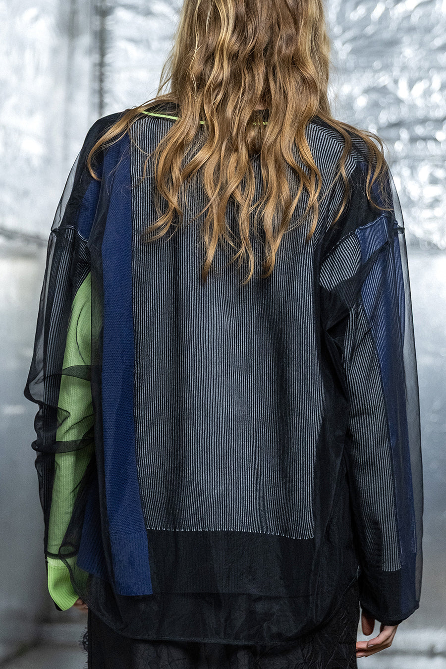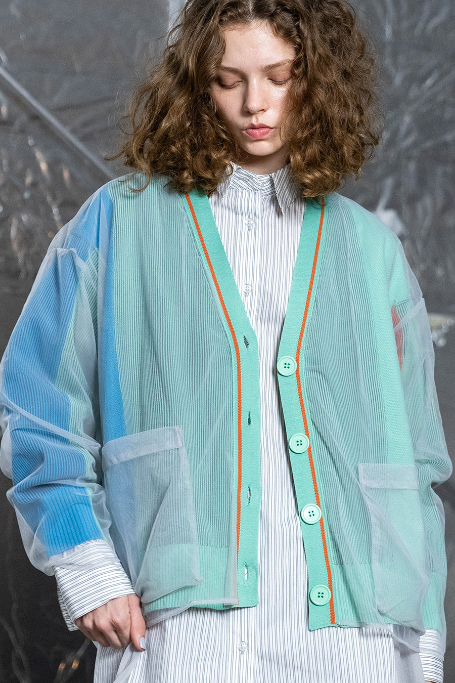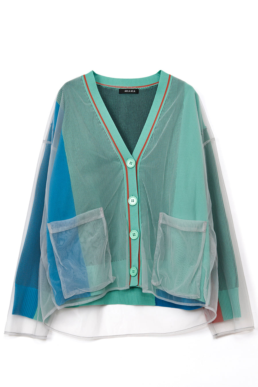 TULLE LAYERED COLOR BLOCK CARDIGAN