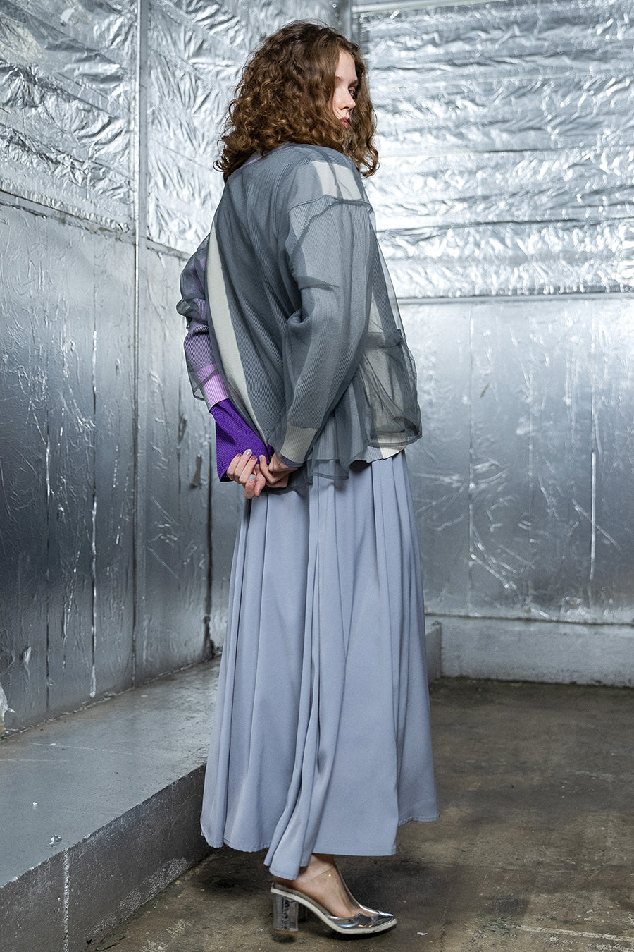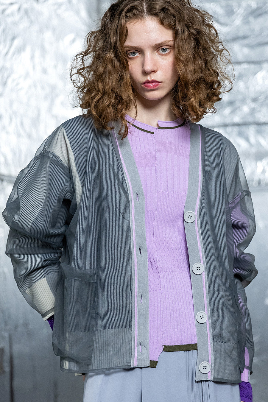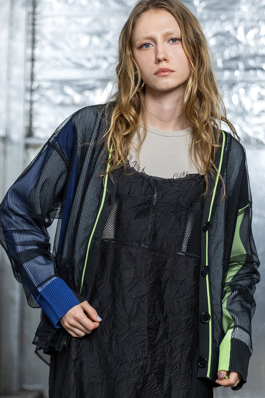 TULLE LAYERED COLOR BLOCK CARDIGAN