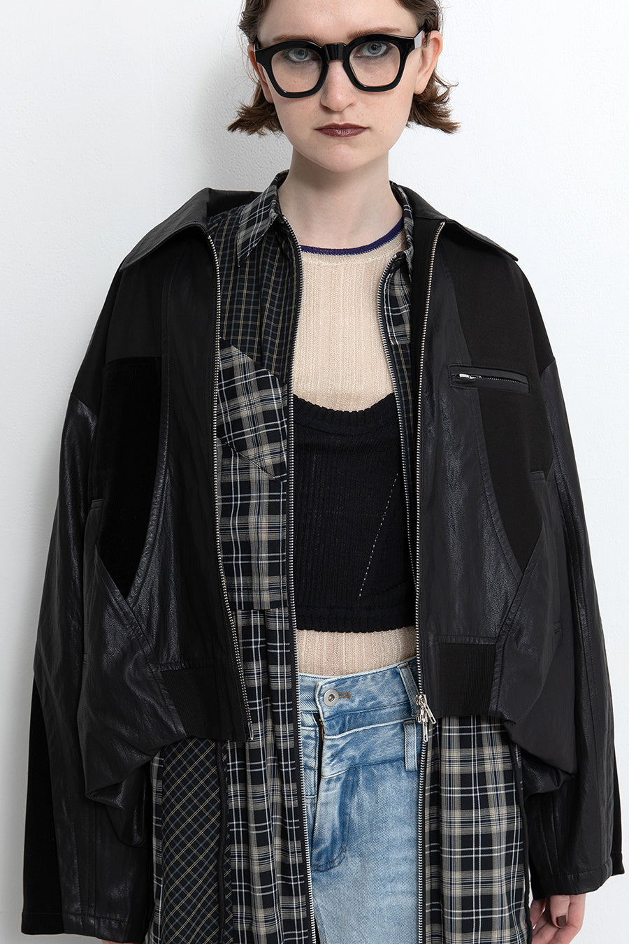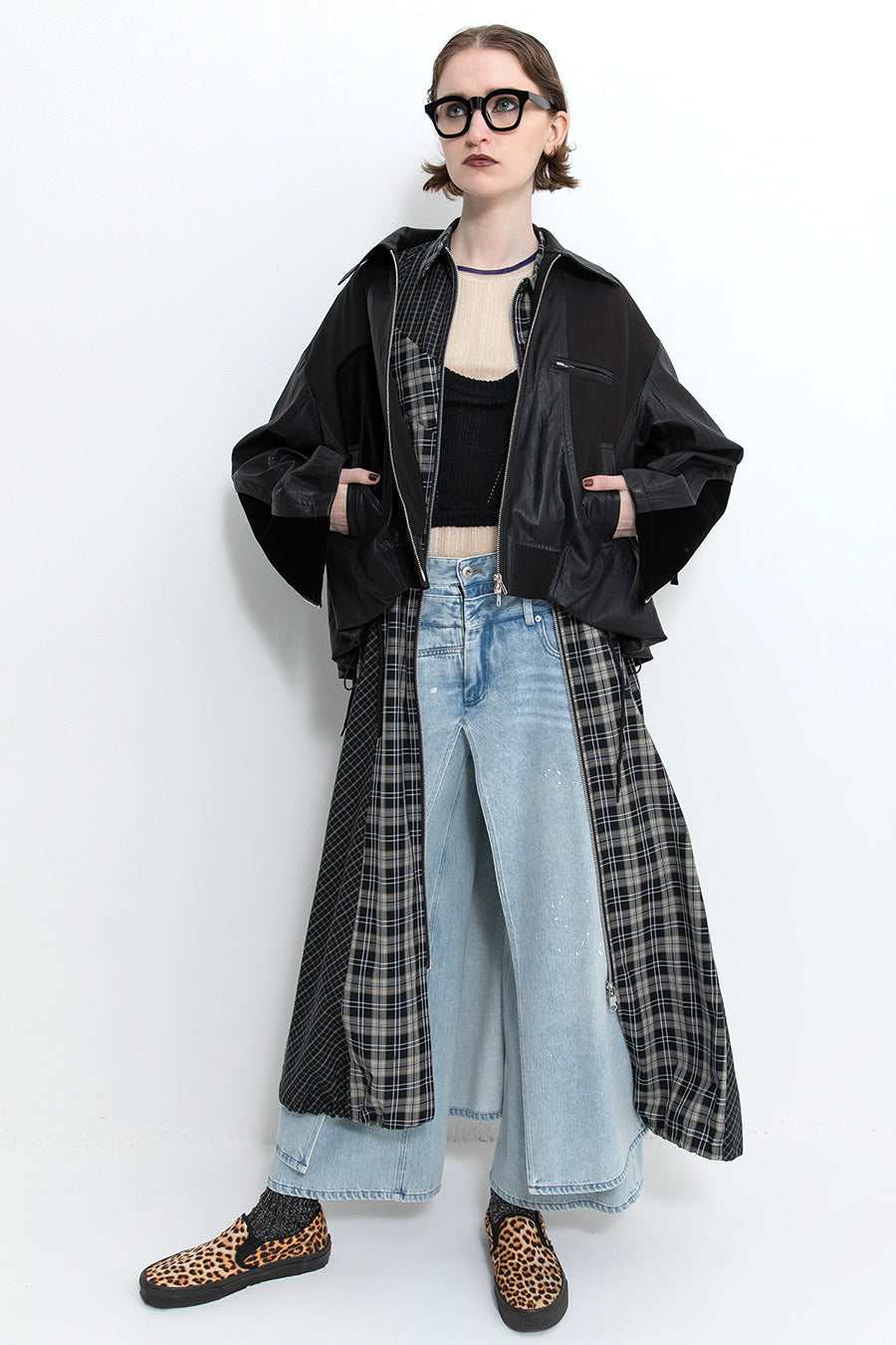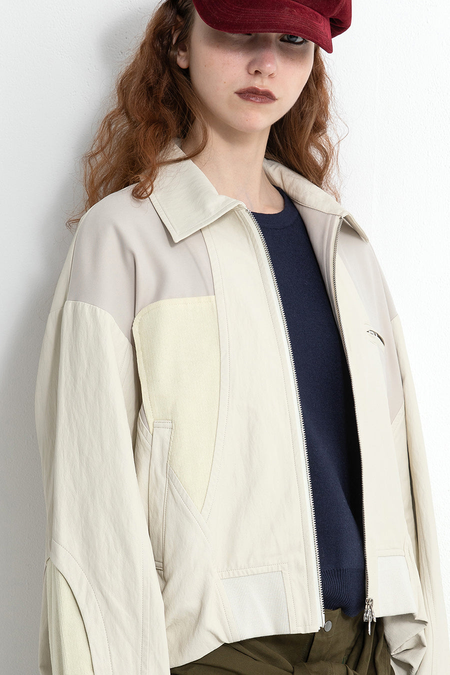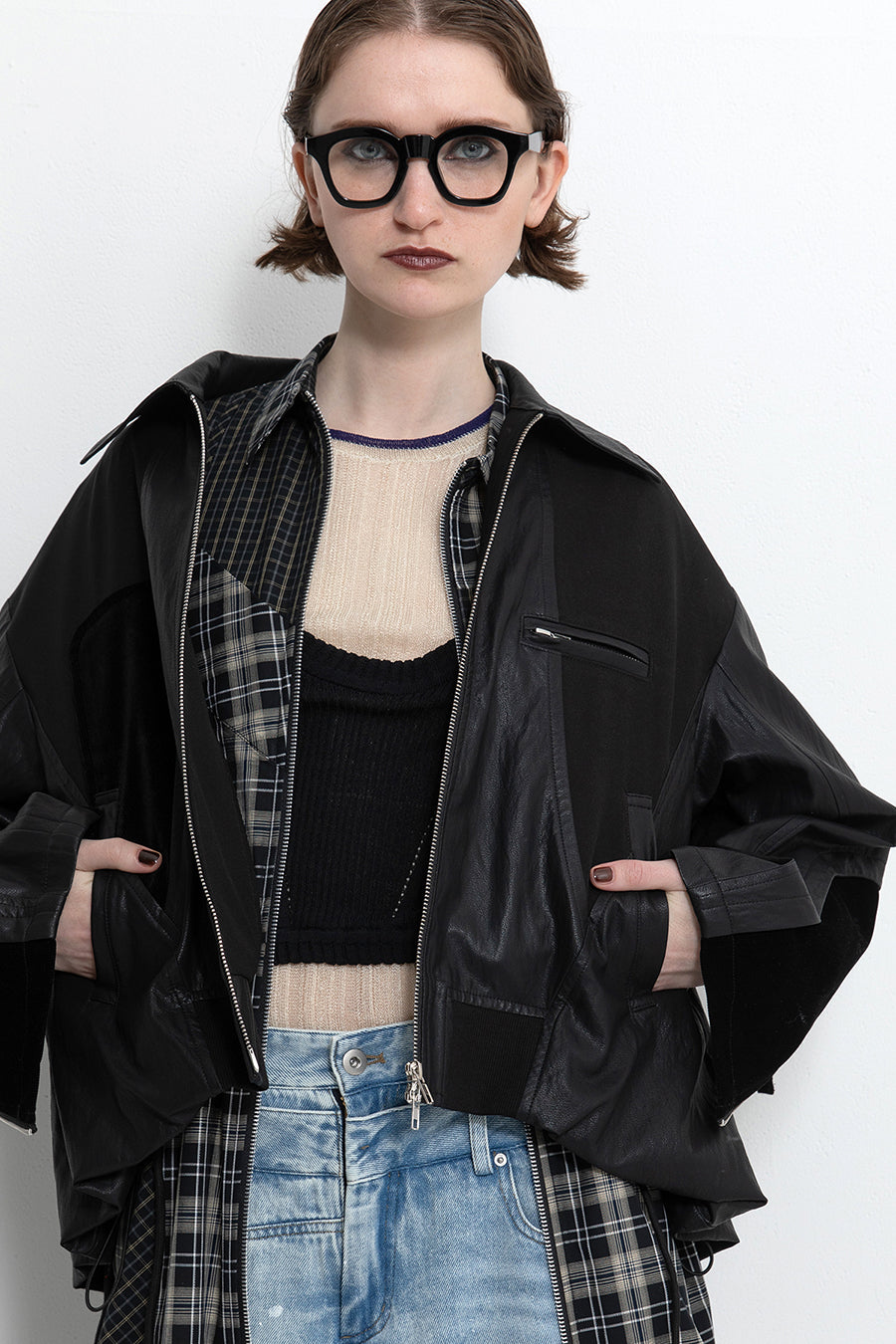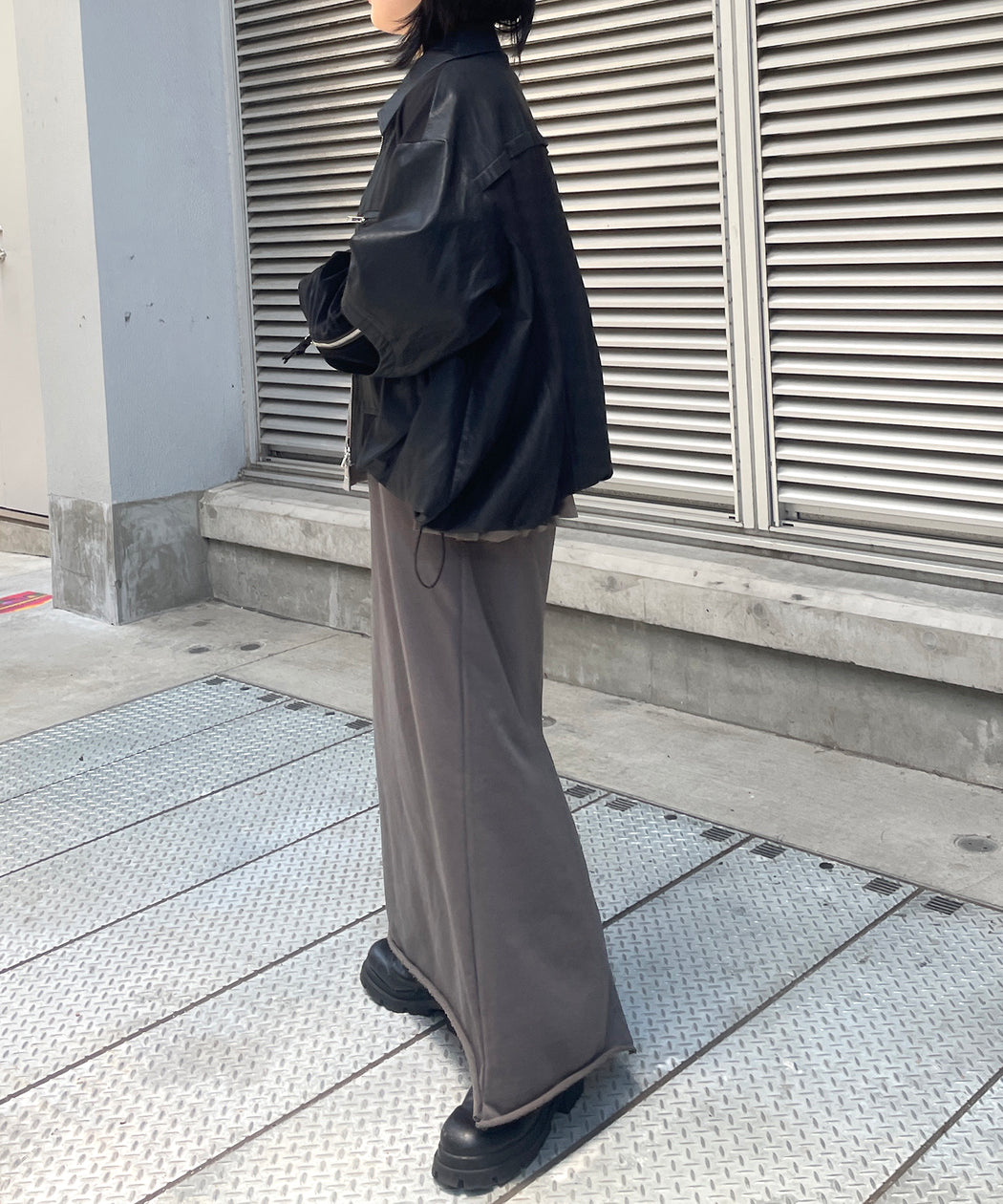 薄くしなやかでヴィンテージ感のあるエコレザーを使ったブルゾン。裾のドロストコードの絞り具合でシルエットが調節でき、ゆったりAラインからボリューミーなバルーンヘムまで、コーディネートに合わせて変えられるのが嬉しい。部分的にTRで切り替えたり、袖口や右ポケット上には深みにあるコーデュロイ素材を組み合わせてアクセントに。身頃のみ裏地付きで、秋口から初冬まで長く着られるアイテム。袖口ファスナースリット仕様。
