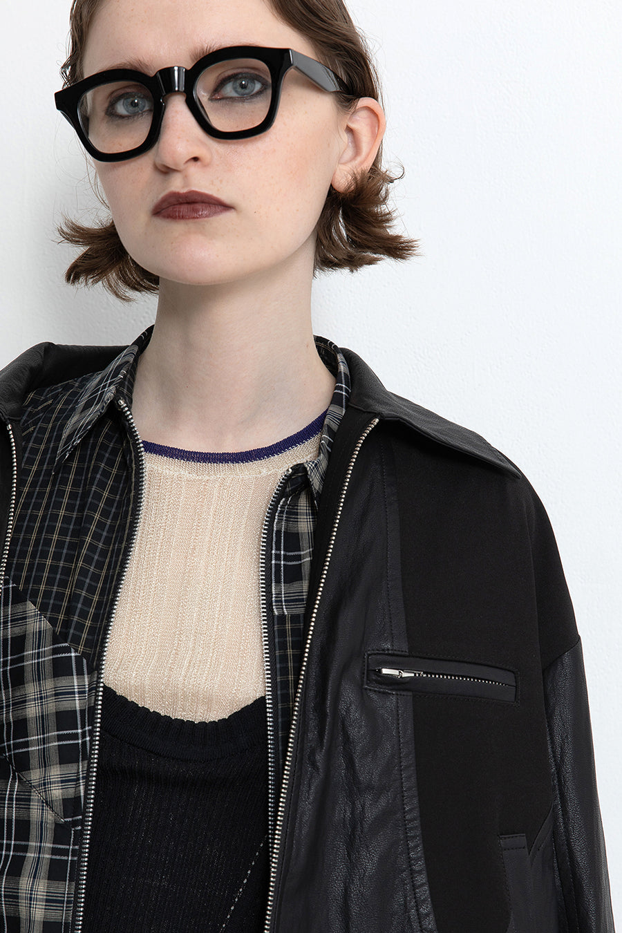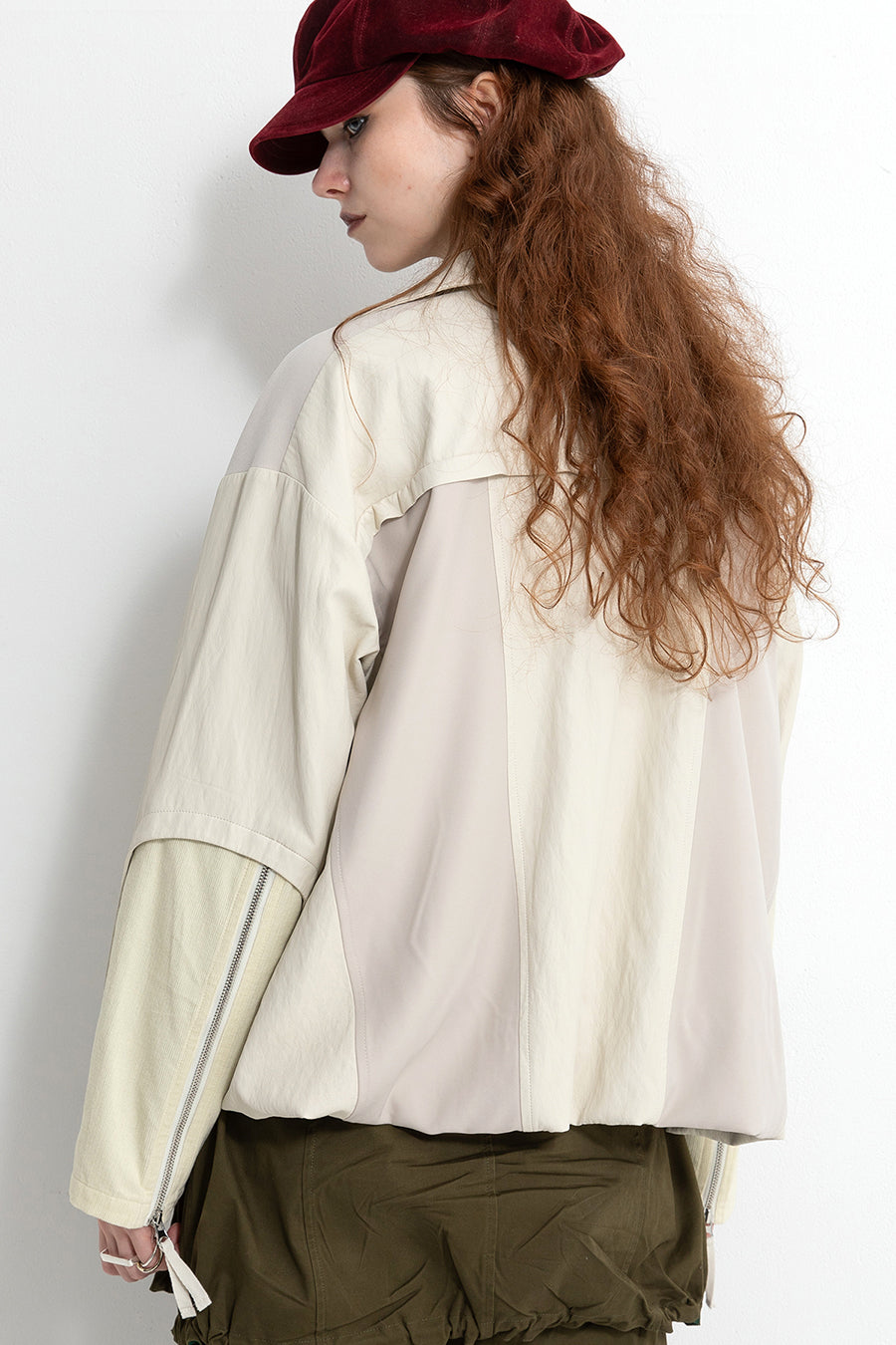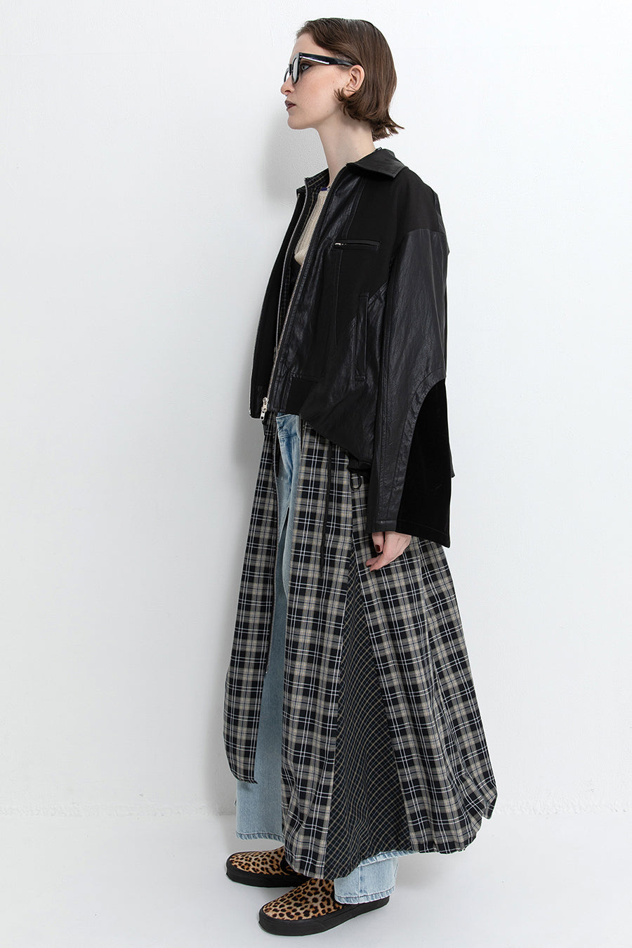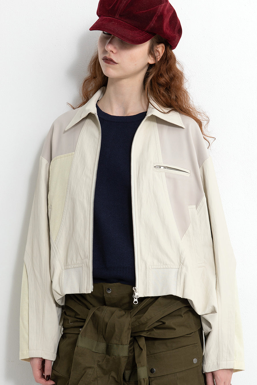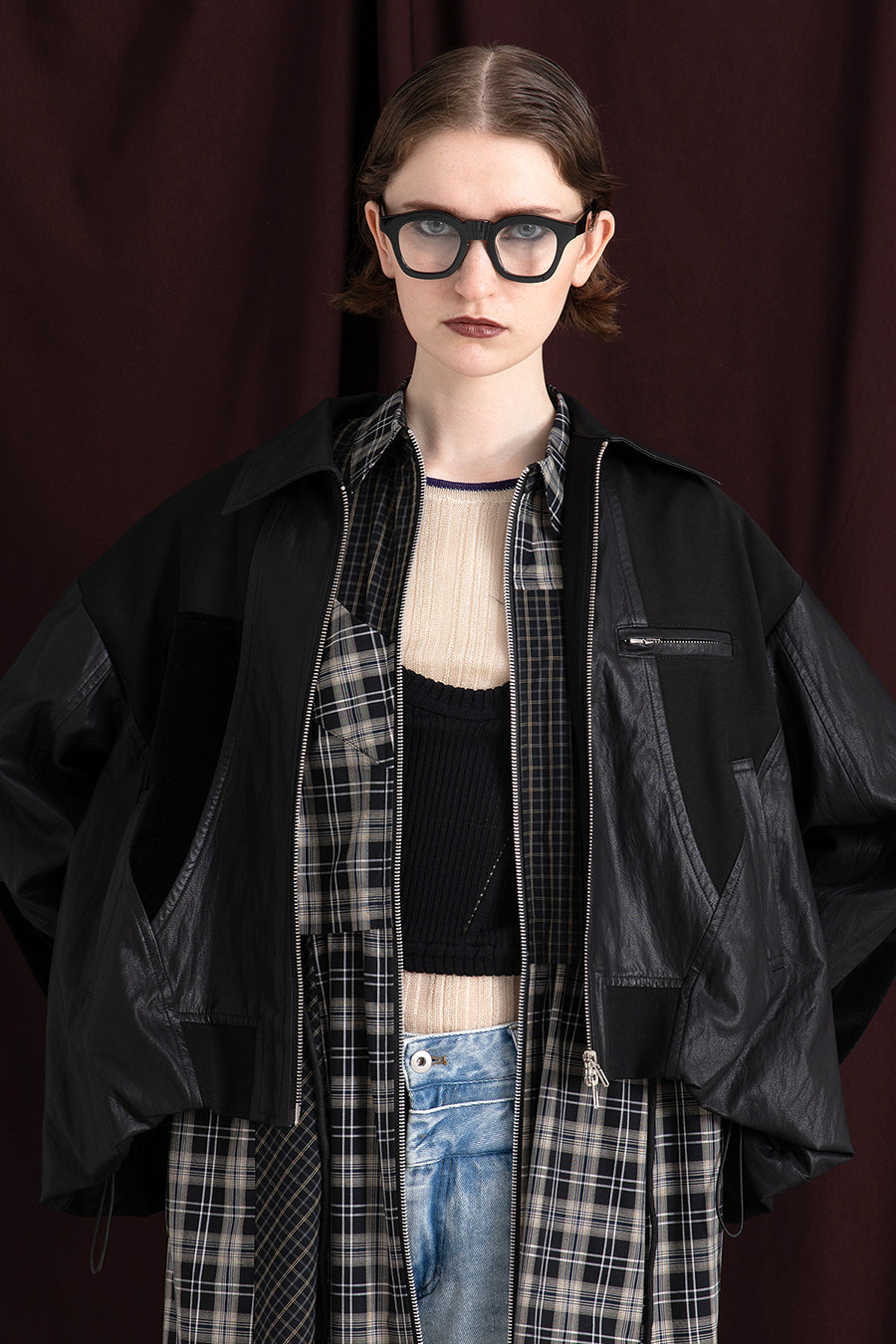 薄くしなやかでヴィンテージ感のあるエコレザーを使ったブルゾン。裾のドロストコードの絞り具合でシルエットが調節でき、ゆったりAラインからボリューミーなバルーンヘムまで、コーディネートに合わせて変えられるのが嬉しい。部分的にTRで切り替えたり、袖口や右ポケット上には深みにあるコーデュロイ素材を組み合わせてアクセントに。身頃のみ裏地付きで、秋口から初冬まで長く着られるアイテム。袖口ファスナースリット仕様。