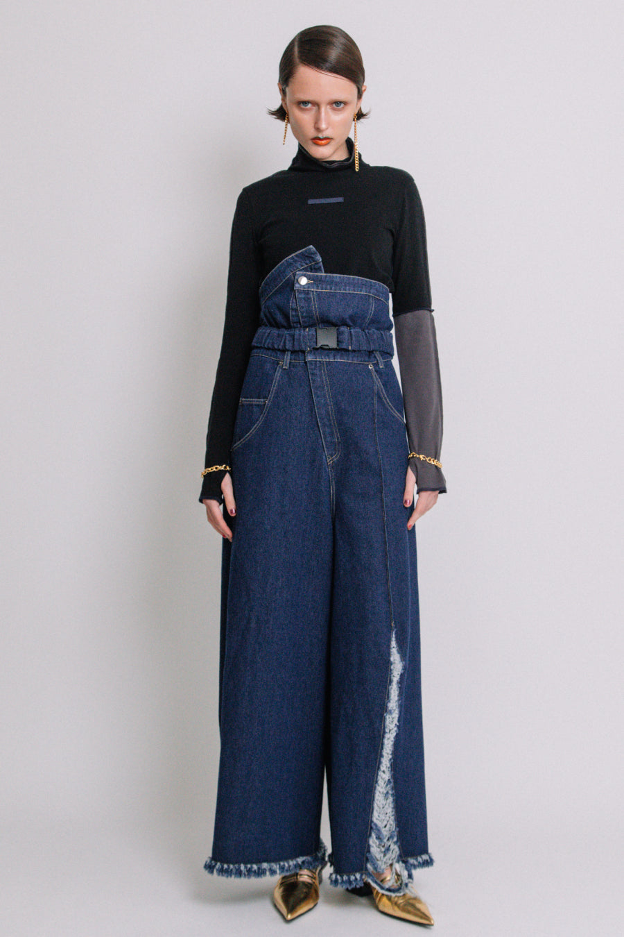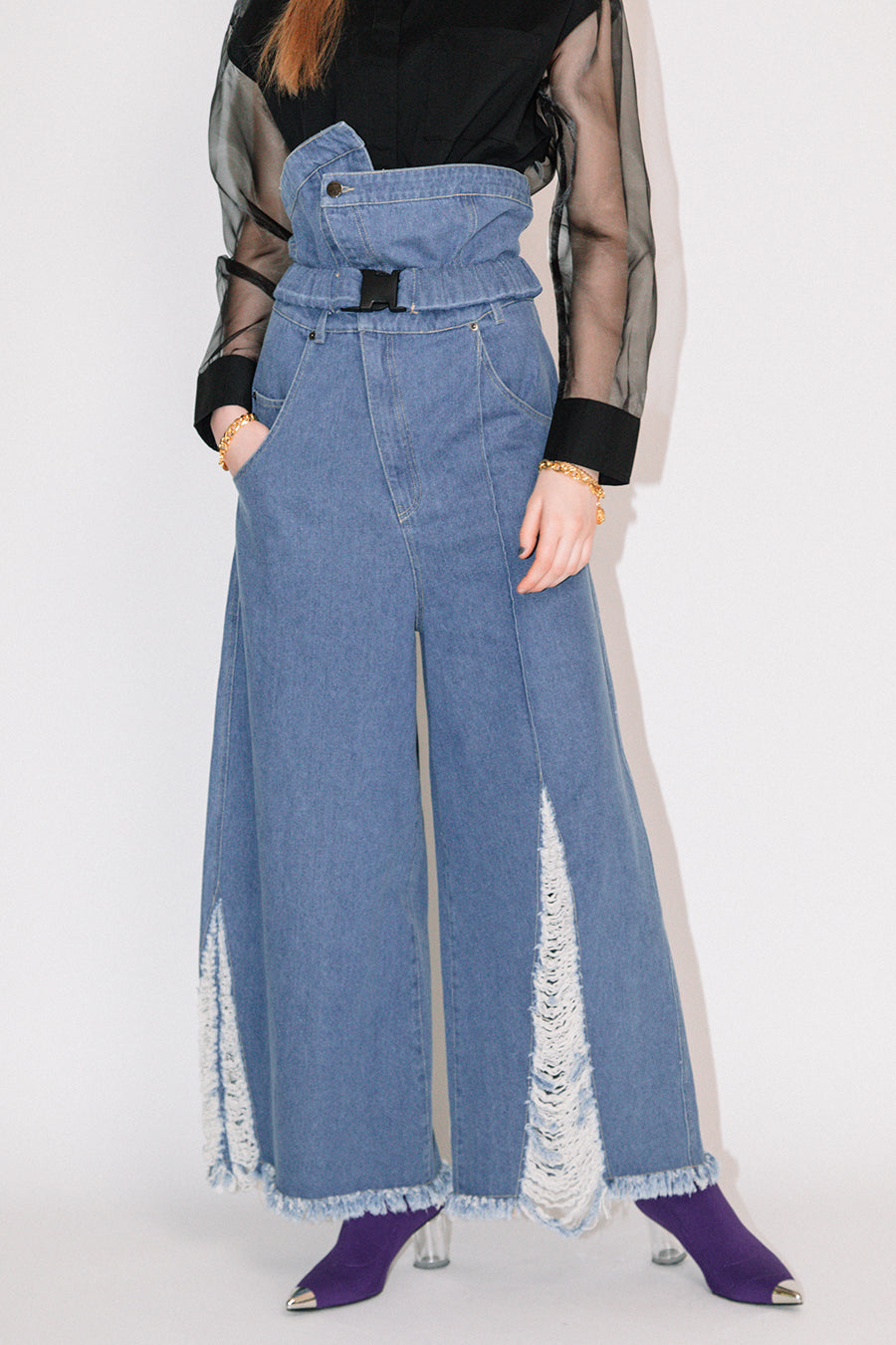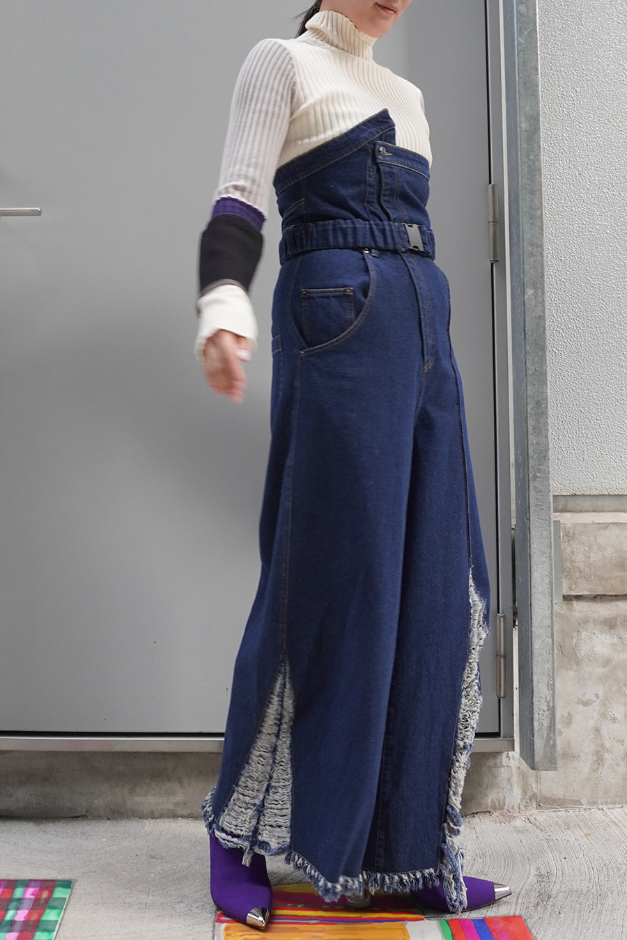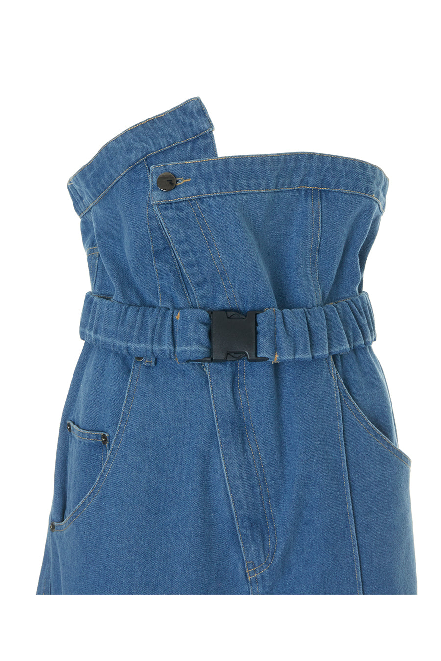 ベアトップ部分を折り返し、抜け感を出して着用しても◎厚過ぎず、重くならない9オンスデニムを使用し、バイオ洗い加工により、インディゴデニムらしいカラー、肌に馴染むソフトな仕上がりに。