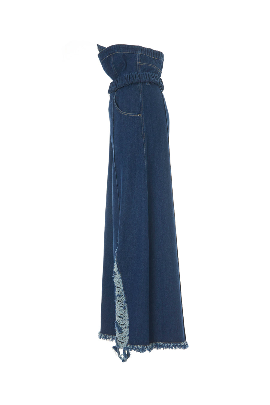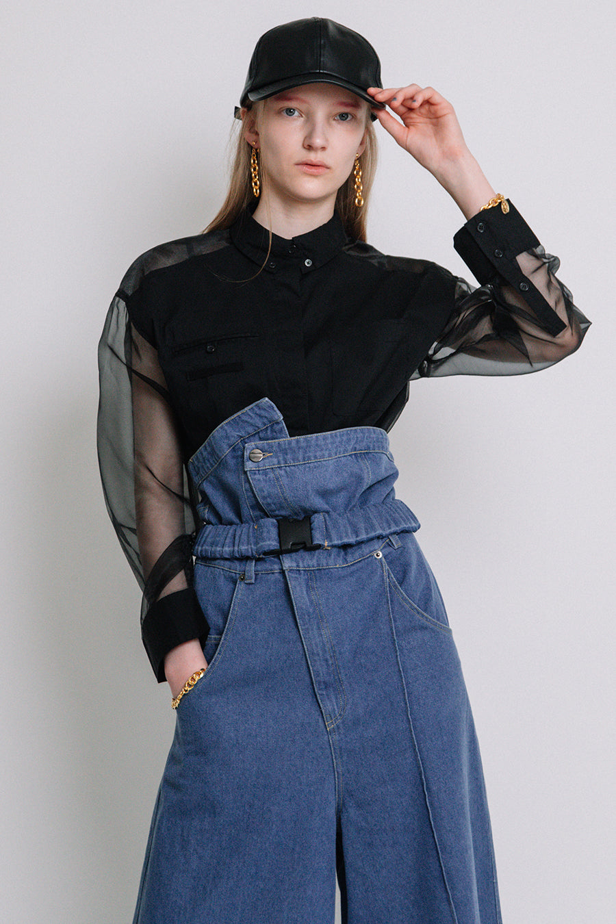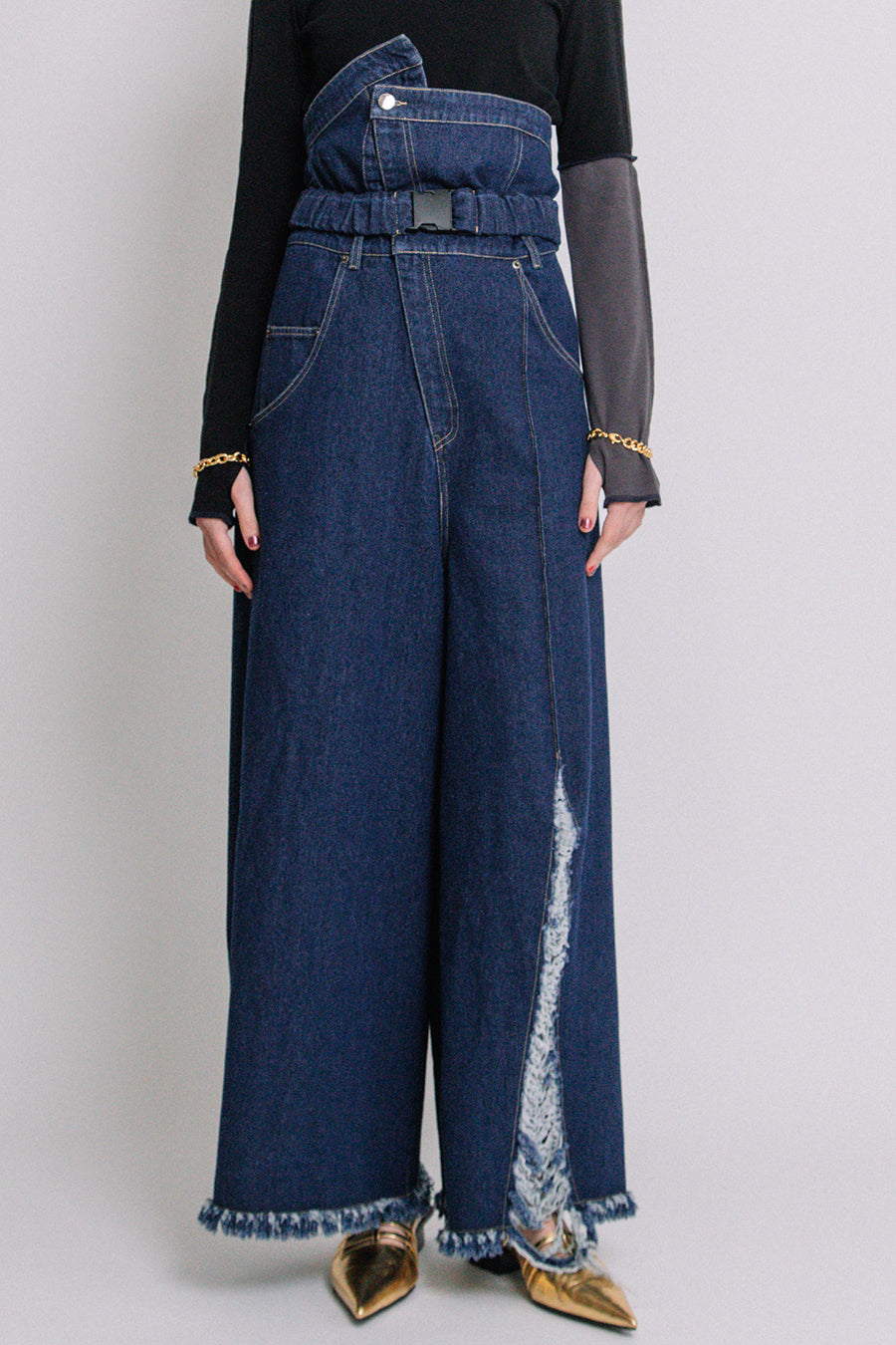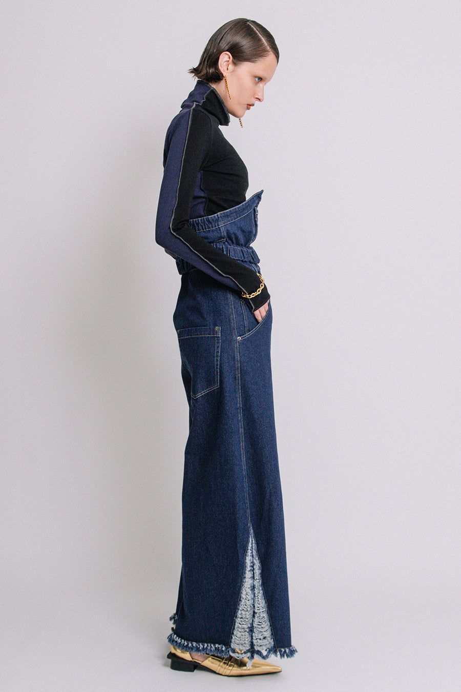 ベアトップ部分を折り返し、抜け感を出して着用しても◎厚過ぎず、重くならない9オンスデニムを使用し、バイオ洗い加工により、インディゴデニムらしいカラー、肌に馴染むソフトな仕上がりに。