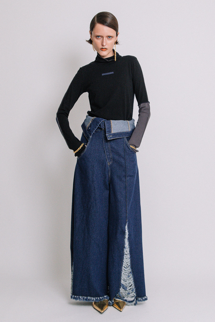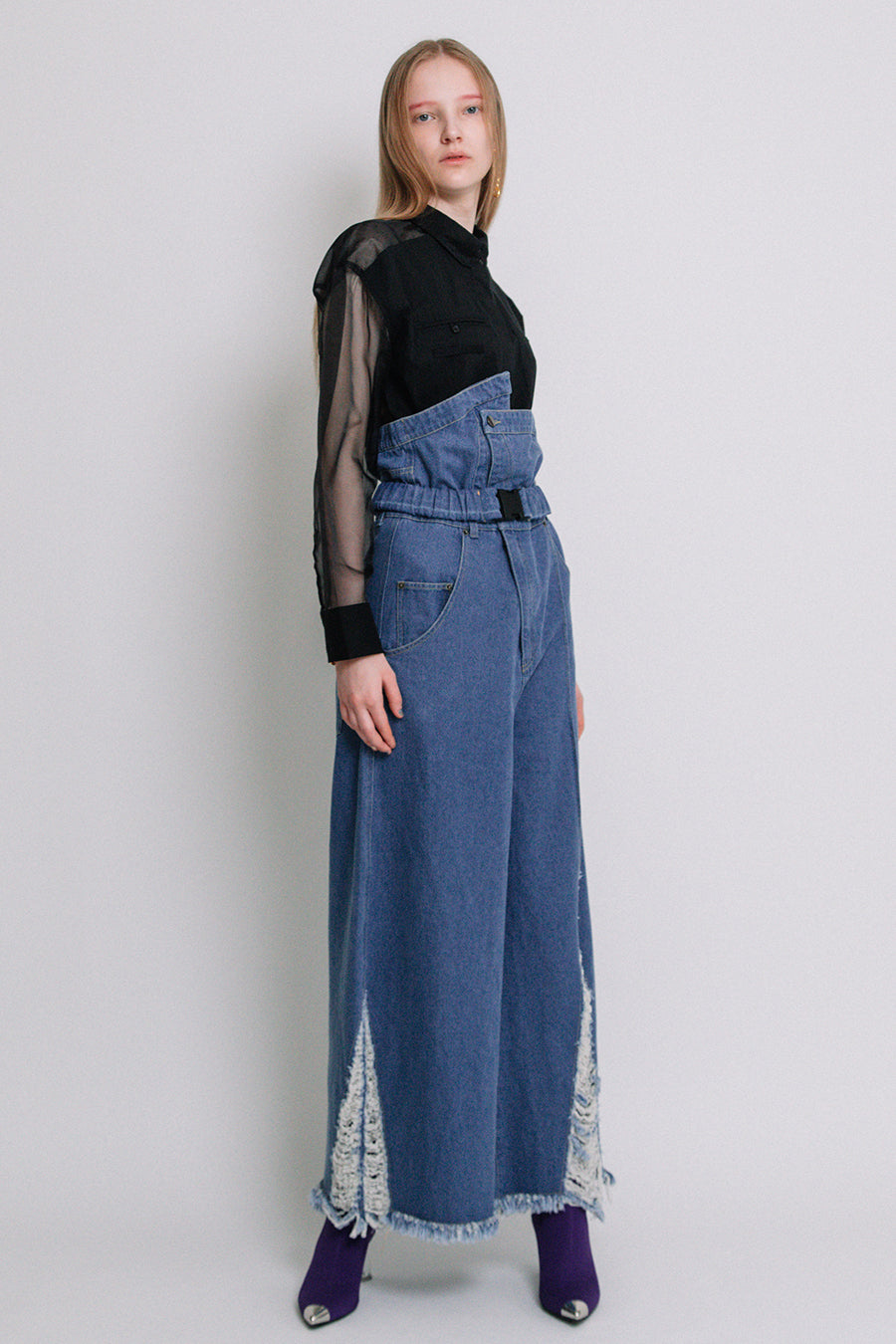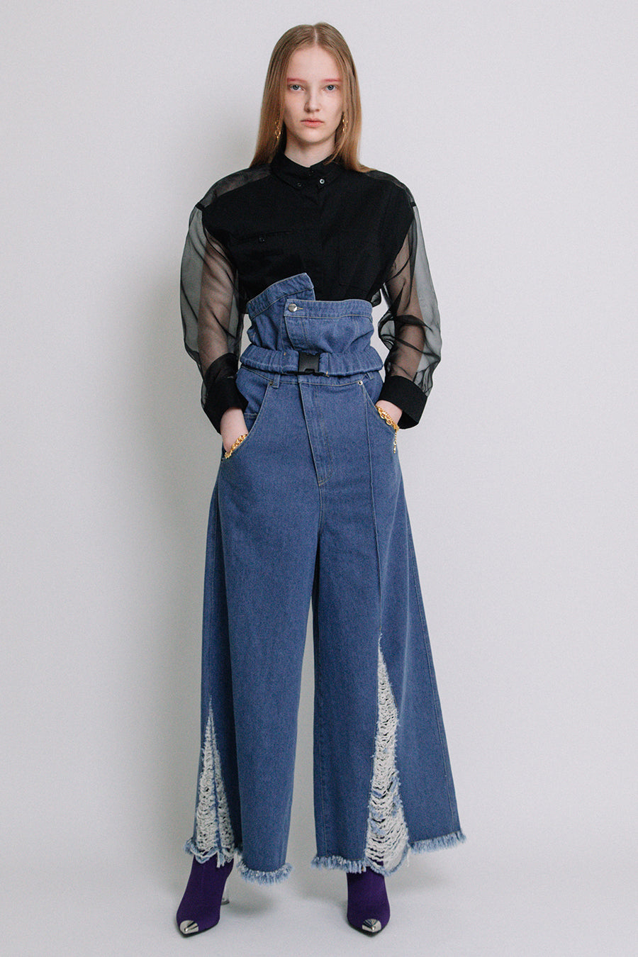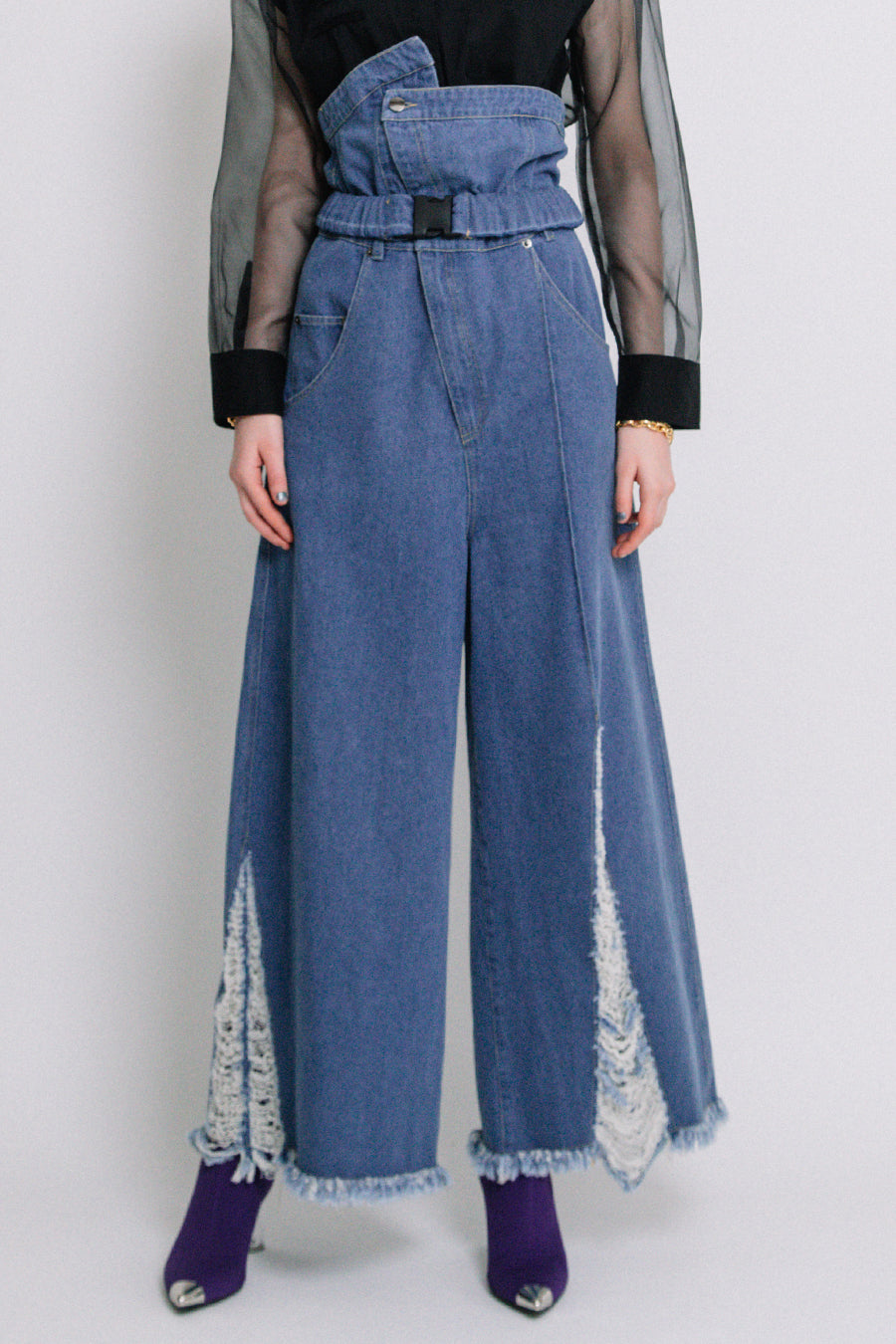 ベアトップ部分を折り返し、抜け感を出して着用しても◎厚過ぎず、重くならない9オンスデニムを使用し、バイオ洗い加工により、インディゴデニムらしいカラー、肌に馴染むソフトな仕上がりに。