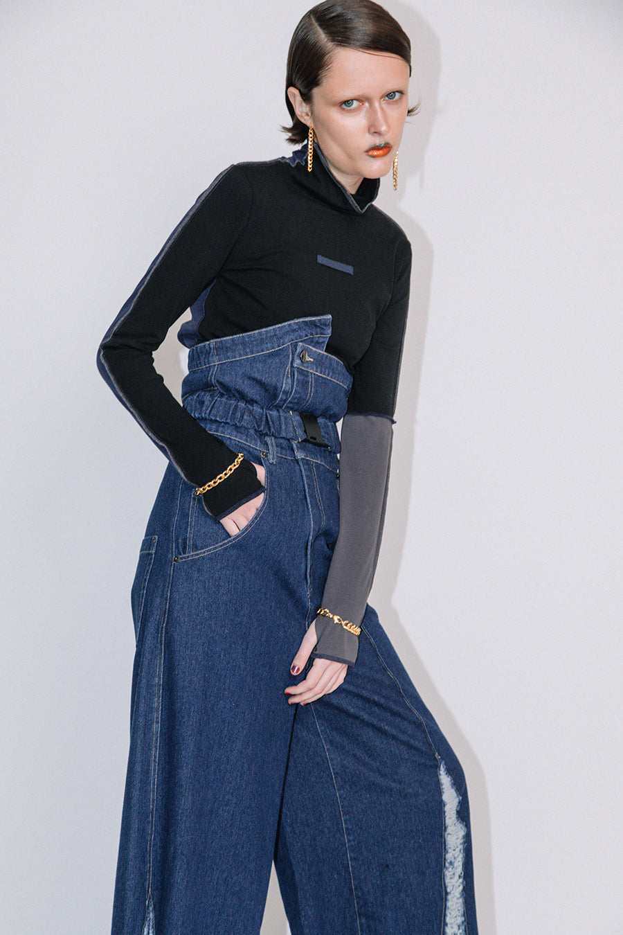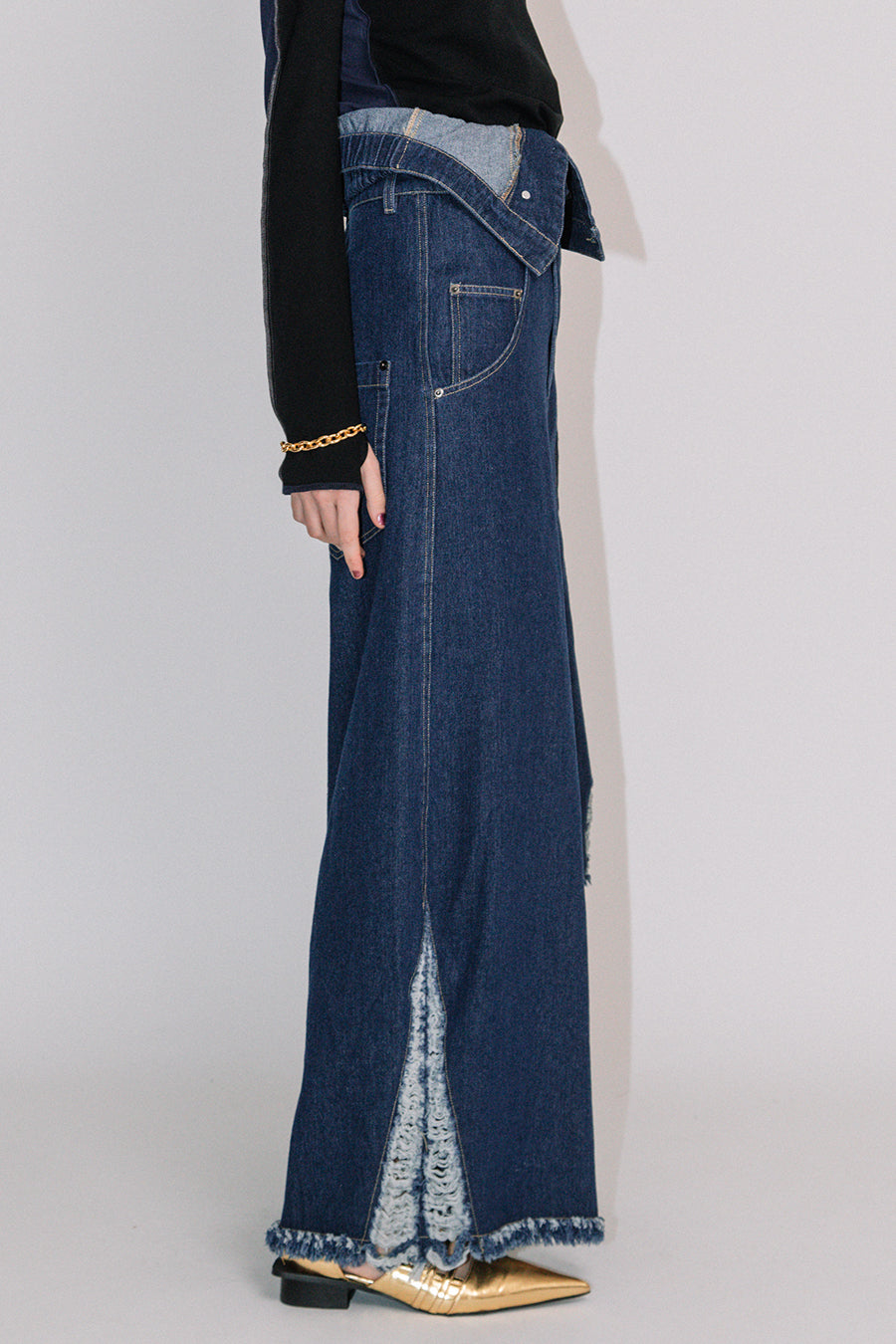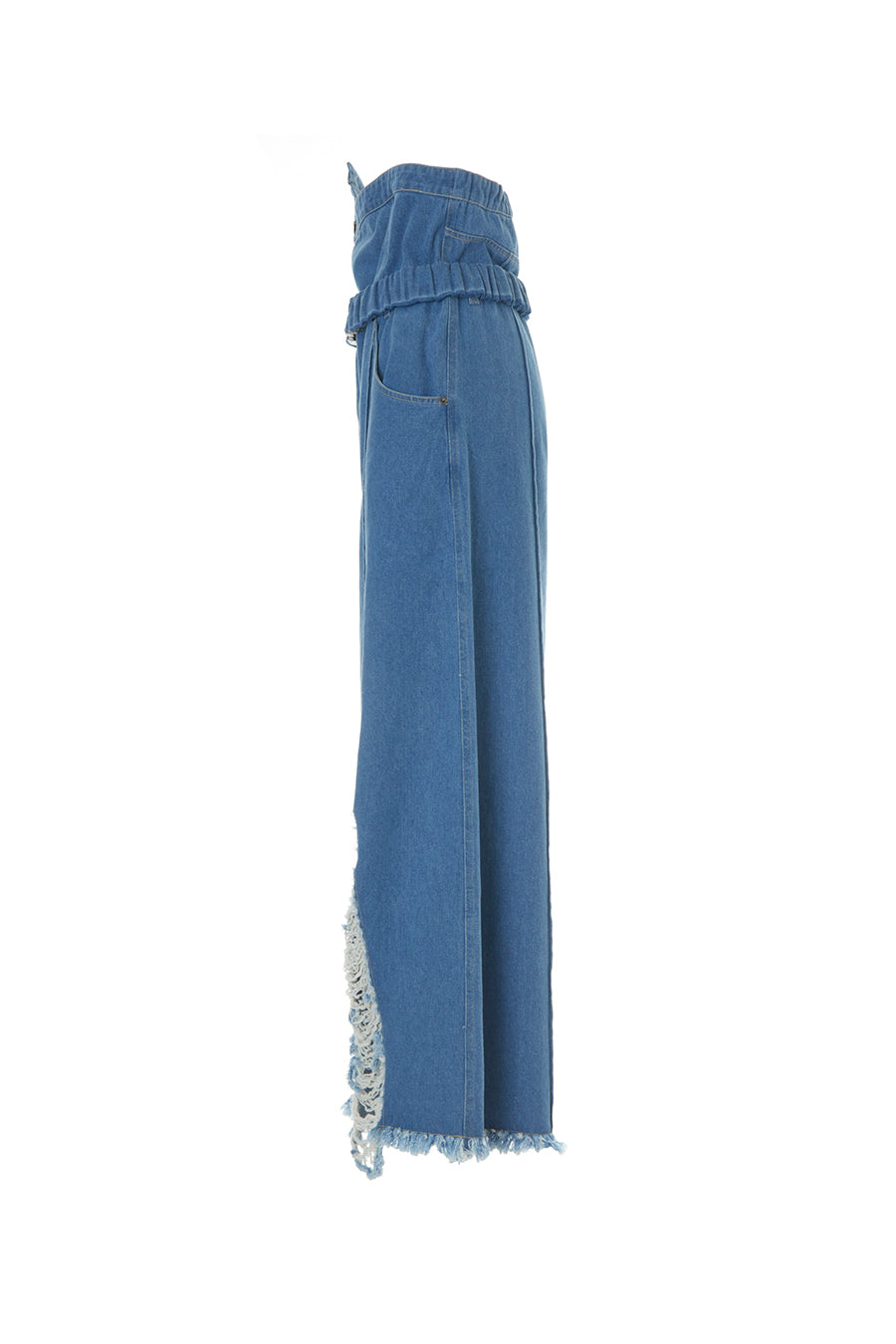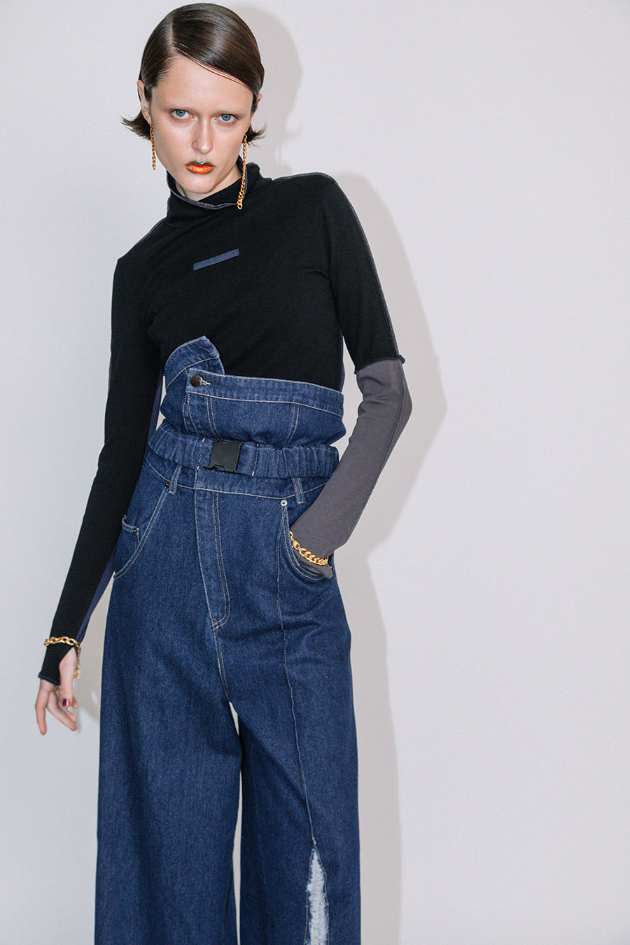 ベアトップ部分を折り返し、抜け感を出して着用しても◎厚過ぎず、重くならない9オンスデニムを使用し、バイオ洗い加工により、インディゴデニムらしいカラー、肌に馴染むソフトな仕上がりに。