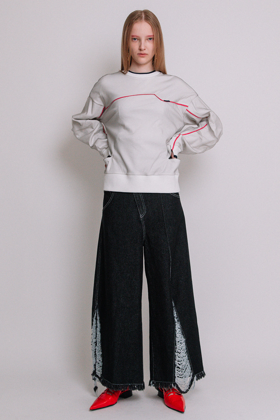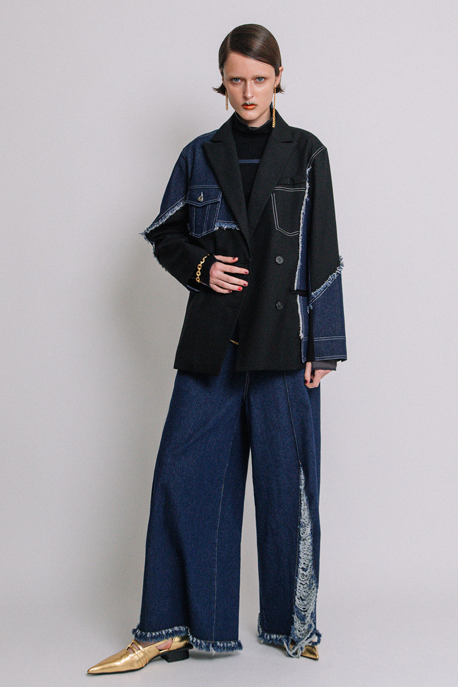 アシンメトリーな切り替えデザインがAULA AILAらしい、他にはないデザイン。