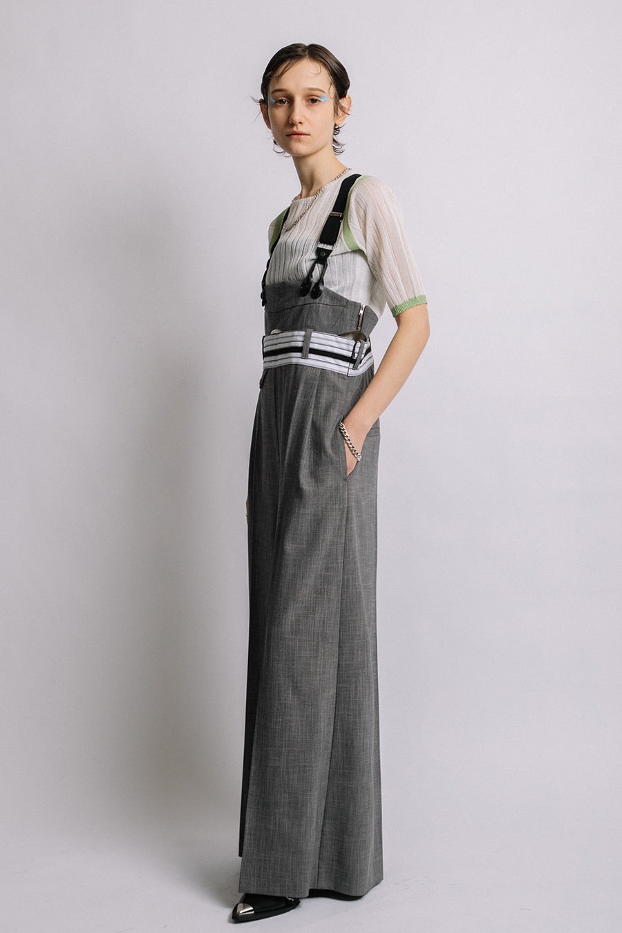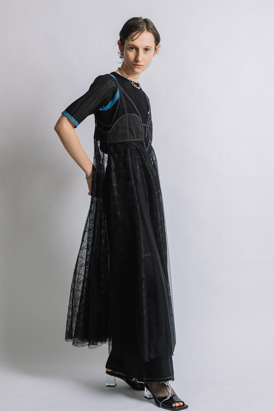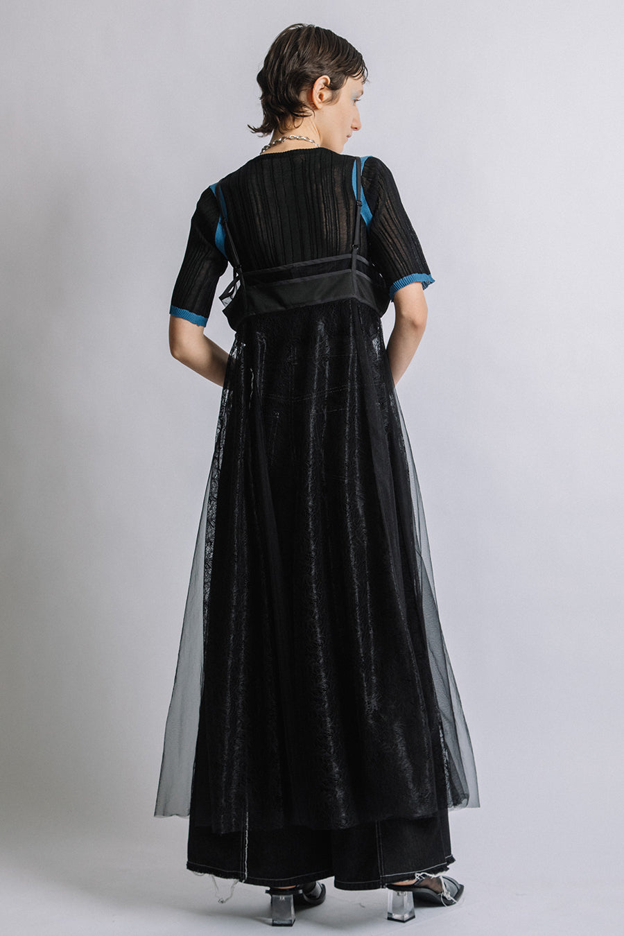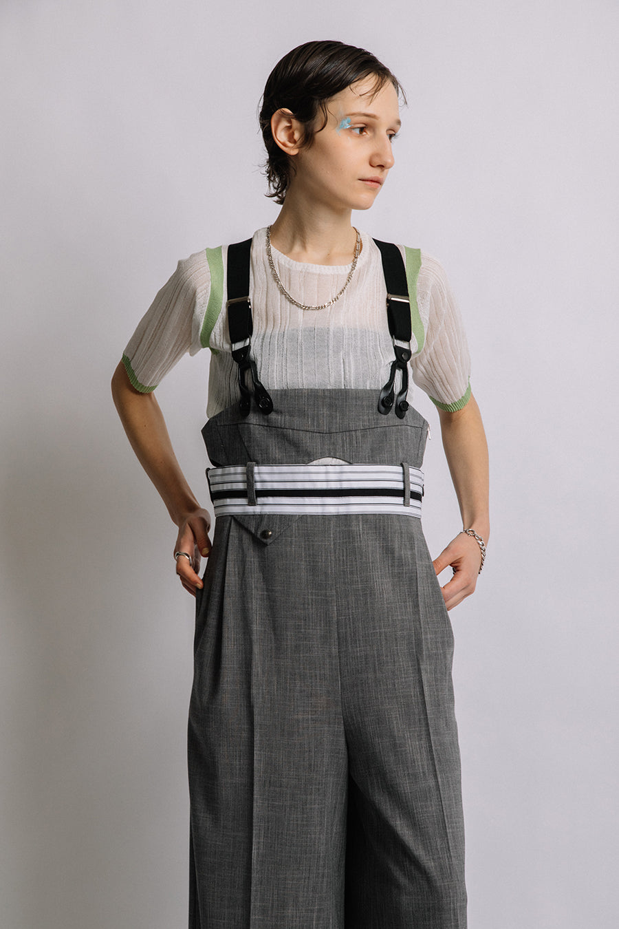 ドライタッチなコットンポリエステルの細番手糸を甘くランダムなリブ編みにし、シアー感が涼し気で、シンプルで合わせやすいので、夏のレイヤードスタイルにお勧めのアイテム。