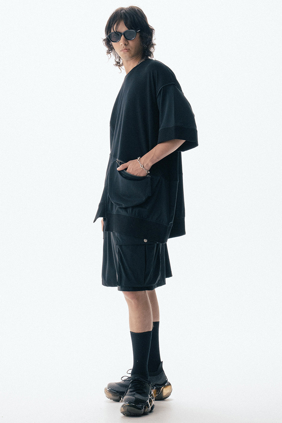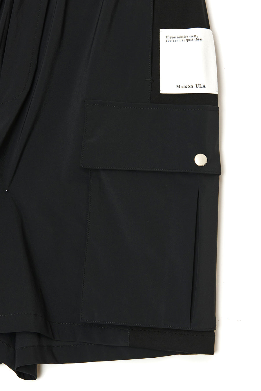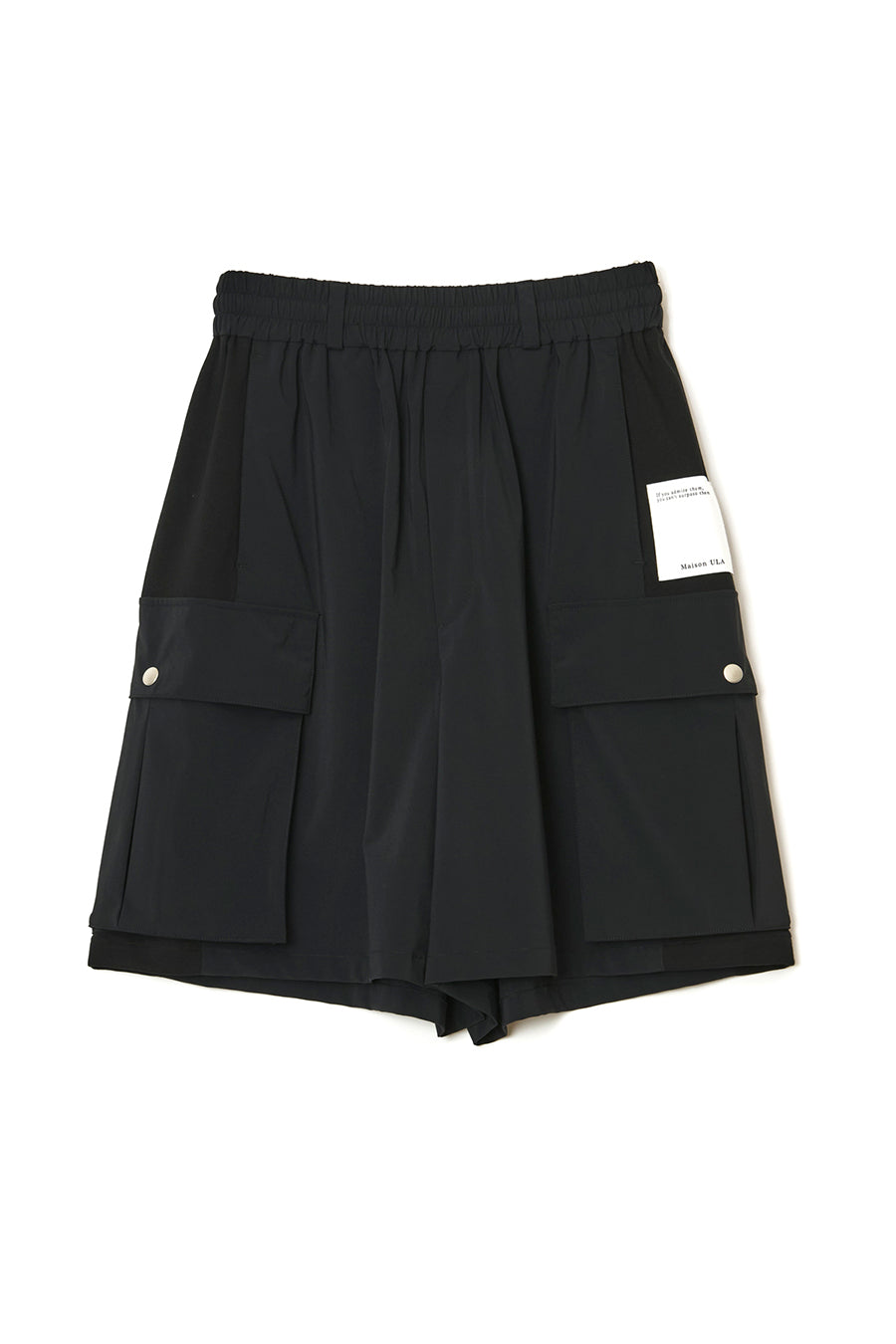 シンプルながらも洗練された印象を与える、都会のストリートに馴染むハーフパンツ。ストレッチ性に優れたナイロン素材とカットソーの絶妙な切り替えが特徴。どんなコーディネートにも合わせやすくデイリーユースに最適。2サイズ展開で、フィット感も調整可能。