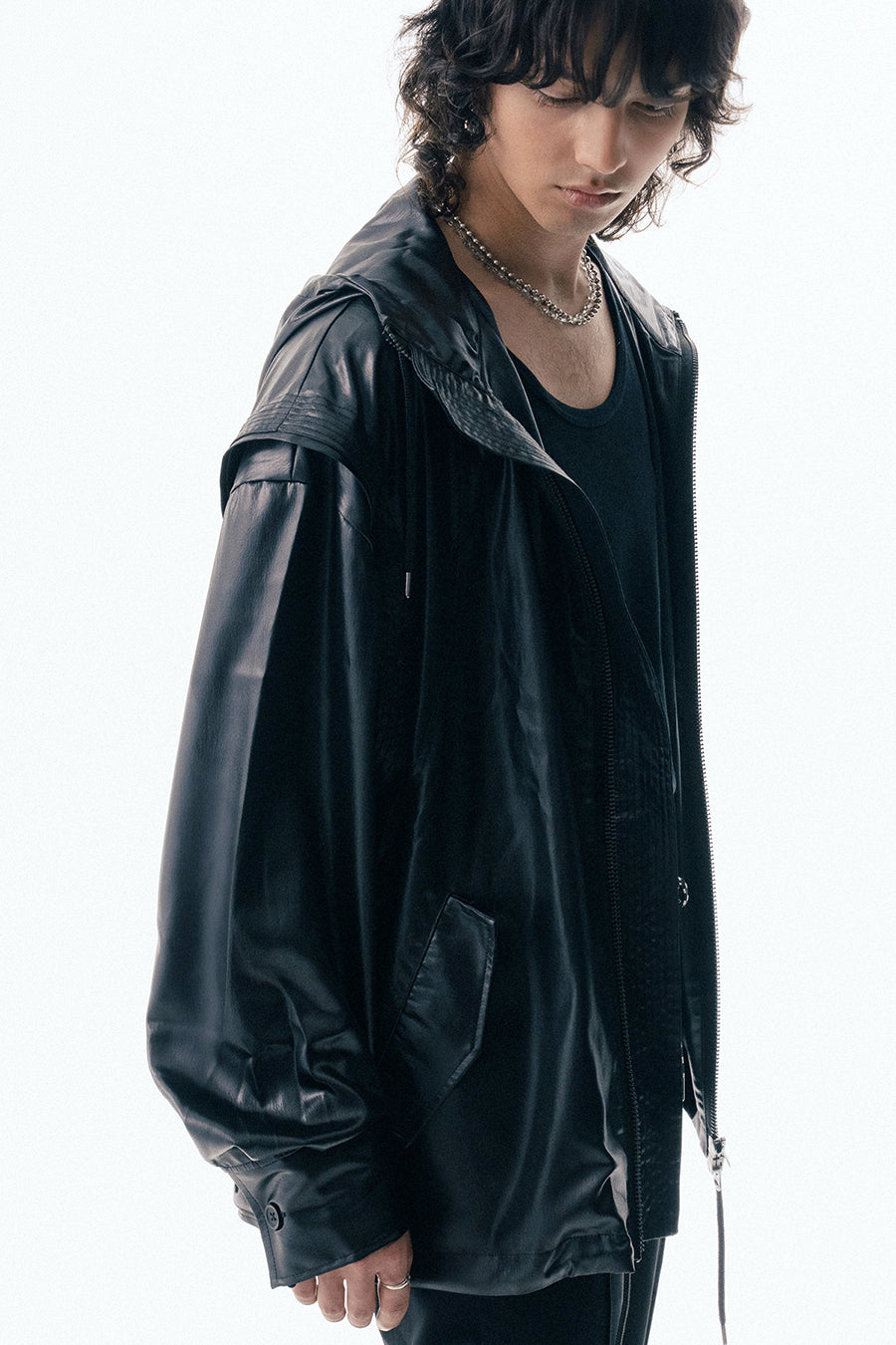 製品の詳細を表示する 【Maison ULA】LEATHER LIKE SATIN BLOUSON