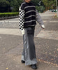 ハウンドトゥースチェックの上に、あえてデニムを叩きつけたようなユニークデザイン。