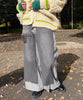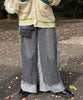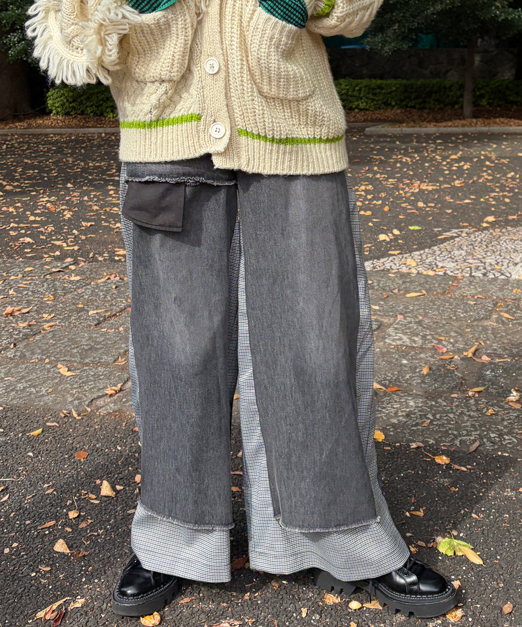 デニムを重ねたような、遊び心あるレイヤード風パンツ。