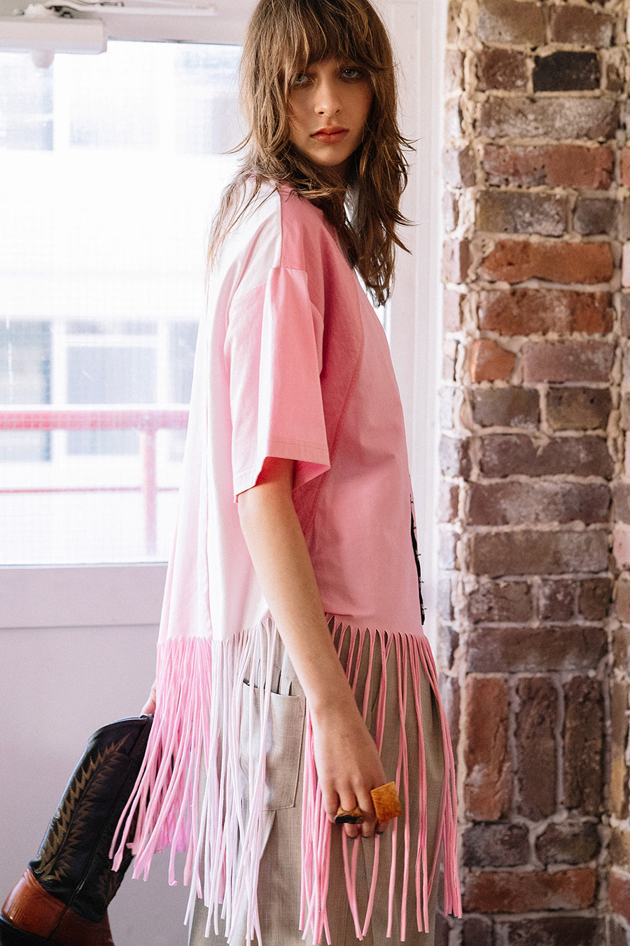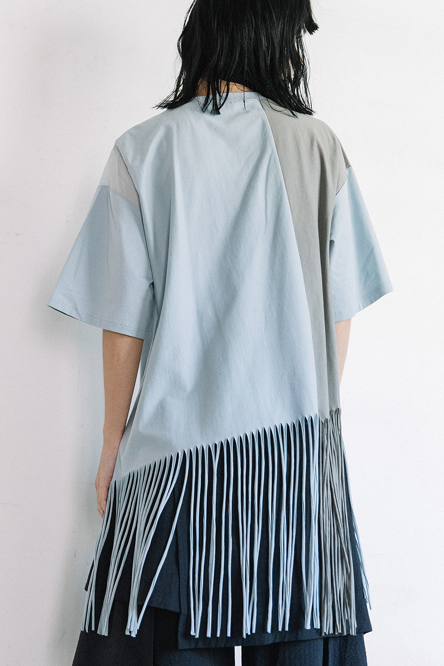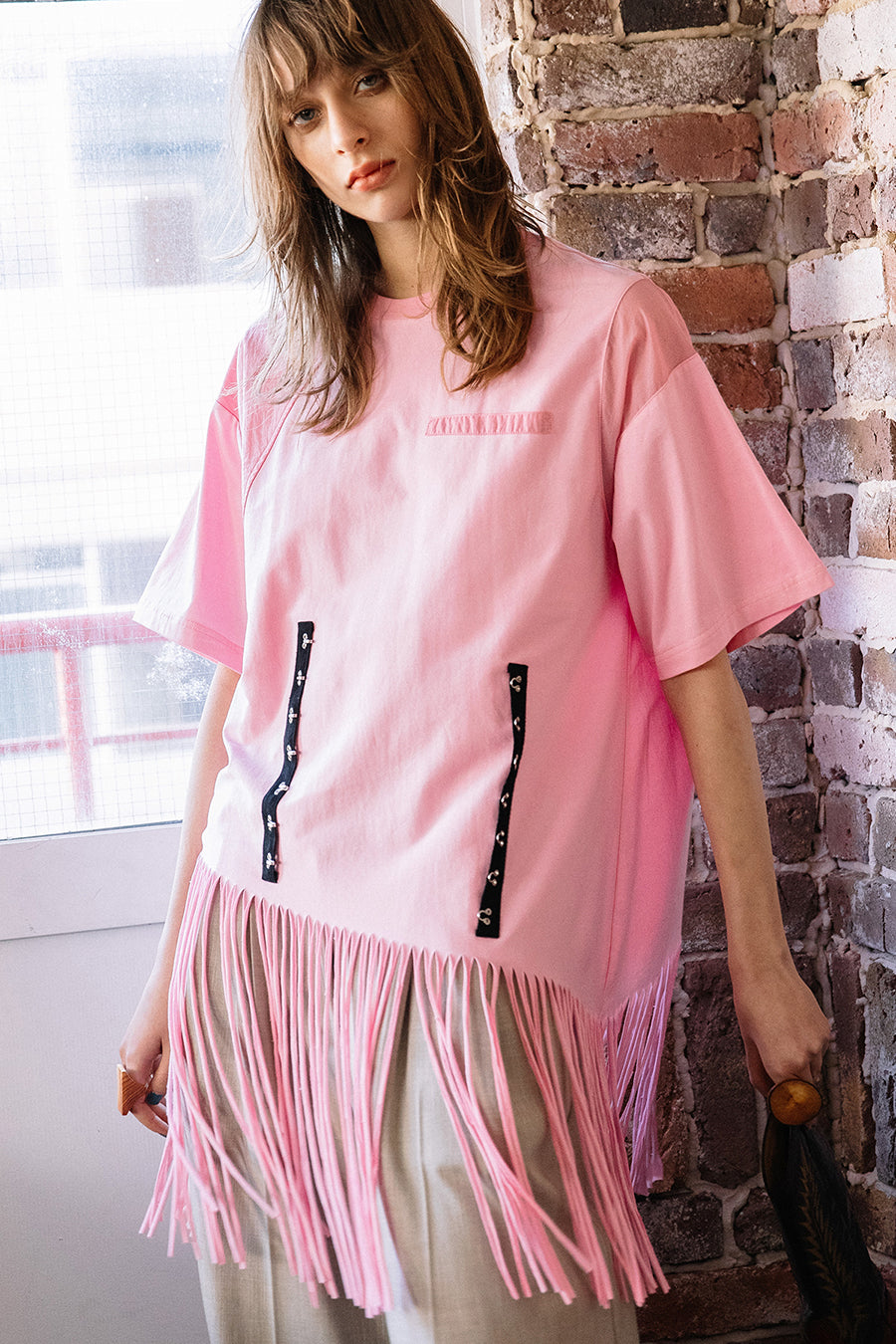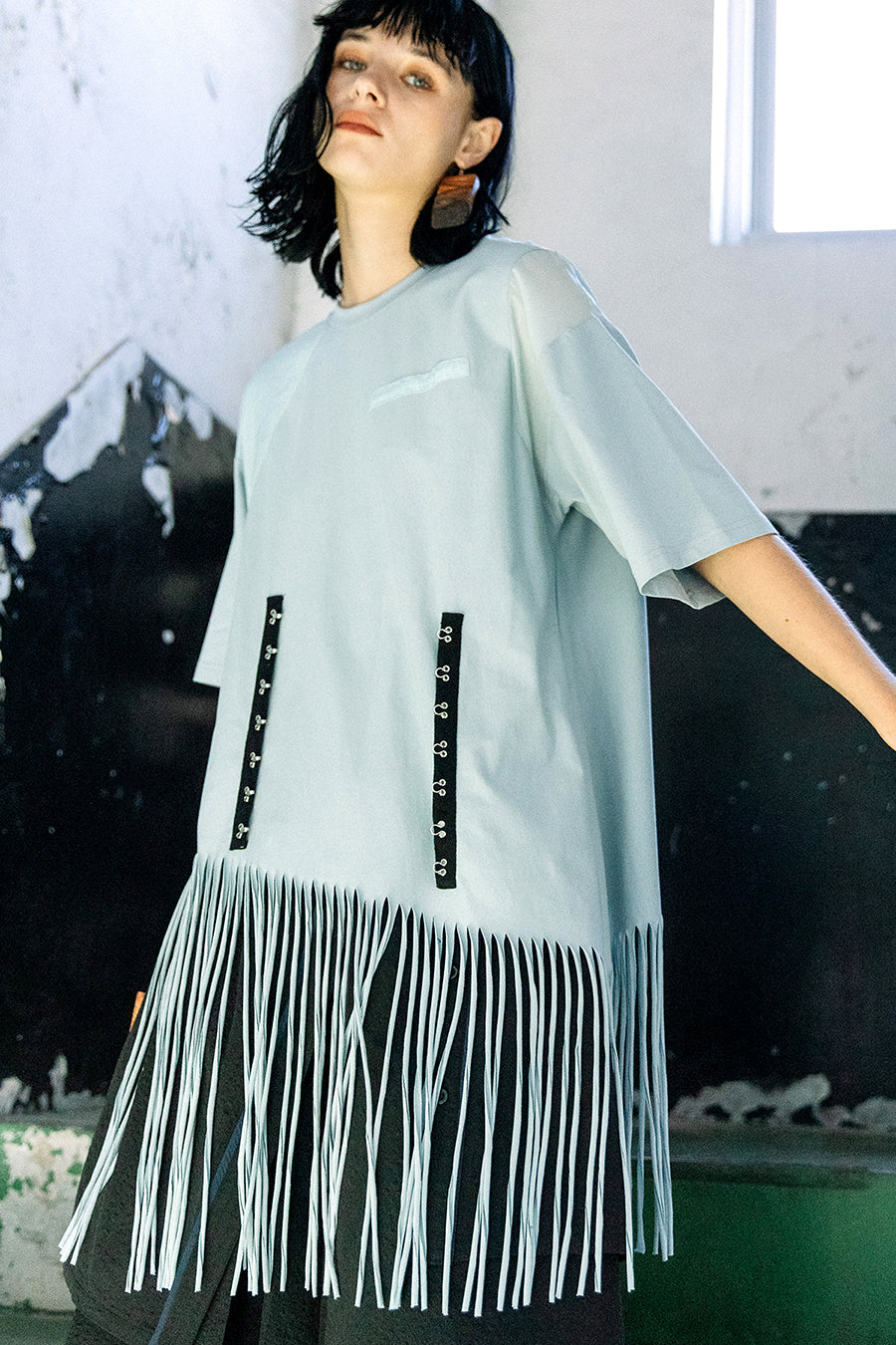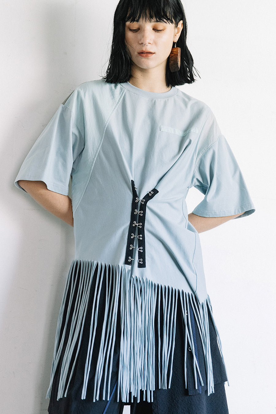 優しい肌触りのコットンベア天で仕立てたルーズフリンジTシャツ。