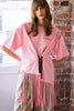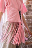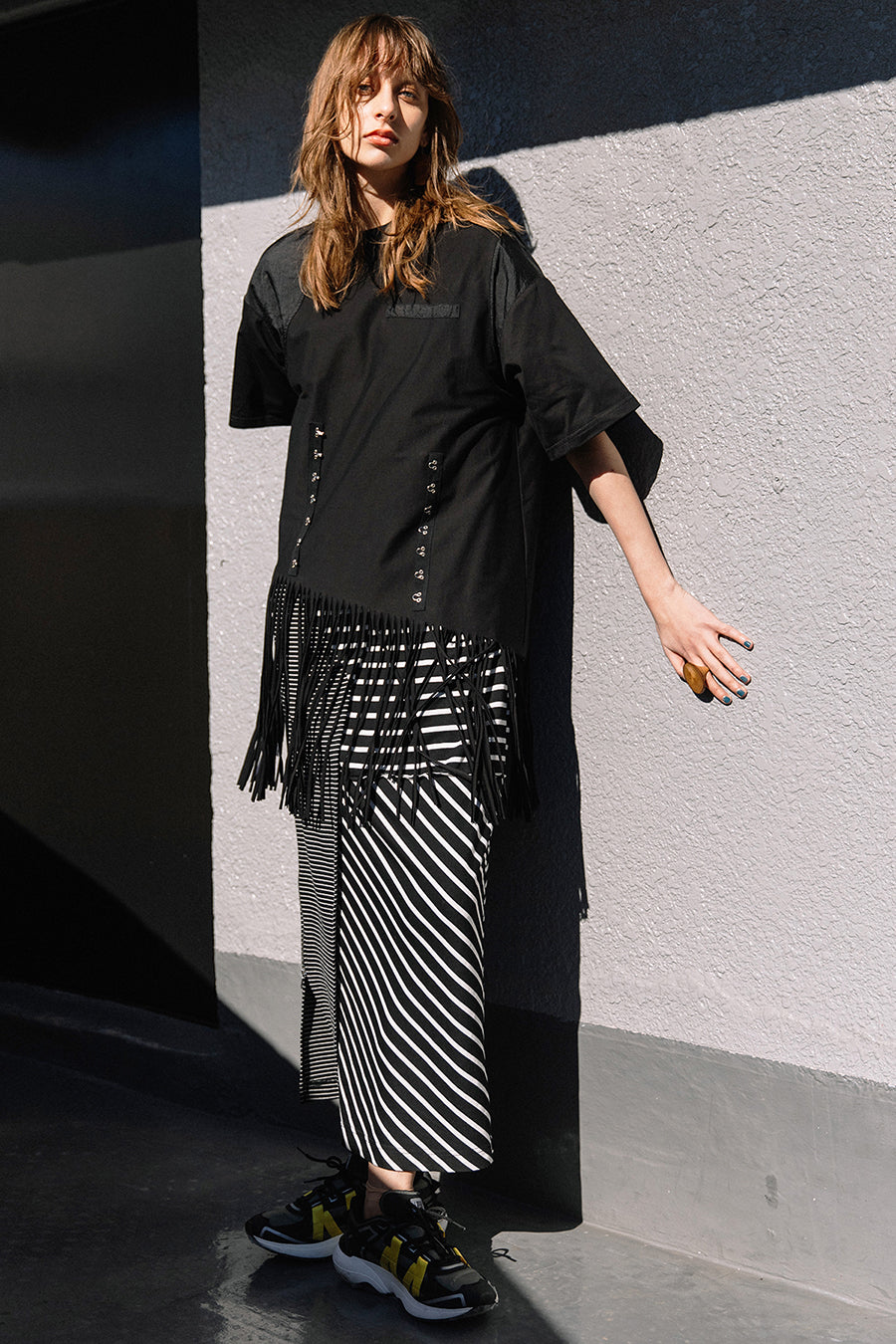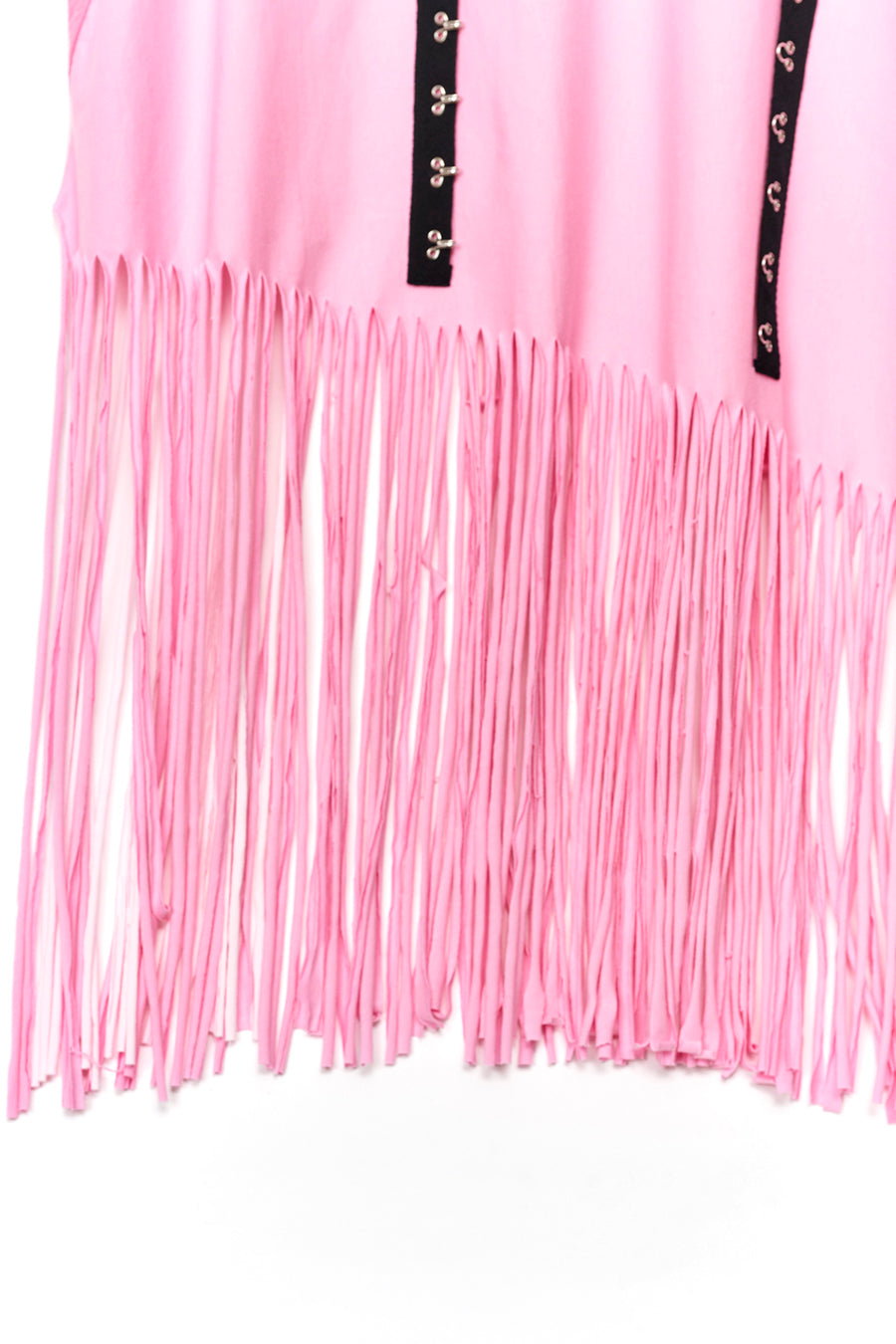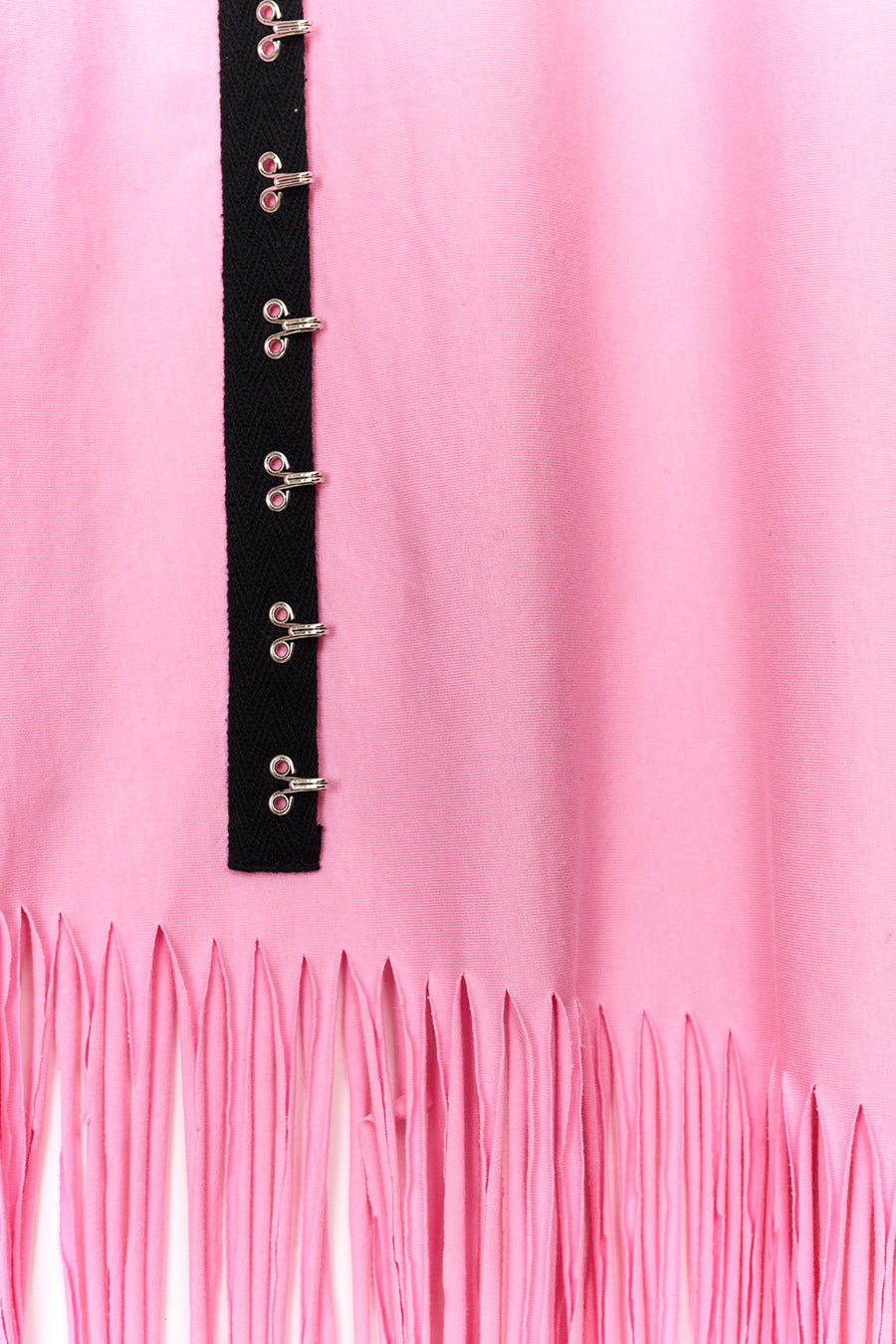 身頃の裾に切り込みを入れて作ったくるっと丸まるフリンジが目を引き、