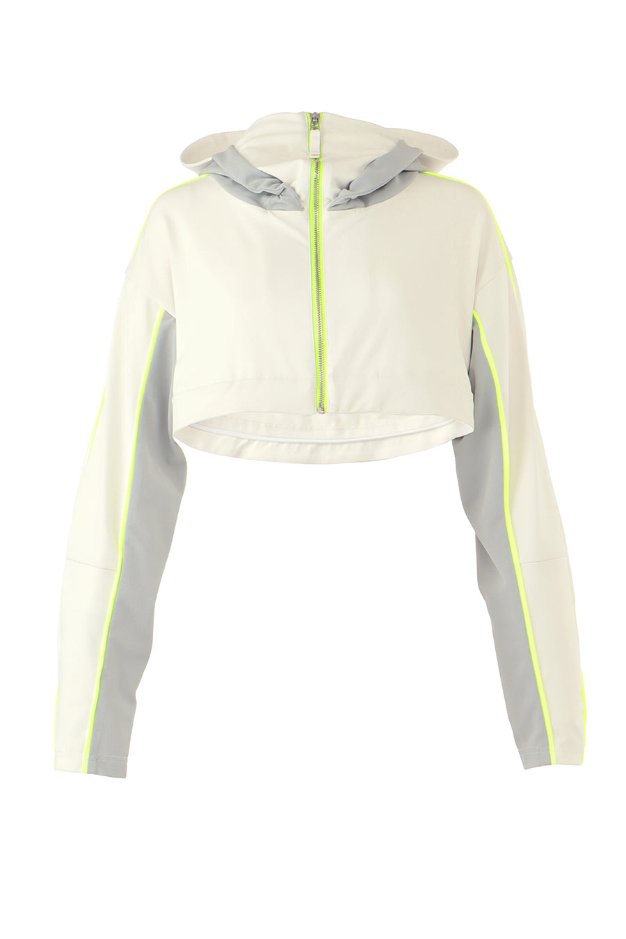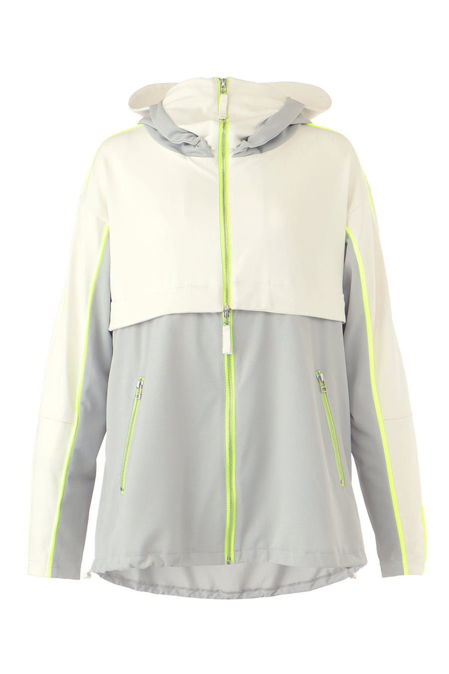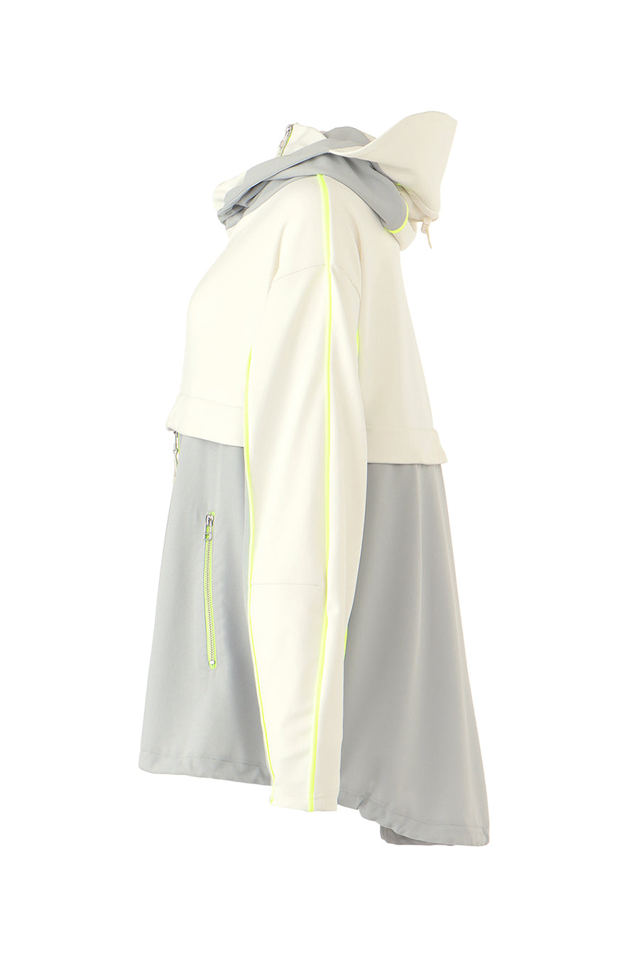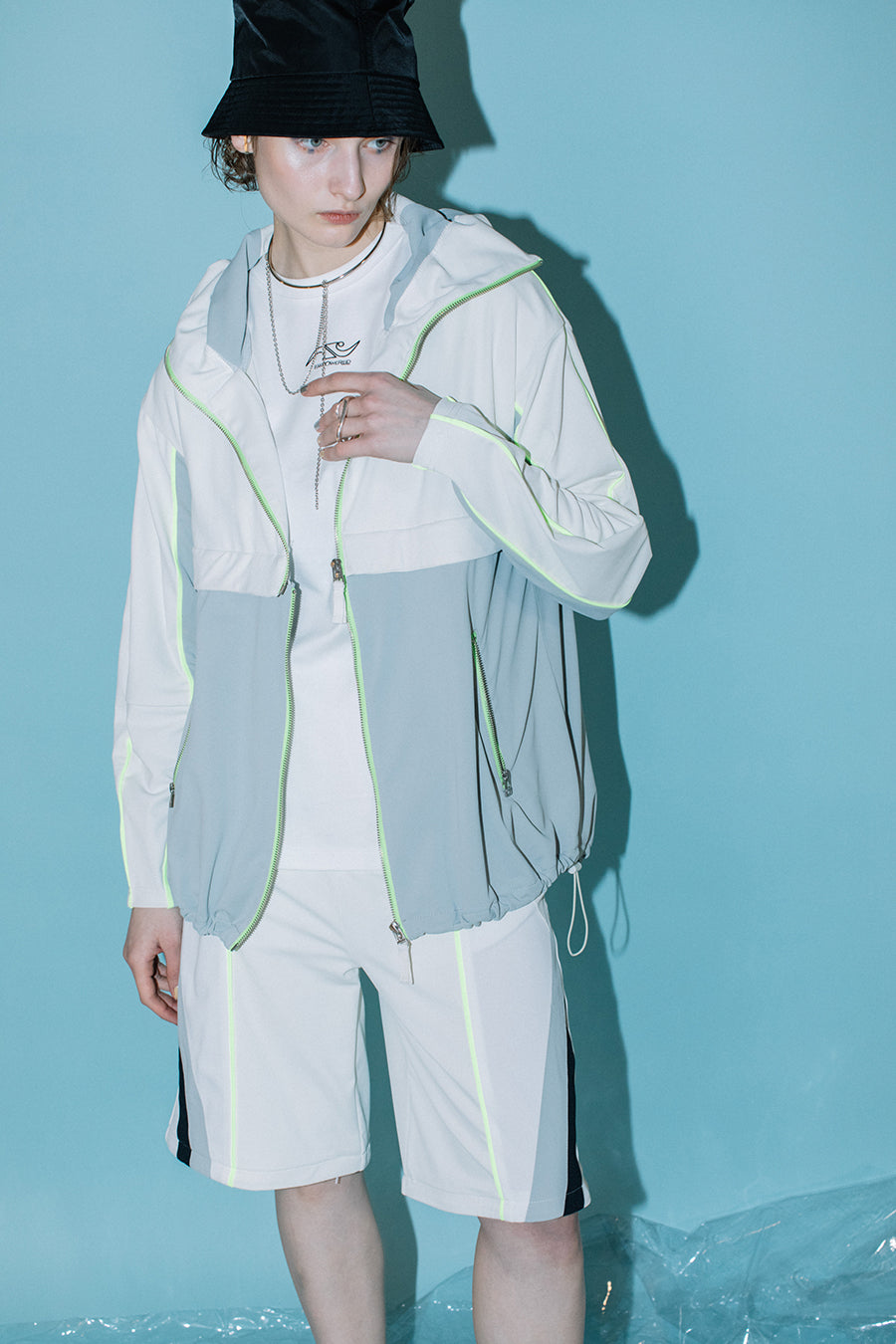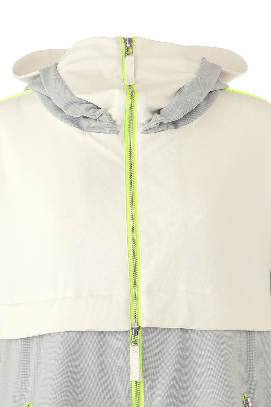 ジップを外すとボレロのようなショート丈になり、アクティブなトレンドスタイルに。ポケット口は、中に入れたものが、飛び出ないようにジップ開きになっているのも嬉しいポイント。レジャーシーンにお勧めのお洒落アイテム。