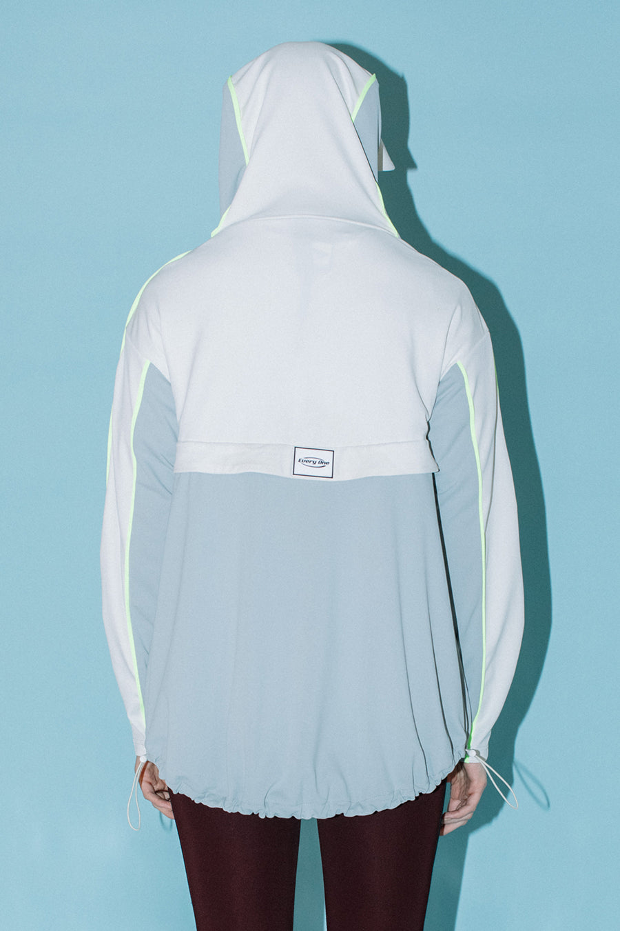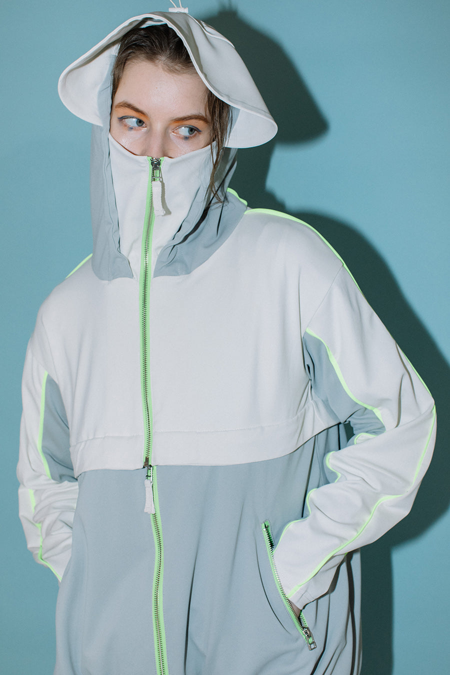 ■フード続きにツバが付いており、ジップ前立ては目の下までハイネックになるので、強い日差しから、紫外線を防御したい方にお勧めのジップアップフーディー。長袖で、お尻が隠れる着丈で、裾はドロストになるので、海風や夜の山での寒さもしのぎやすい、便利なアイテム。