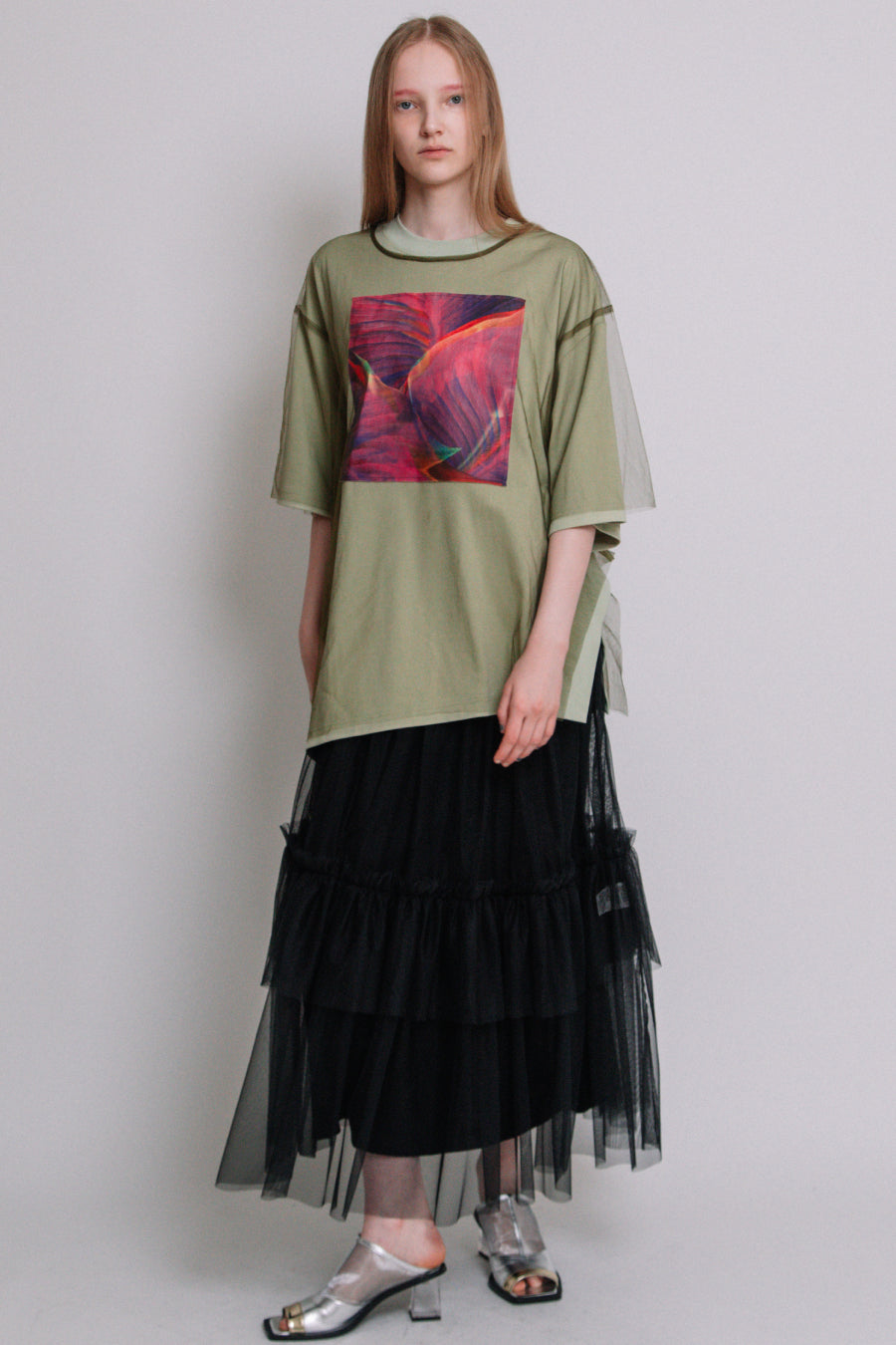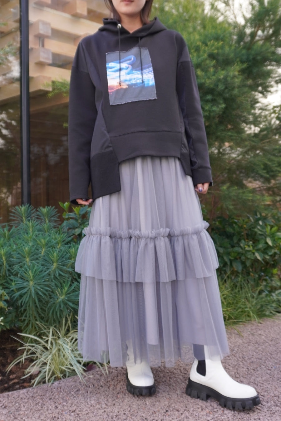 インナースカートと合わせてのご着用はもちろん、パンツやワンピースと合わせたレイヤードもスタイリングのスパイスに◎