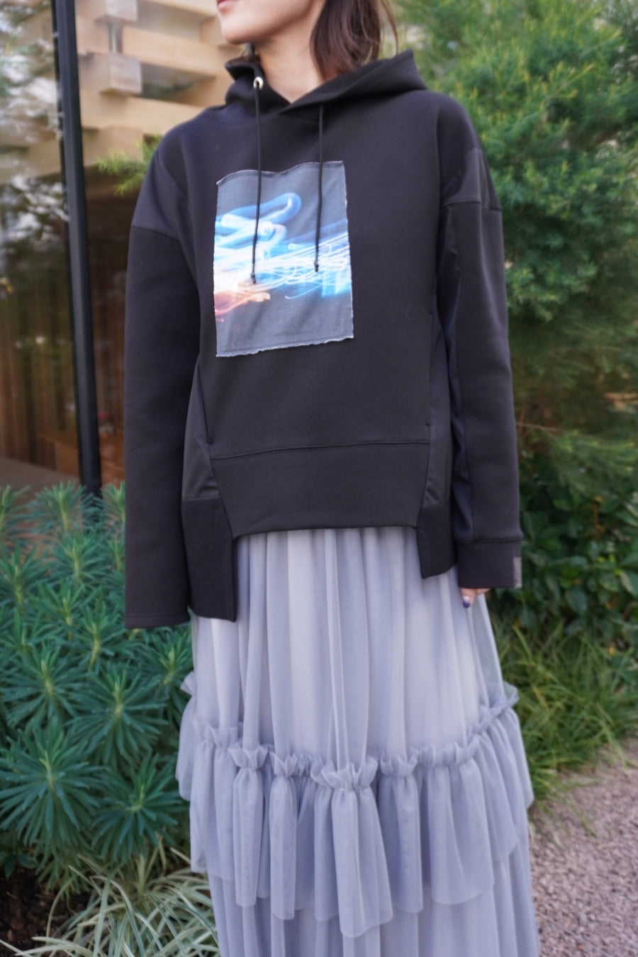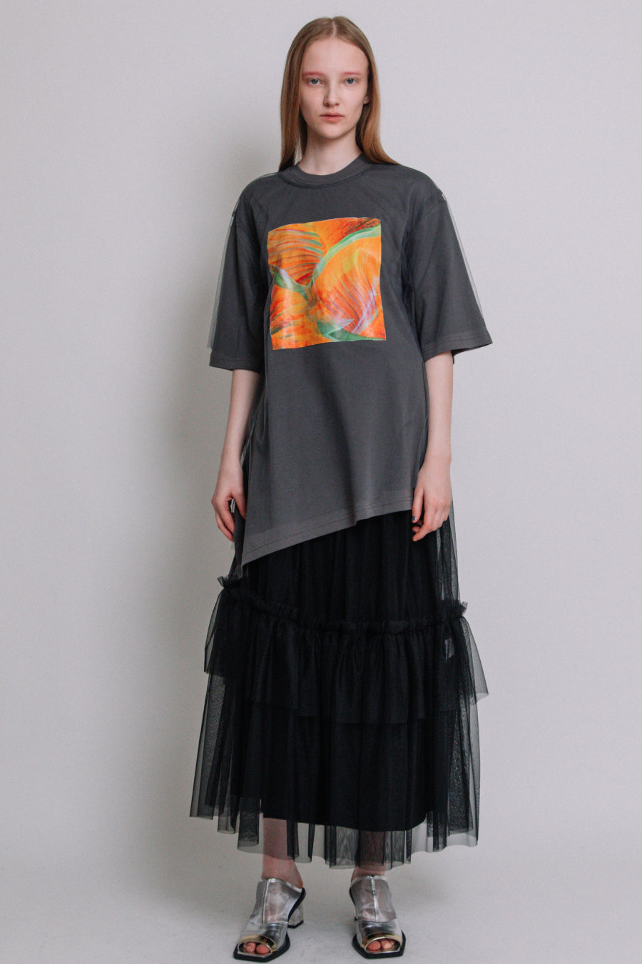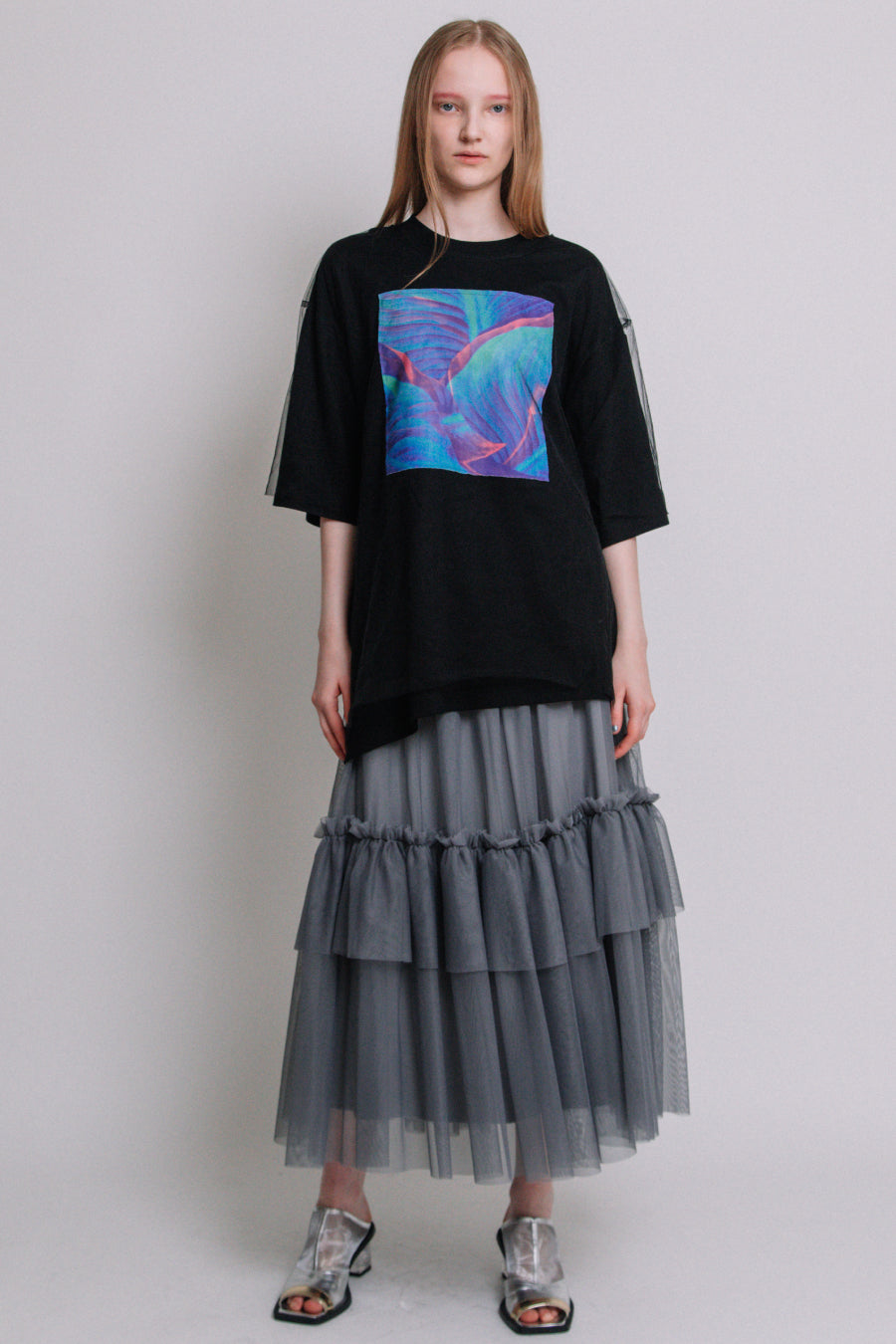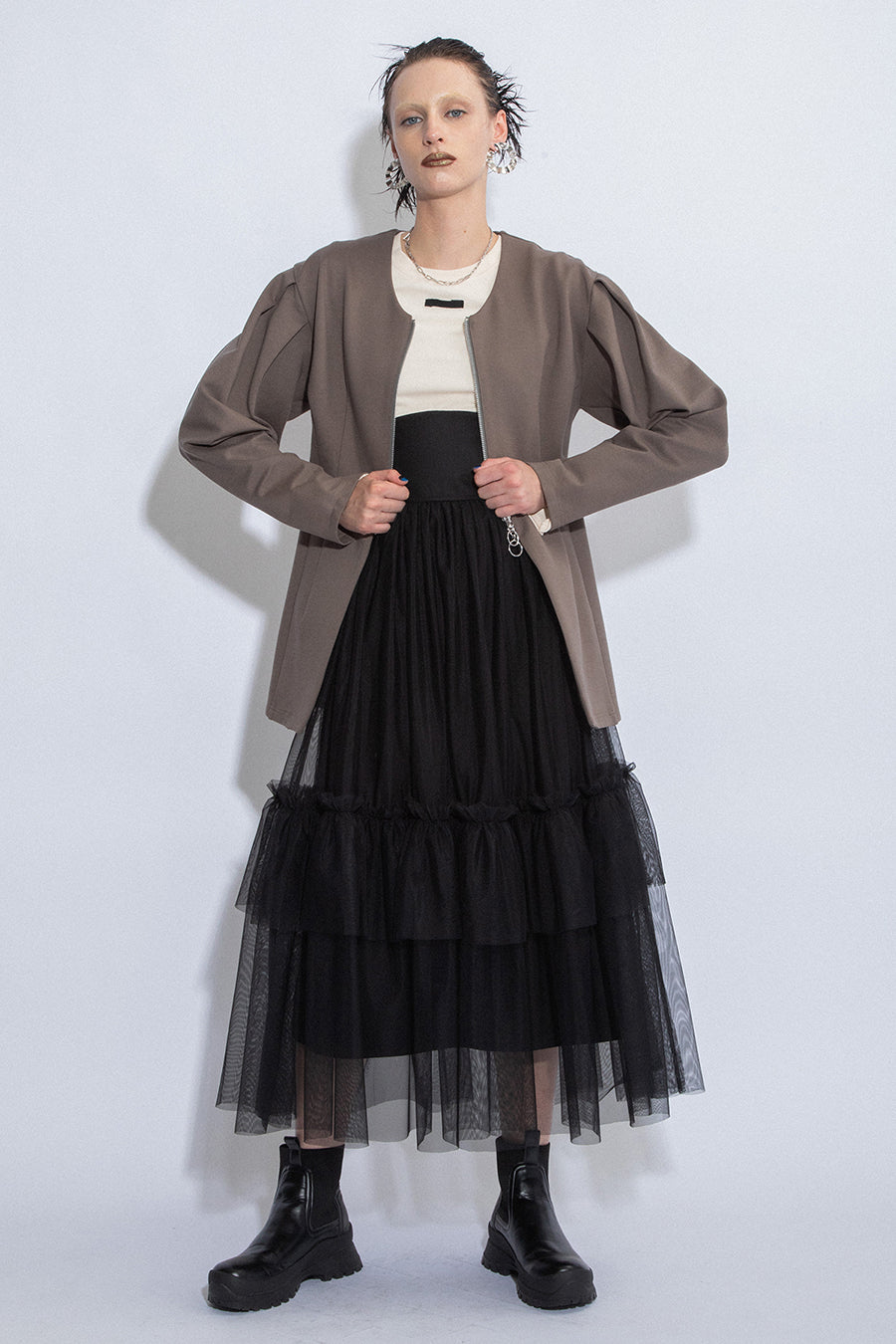 チュールをたっぷりと贅沢に使用していますが、ソフトチュールなのでボリュームが出すぎることなく、大人の華やかな雰囲気とレディライクな印象に。