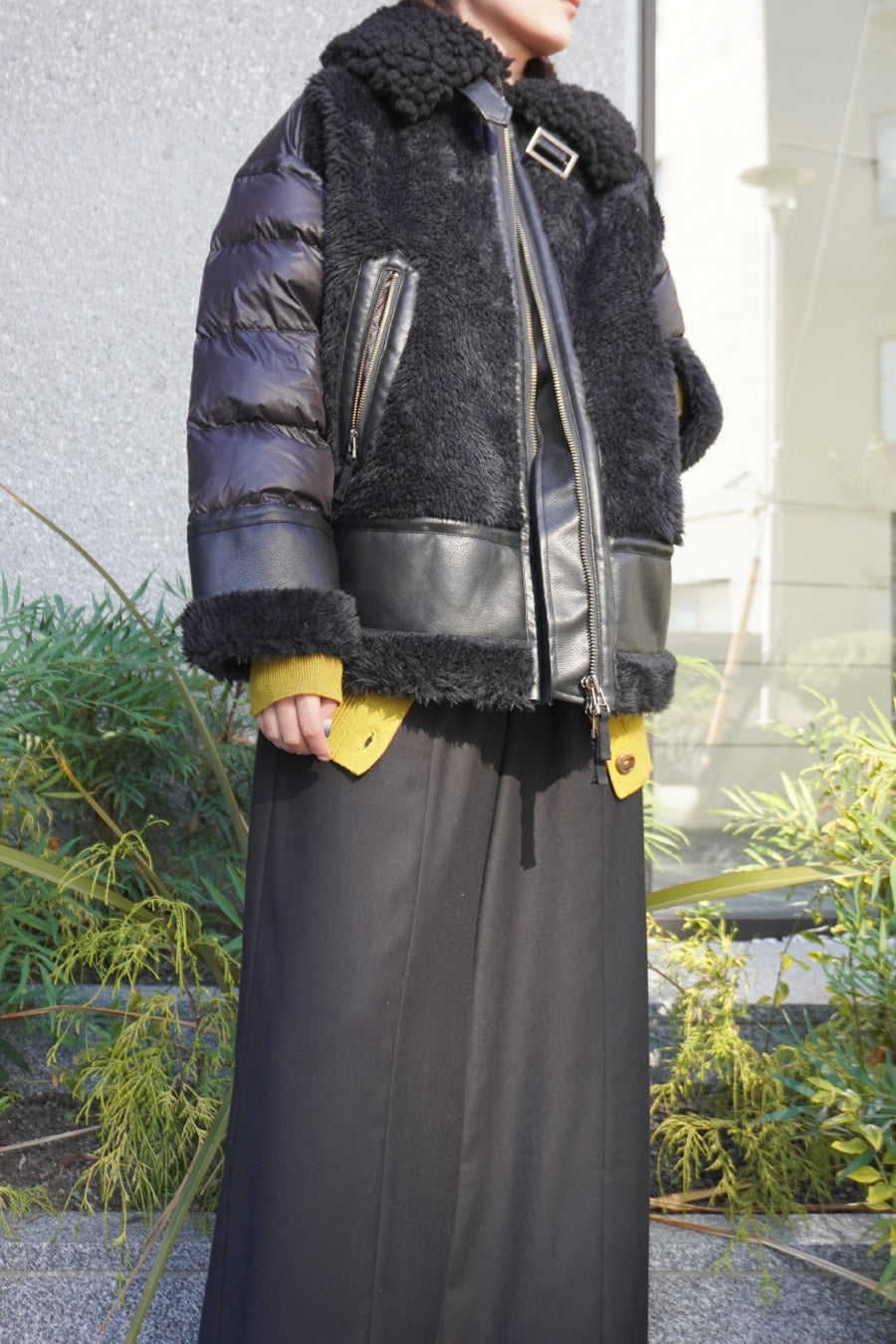4素材の異素材コンビネーションが存在感があり、とても暖かい防寒着アウターとしておすすめです。