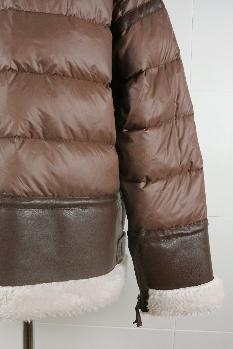 表レザーはハードな印象ですが、ダウン生地がコンビネーションされていることでハード過ぎない仕上がりになっています。
