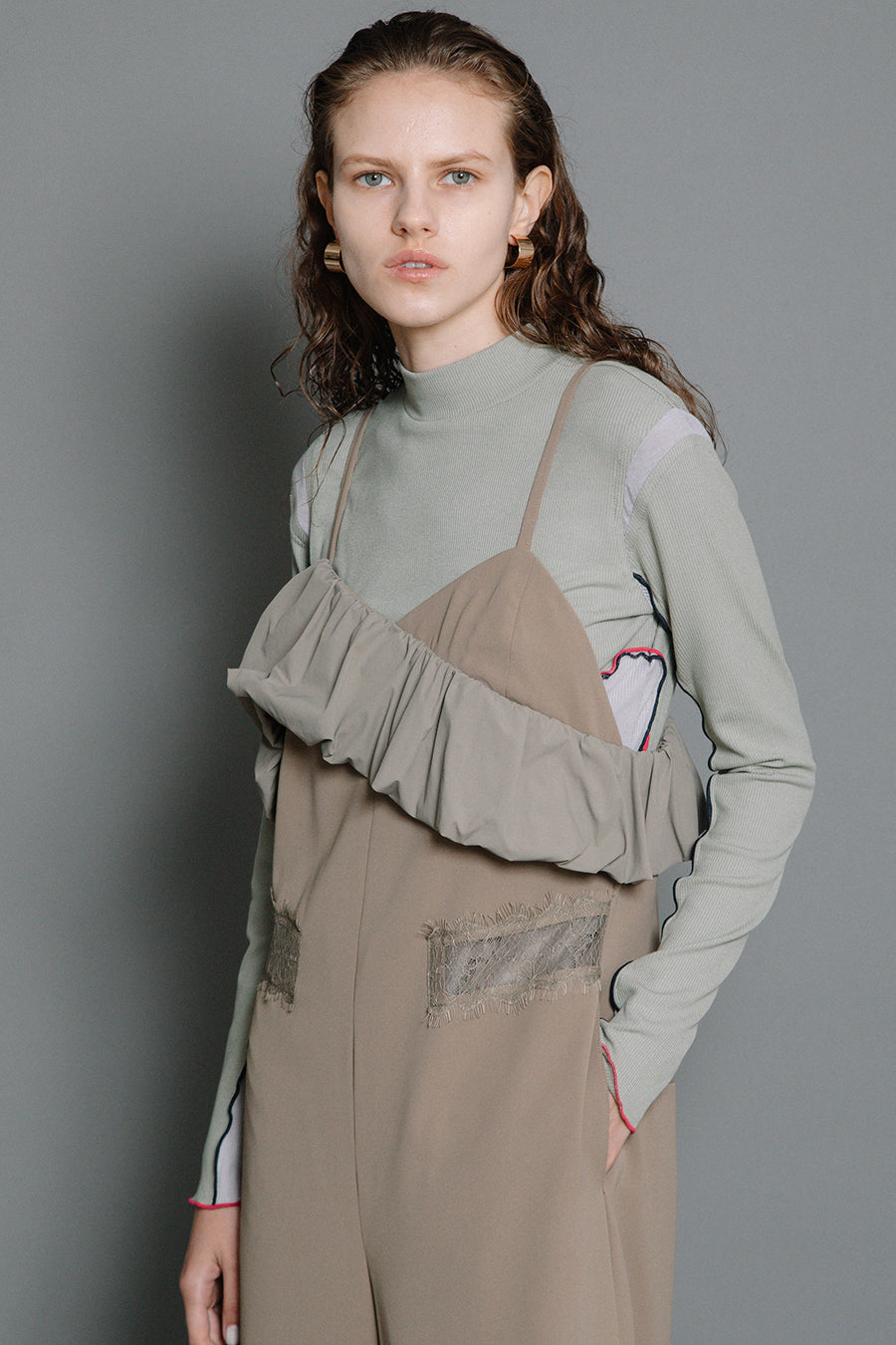 ASYMMETRY TAFFETA FRILL ALL IN ONE