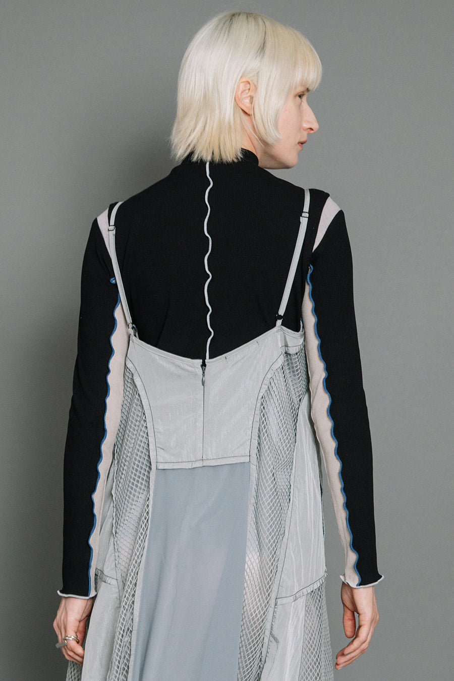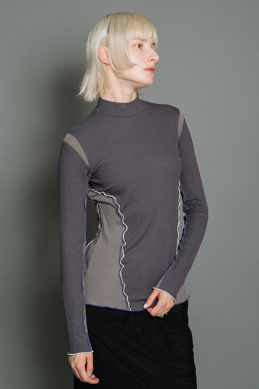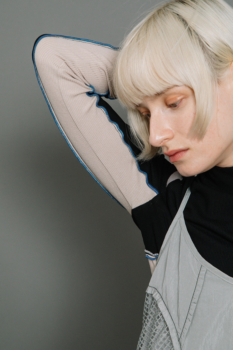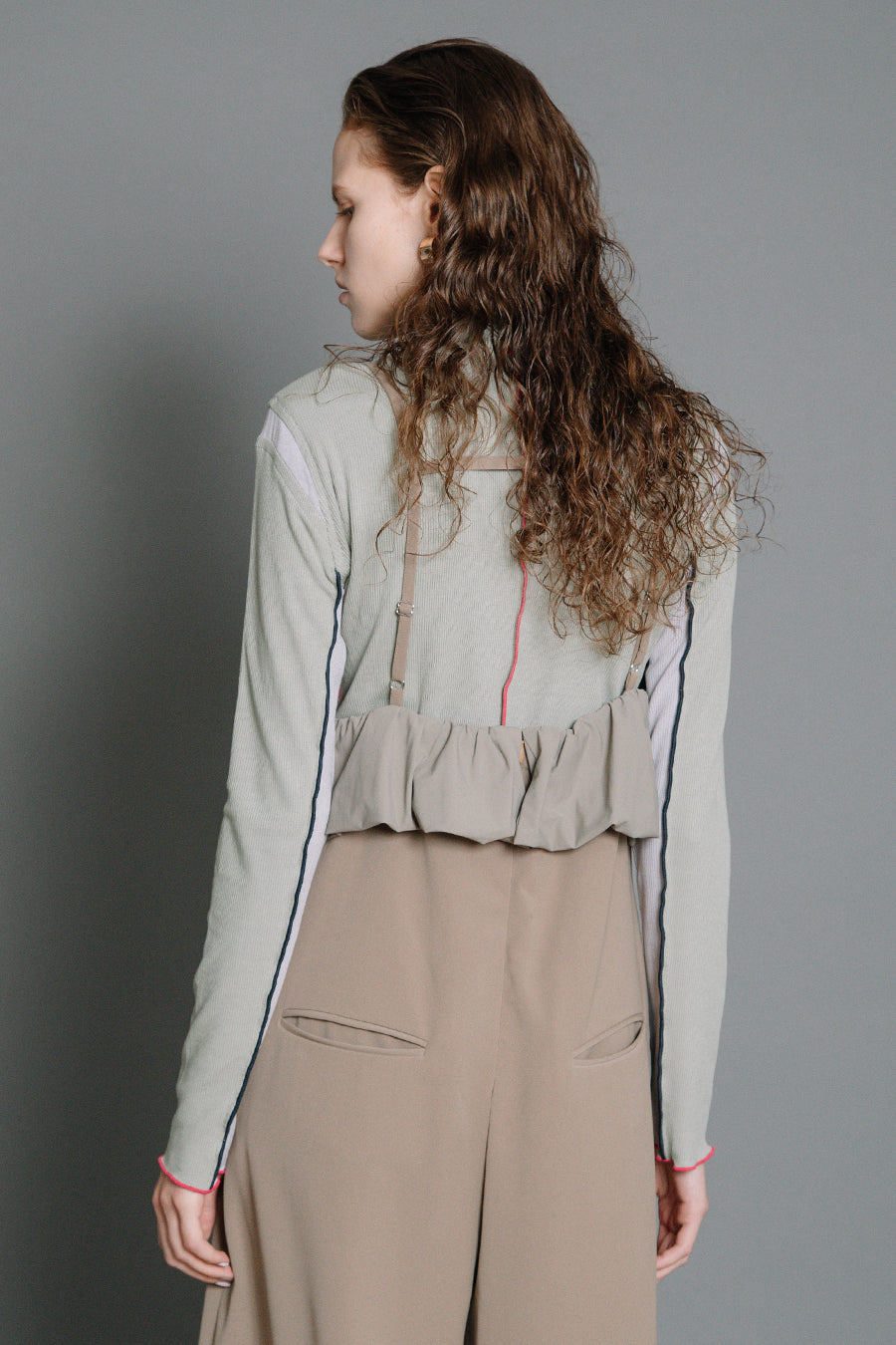 切り替えには2色のダブルメローを施し、AULA AILAらしい絶妙な配色バランスで、肩のスリットライクなデザインも華奢見えする拘りポイント。